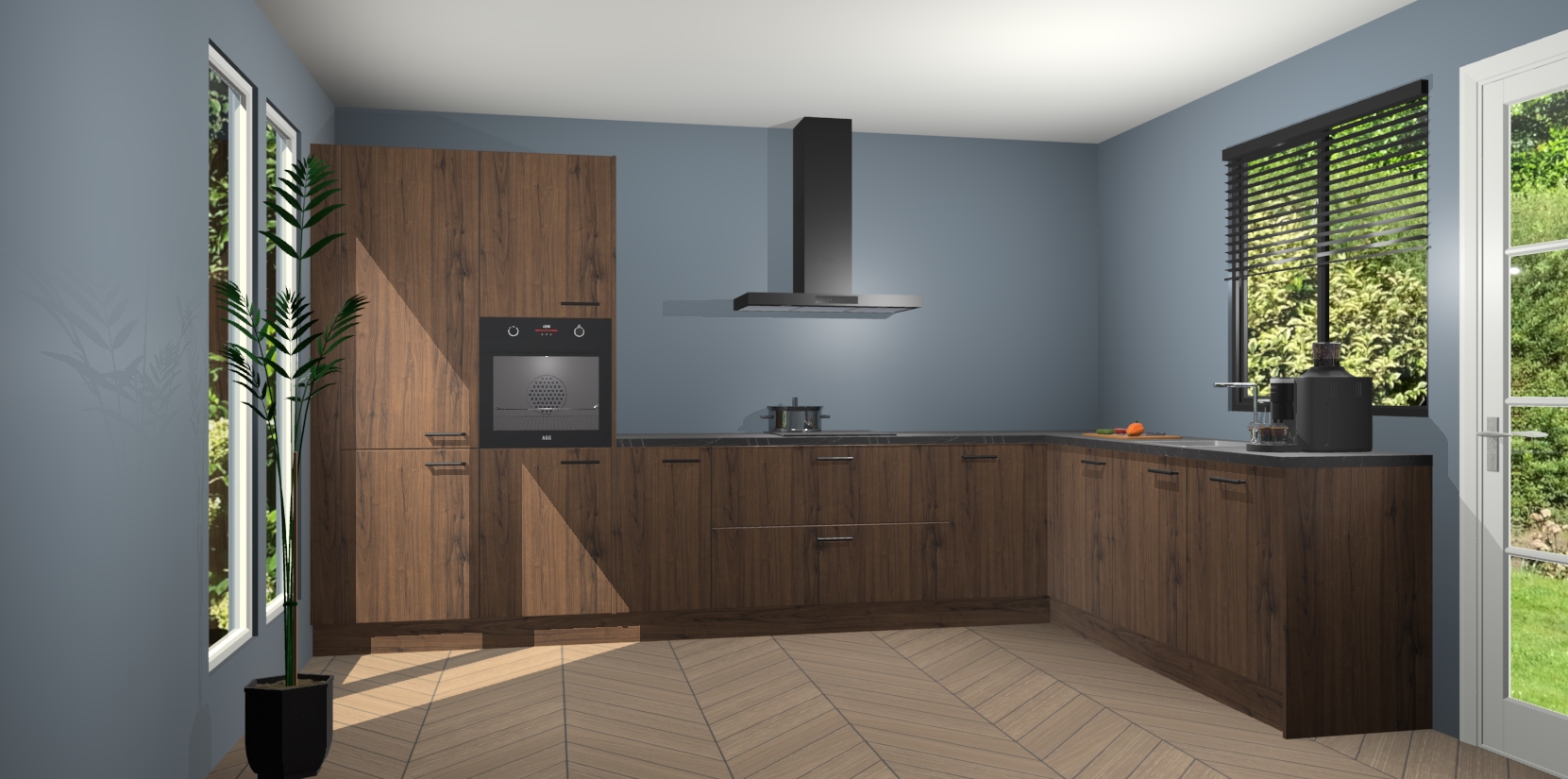 Met een modern, tijdloos design en ruime opslagruimte, zult u zich in no-time thuis voelen in uw nieuwe keuken. Uw leven wordt eenvoudiger met de soft-close deuren die voor het ultieme stille comfort zorgen - geen geluid dat u stoort terwijl u kookt. Ook is de keuken voorzien van 5 ingebouwde apparaten: een oven, inductie kookplaat, afzuigkap, vaatwasser en koelkast. Deze kunnen gemakkelijk na bestelling worden bijgewerkt naar AEG - waardoor uw luxe ervaring compleet is.