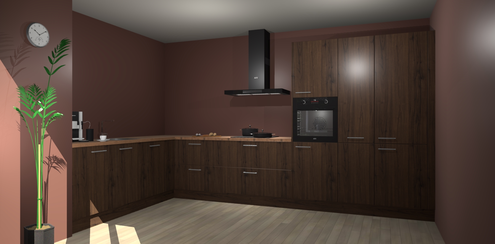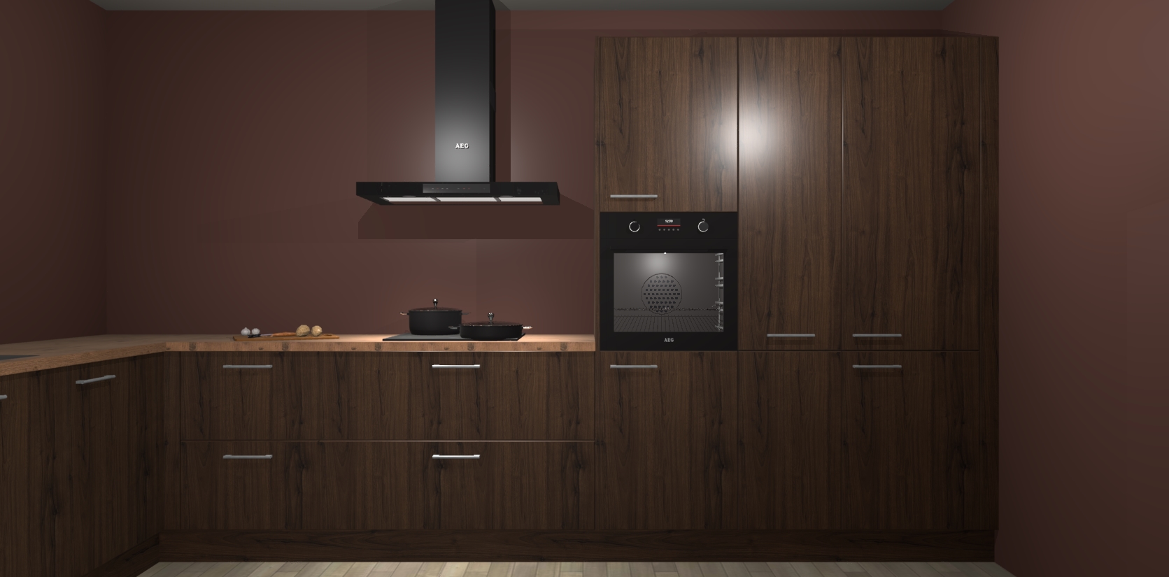 Welkom bij de noten keuken Nuuk. Deze prachtige keuken zal de komende jaren het middelpunt van de belangstelling in uw huis zijn. Uitgerust met vijf inbouwapparaten komt u nooit kookgereedschap tekort.
