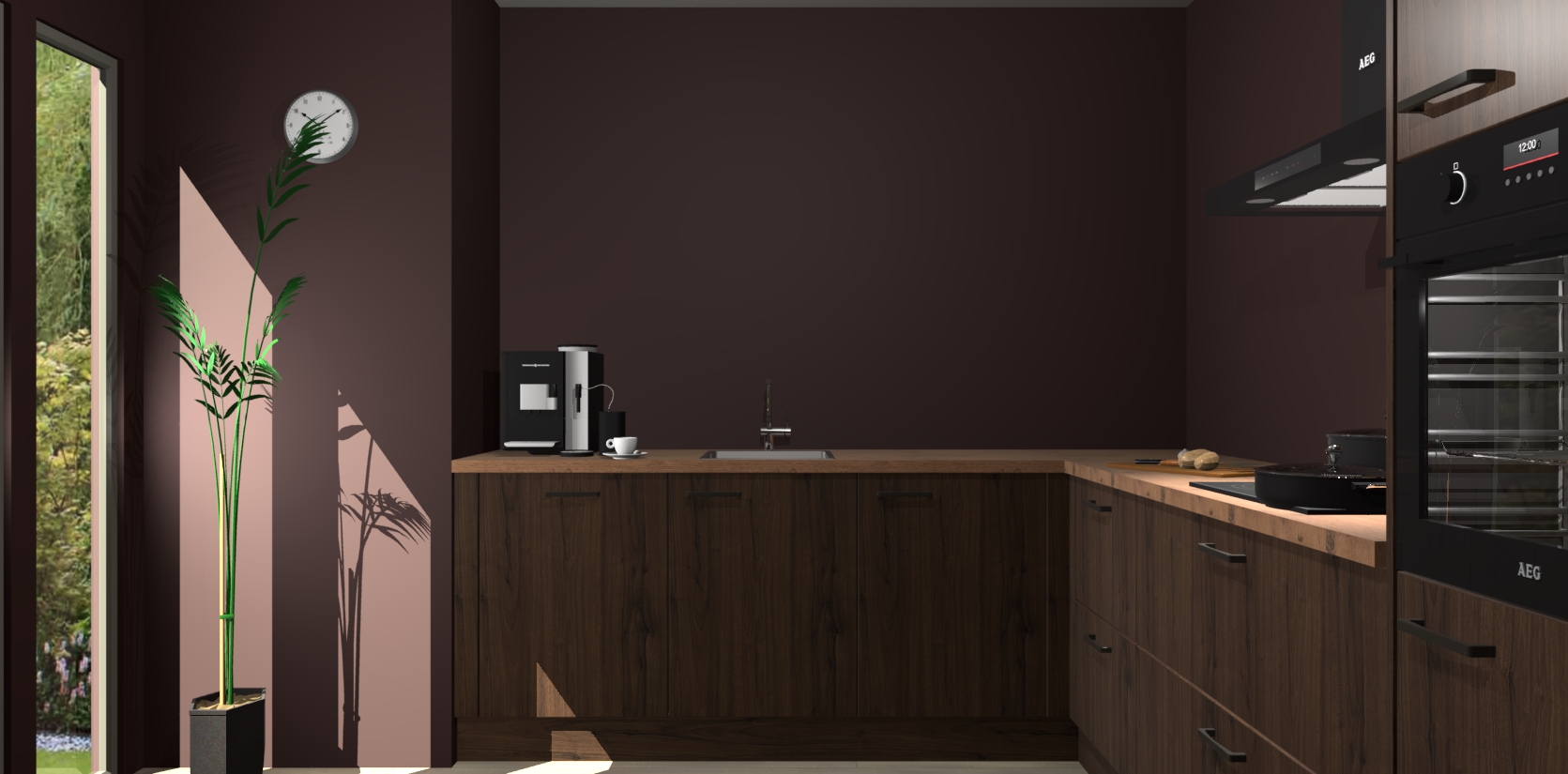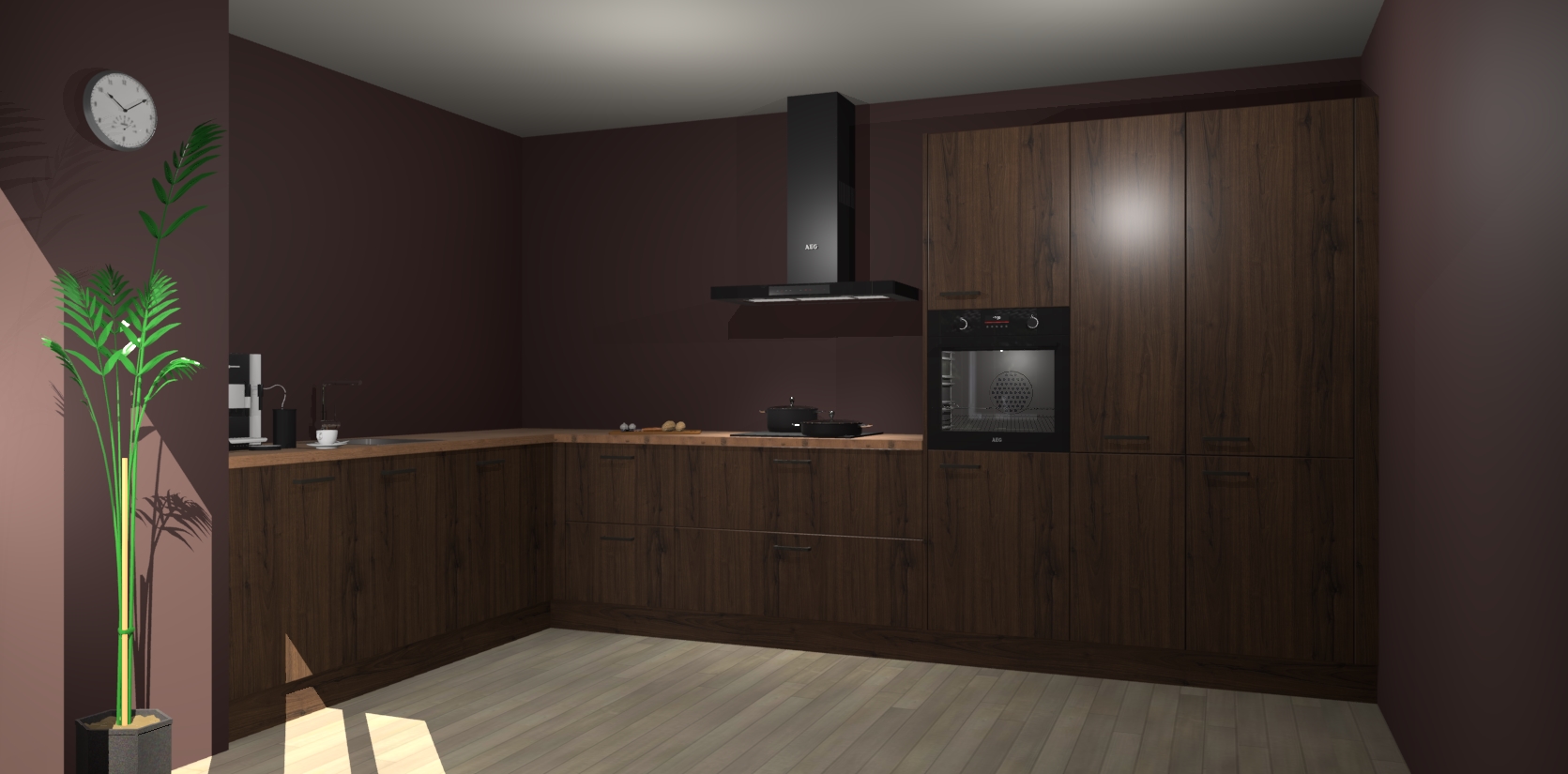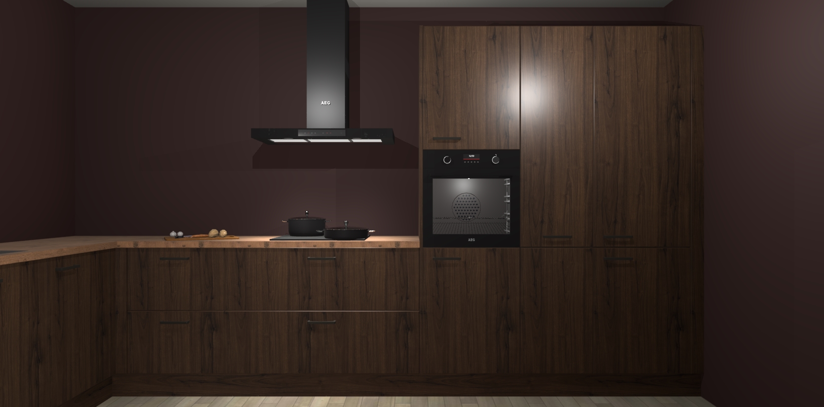 Welkom bij de noten keuken Nuuk. Deze prachtige keuken zal de komende jaren het middelpunt van de belangstelling in uw huis zijn. Uitgerust met vijf inbouwapparaten komt u nooit kookgereedschap tekort.