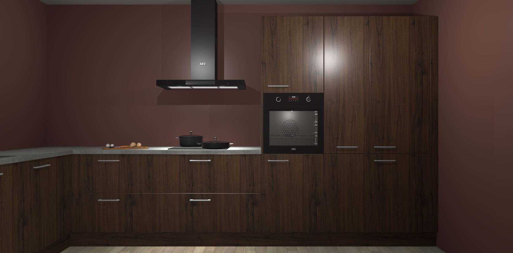 Welkom bij de noten keuken Nuuk. Deze prachtige keuken zal de komende jaren het middelpunt van de belangstelling in uw huis zijn. Uitgerust met vijf inbouwapparaten komt u nooit kookgereedschap tekort.