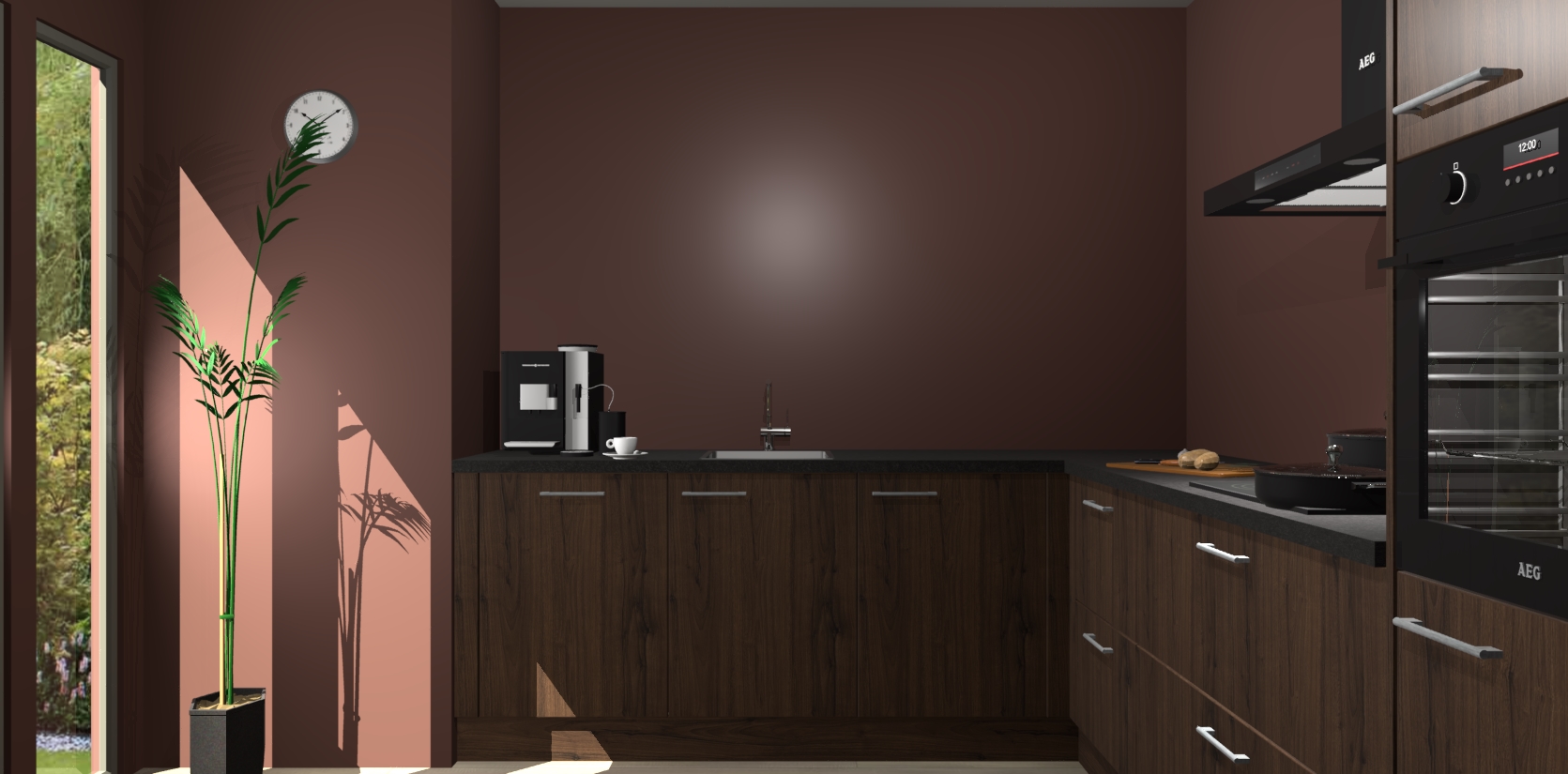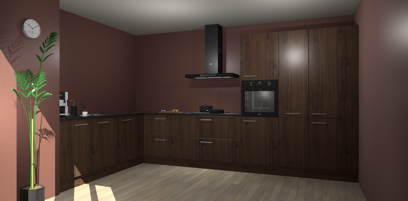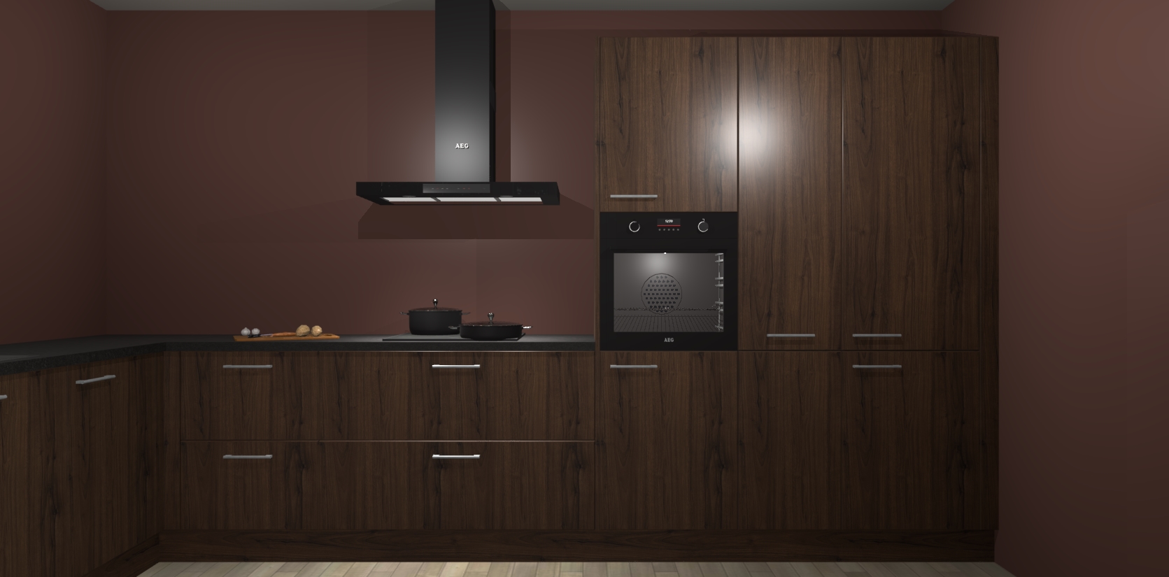 Welkom bij de noten keuken Nuuk. Deze prachtige keuken zal de komende jaren het middelpunt van de belangstelling in uw huis zijn. Uitgerust met vijf inbouwapparaten komt u nooit kookgereedschap tekort.