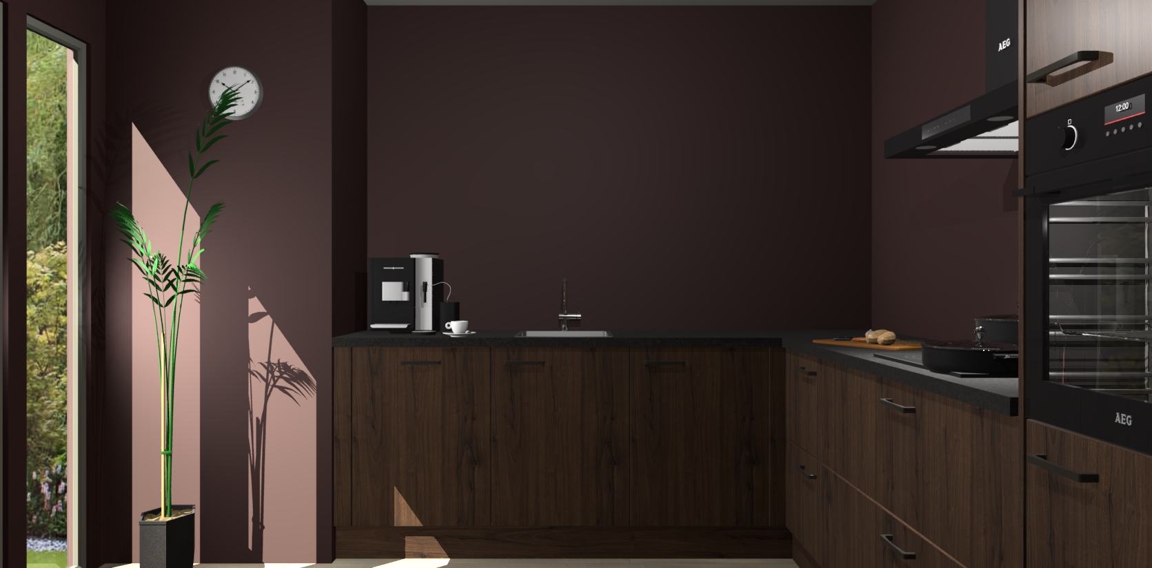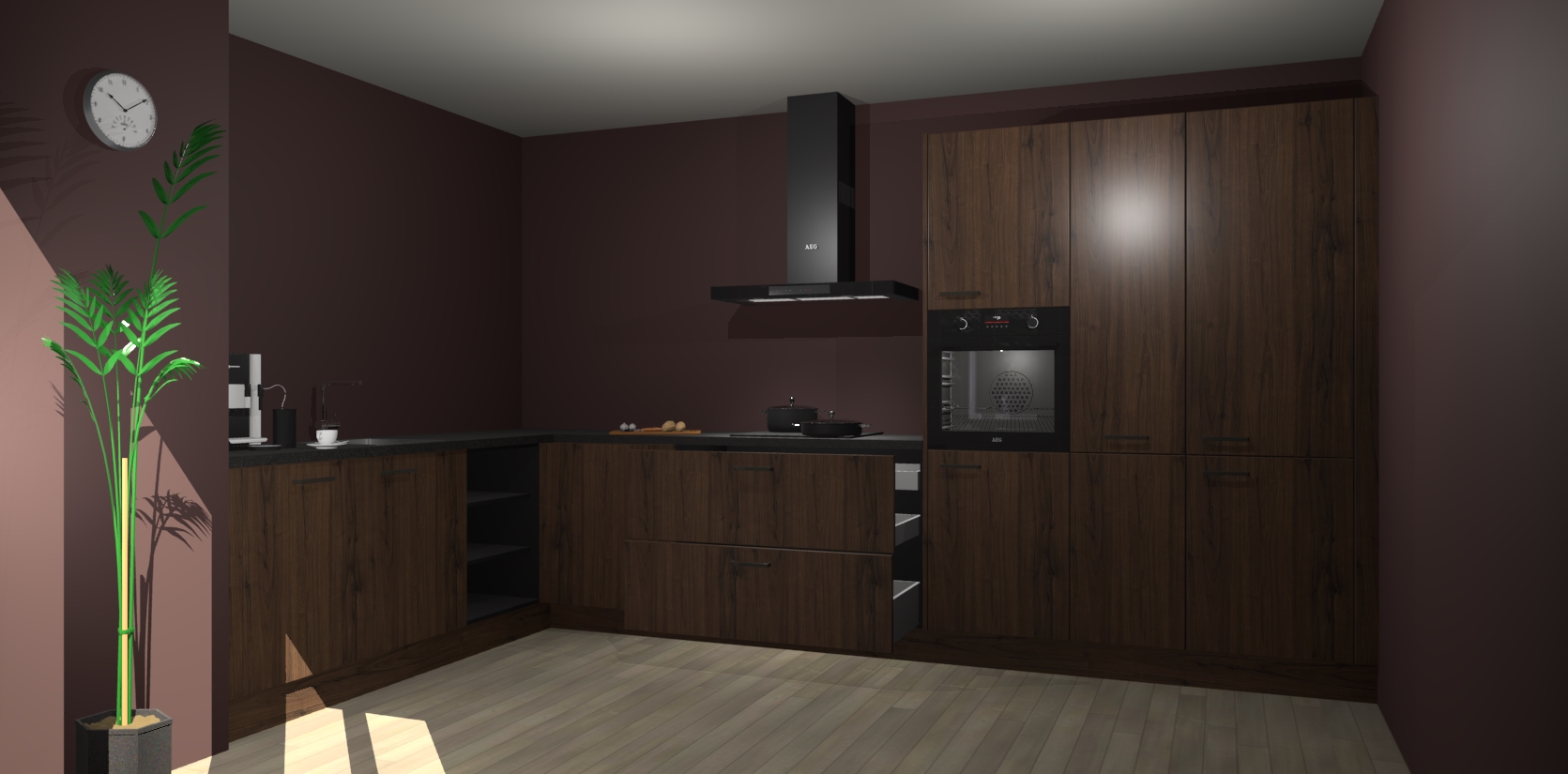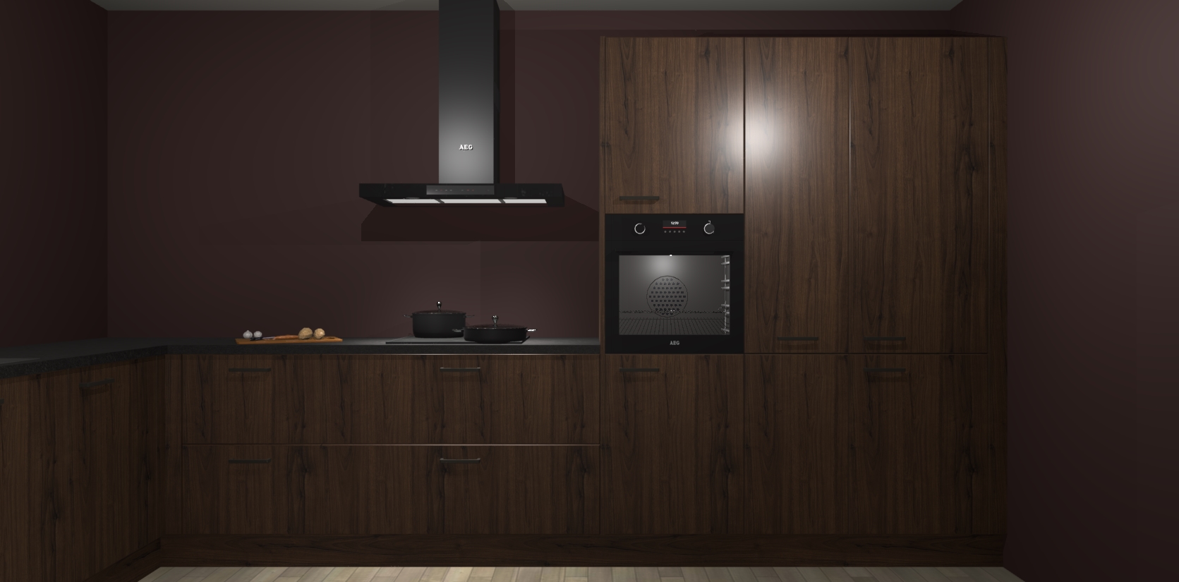 Welkom bij de noten keuken Nuuk. Deze prachtige keuken zal de komende jaren het middelpunt van de belangstelling in uw huis zijn. Uitgerust met vijf inbouwapparaten komt u nooit kookgereedschap tekort.