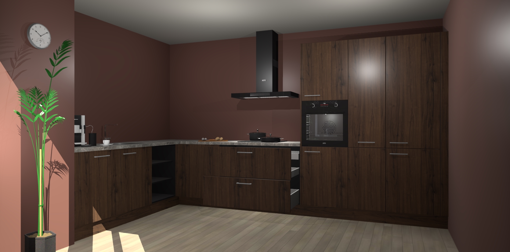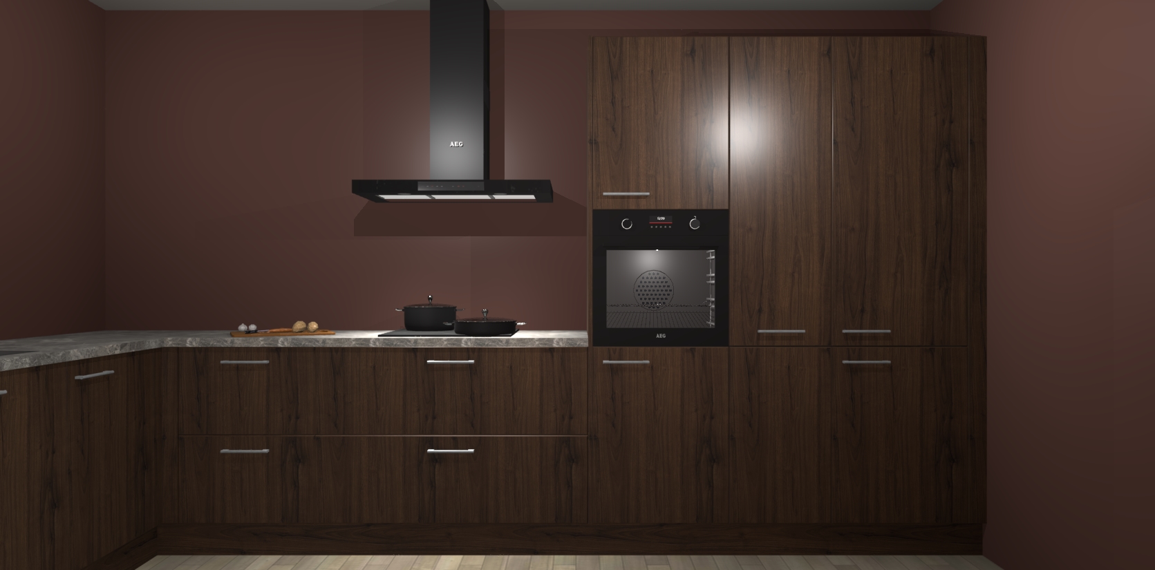 Welkom bij de noten keuken Nuuk. Deze prachtige keuken zal de komende jaren het middelpunt van de belangstelling in uw huis zijn. Uitgerust met vijf inbouwapparaten komt u nooit kookgereedschap tekort.