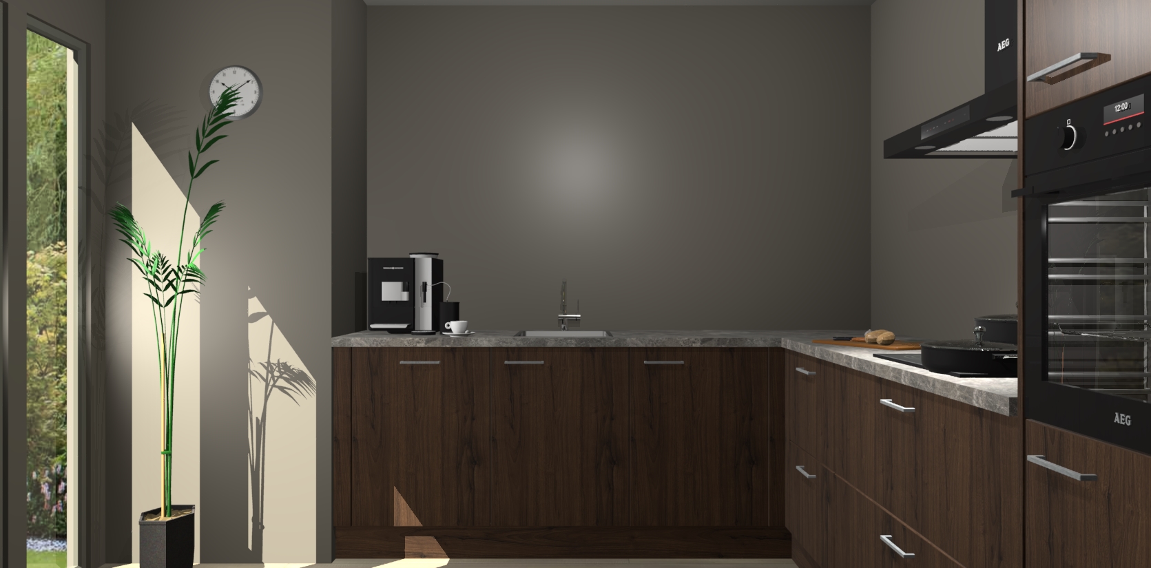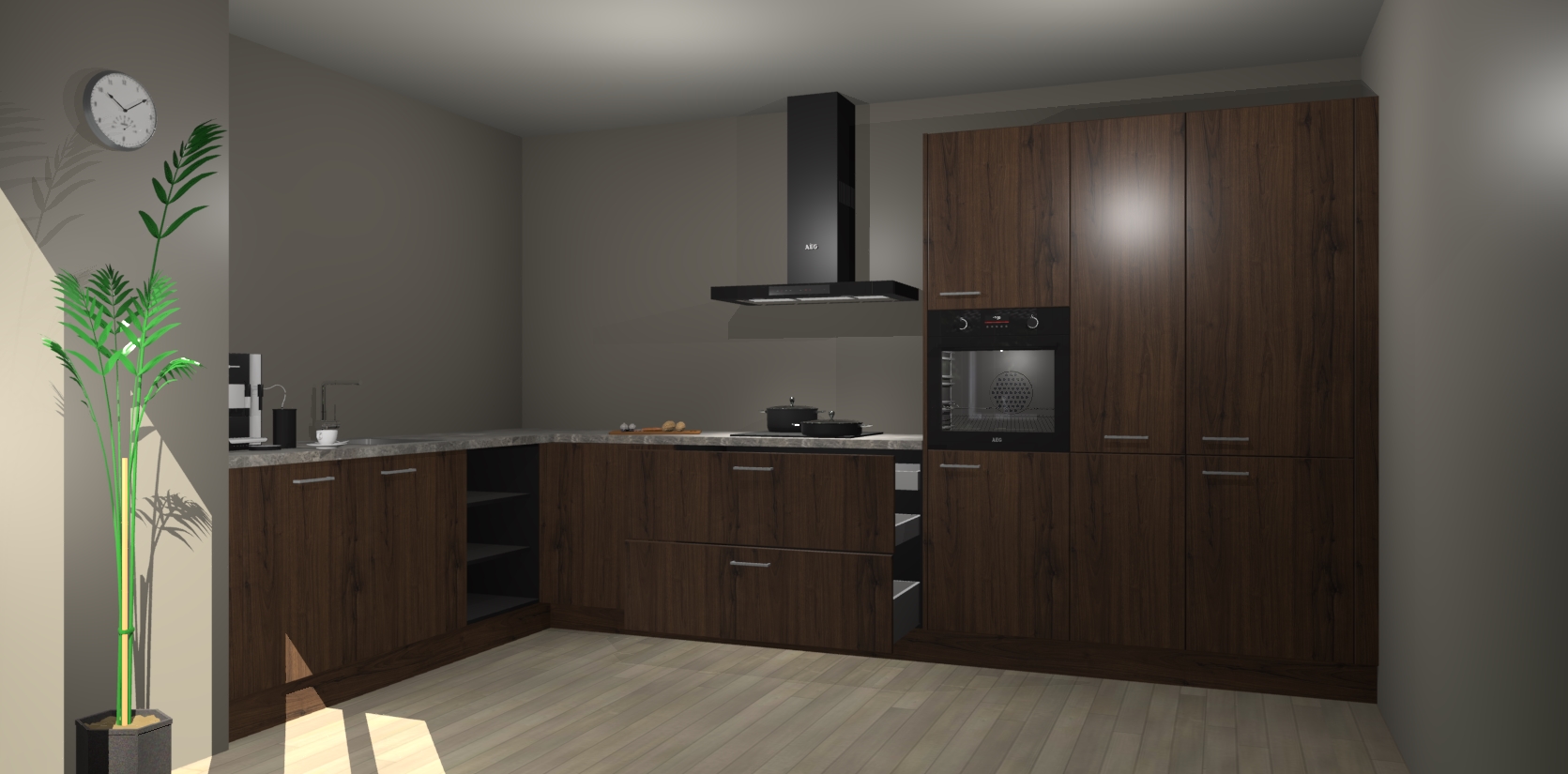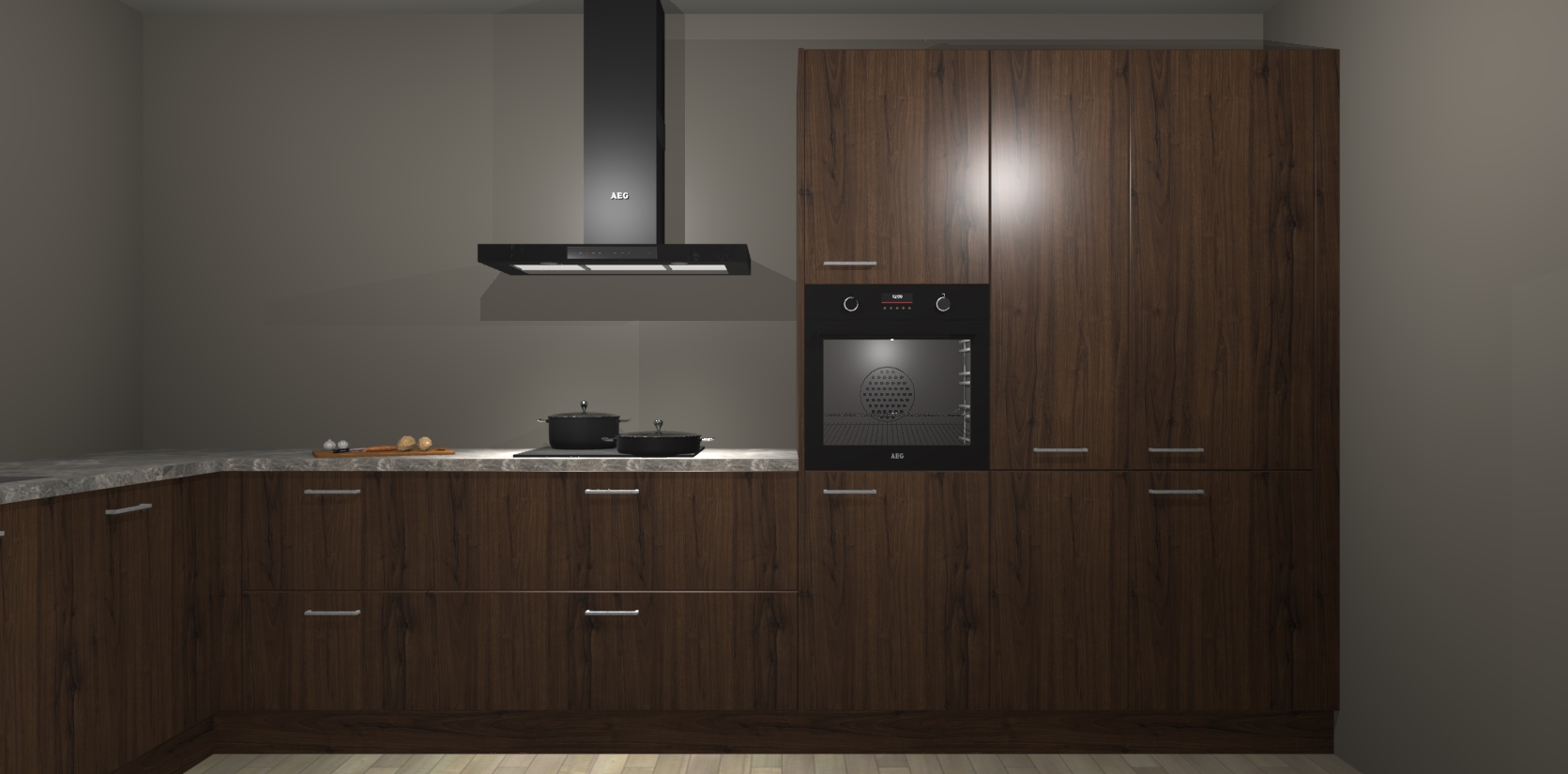 Welkom bij de noten keuken Nuuk. Deze prachtige keuken zal de komende jaren het middelpunt van de belangstelling in uw huis zijn. Uitgerust met vijf inbouwapparaten komt u nooit kookgereedschap tekort.