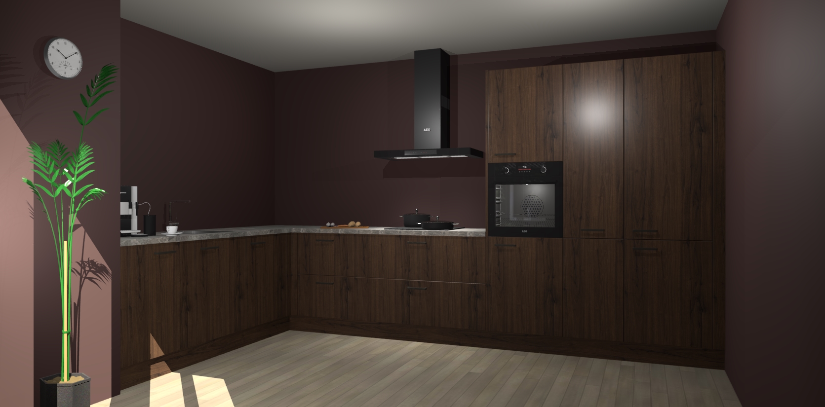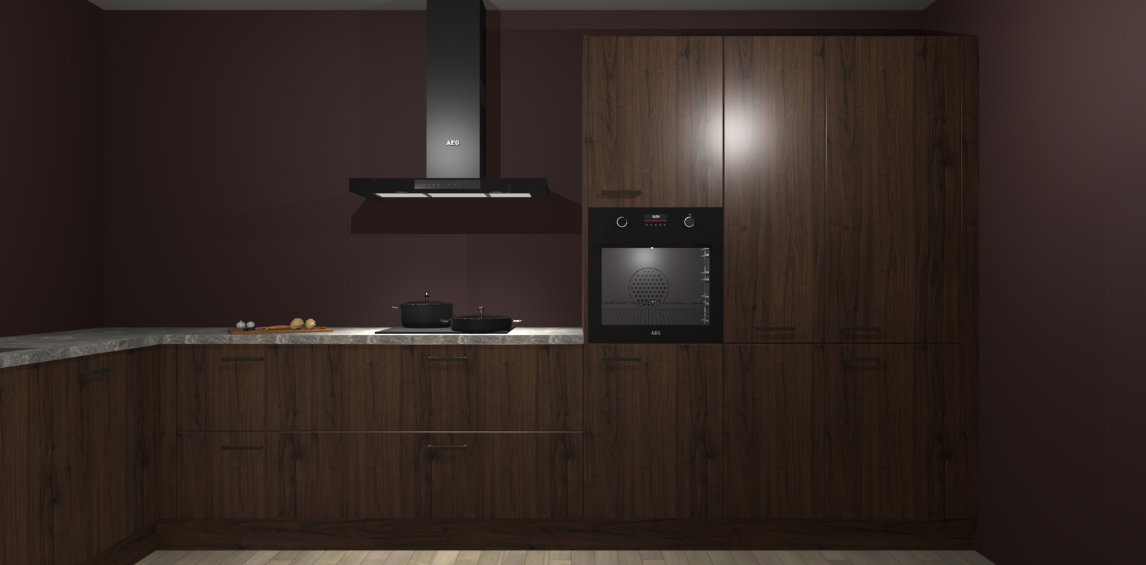 Welkom bij de noten keuken Nuuk. Deze prachtige keuken zal de komende jaren het middelpunt van de belangstelling in uw huis zijn. Uitgerust met vijf inbouwapparaten komt u nooit kookgereedschap tekort.