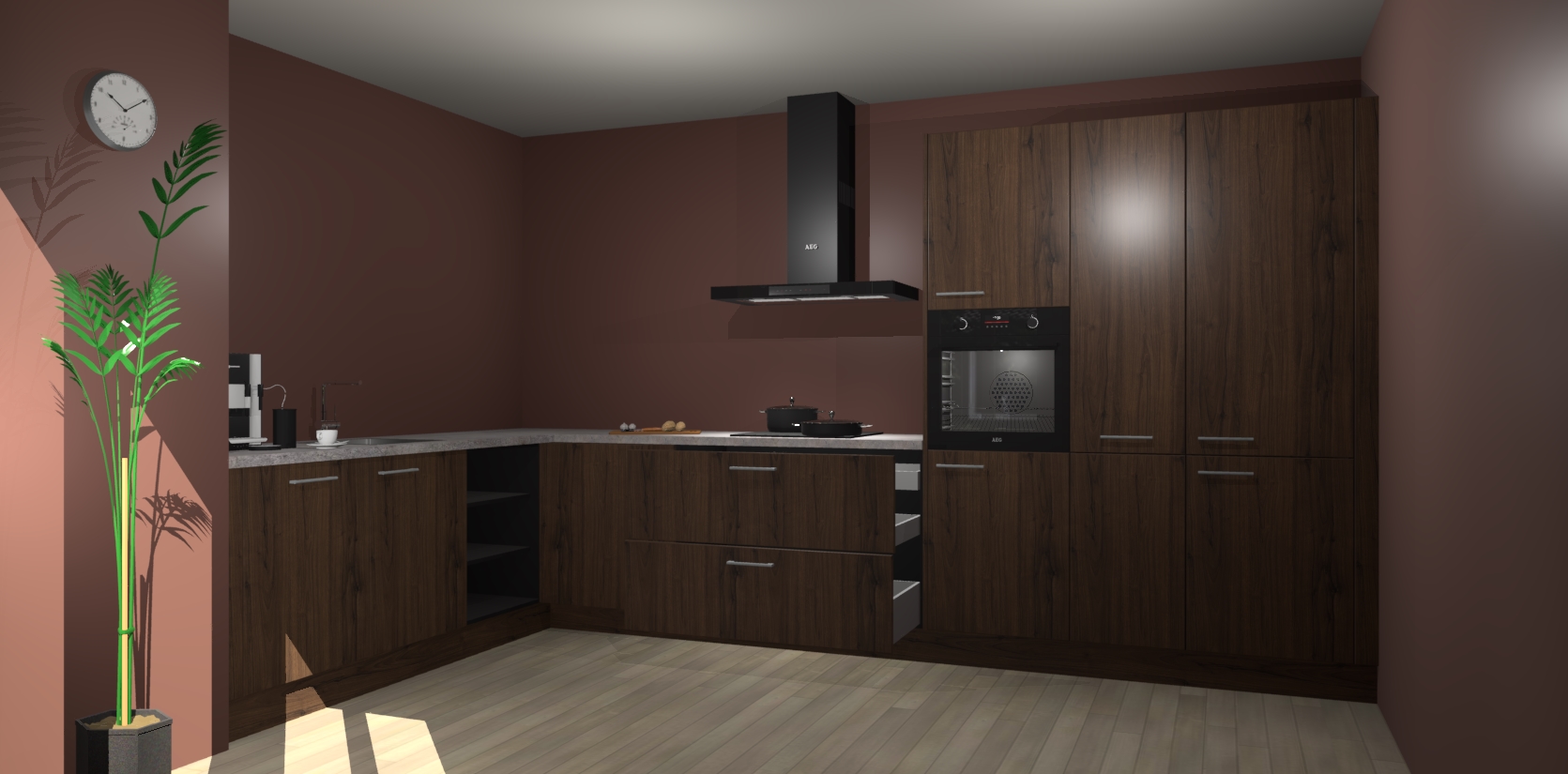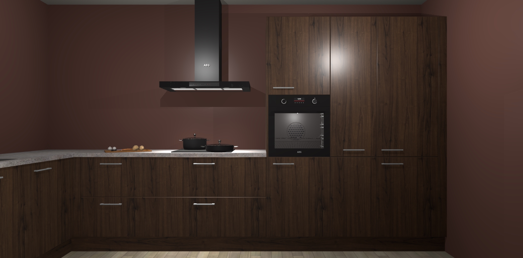 Welkom bij de noten keuken Nuuk. Deze prachtige keuken zal de komende jaren het middelpunt van de belangstelling in uw huis zijn. Uitgerust met vijf inbouwapparaten komt u nooit kookgereedschap tekort.