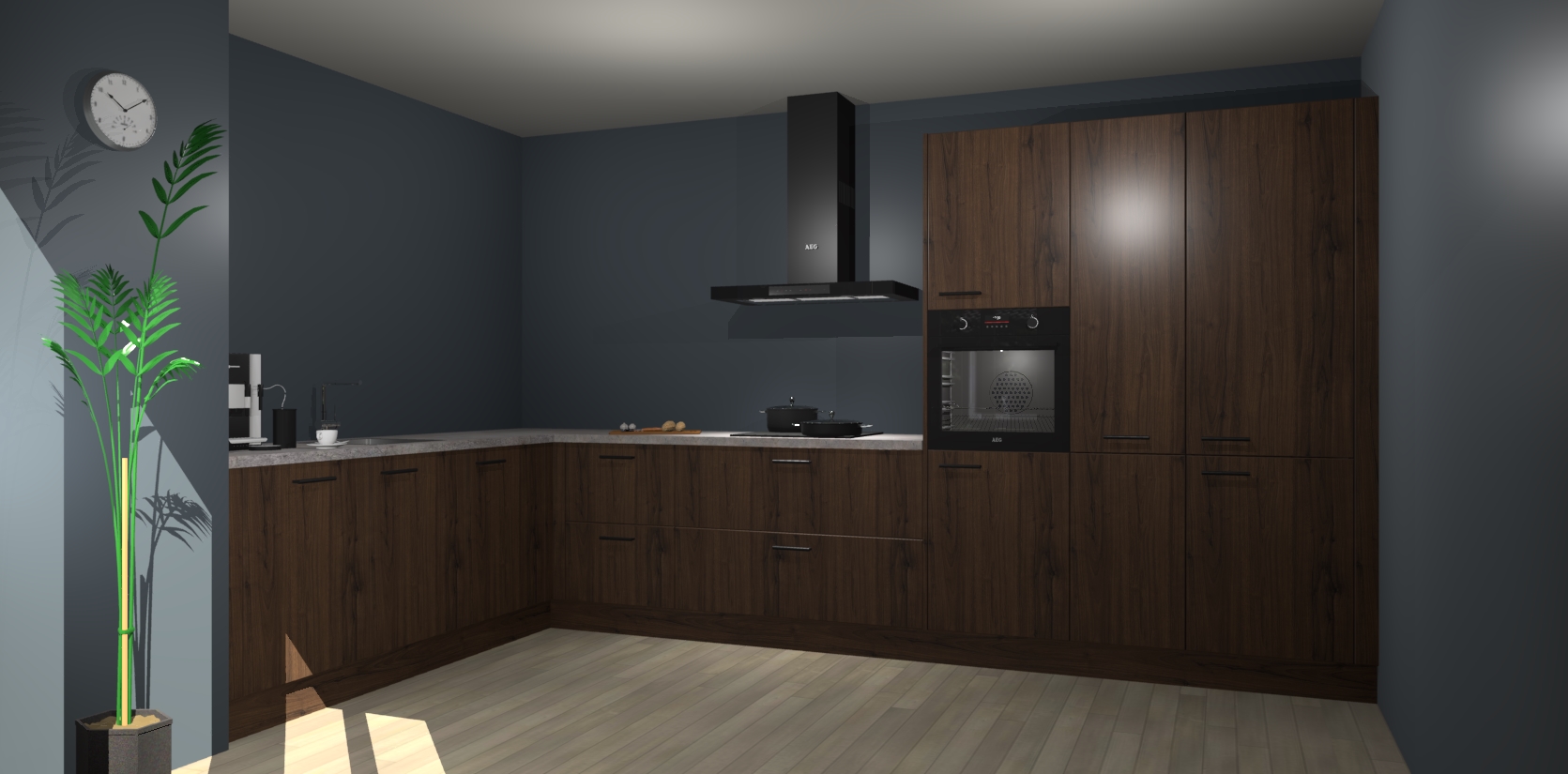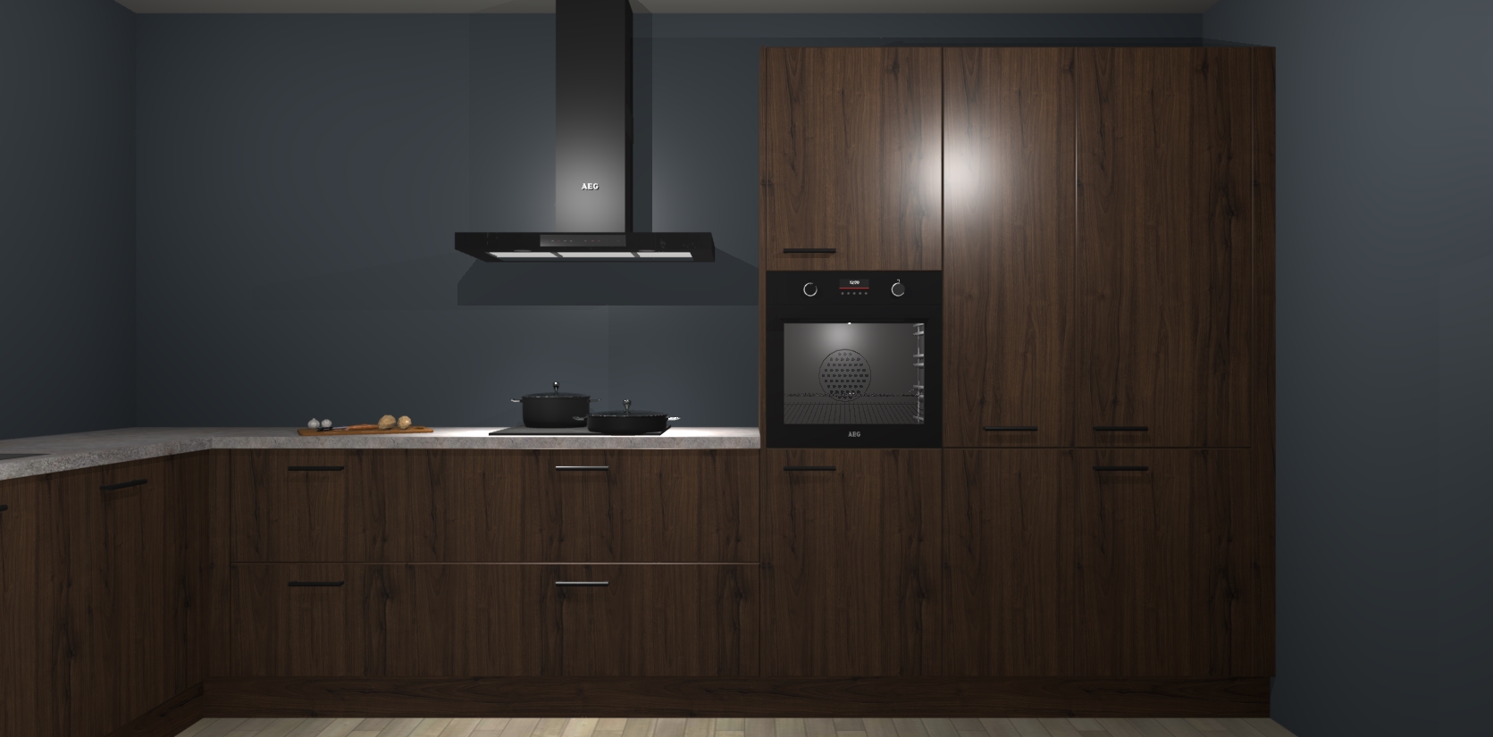 Welkom bij de noten keuken Nuuk. Deze prachtige keuken zal de komende jaren het middelpunt van de belangstelling in uw huis zijn. Uitgerust met vijf inbouwapparaten komt u nooit kookgereedschap tekort.