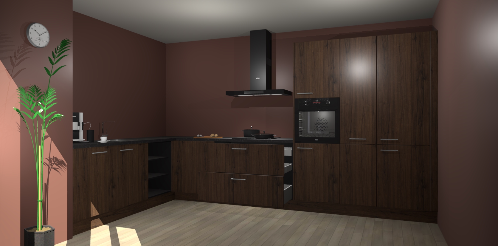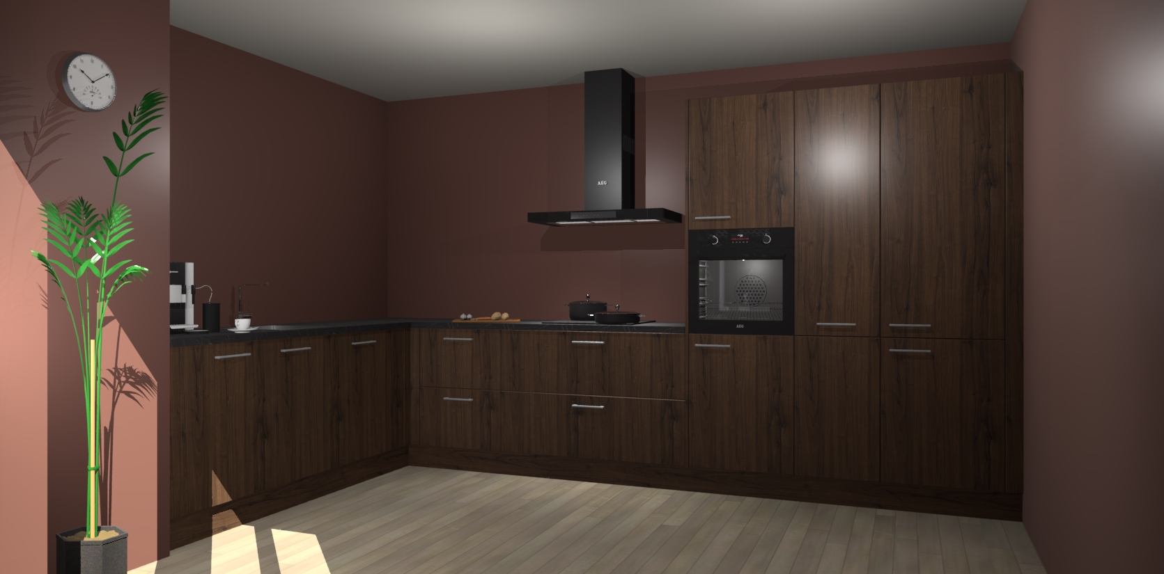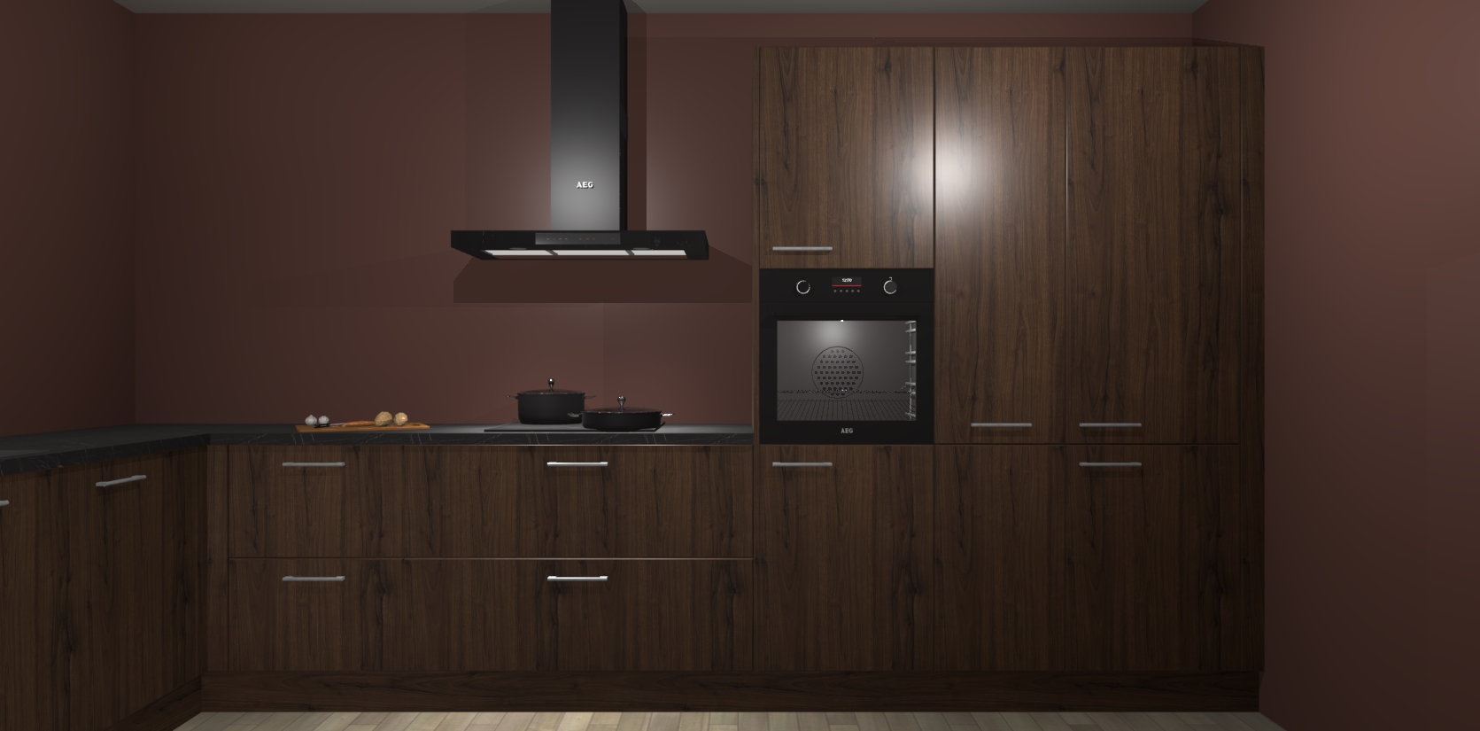 Welkom bij de noten keuken Nuuk. Deze prachtige keuken zal de komende jaren het middelpunt van de belangstelling in uw huis zijn. Uitgerust met vijf inbouwapparaten komt u nooit kookgereedschap tekort.