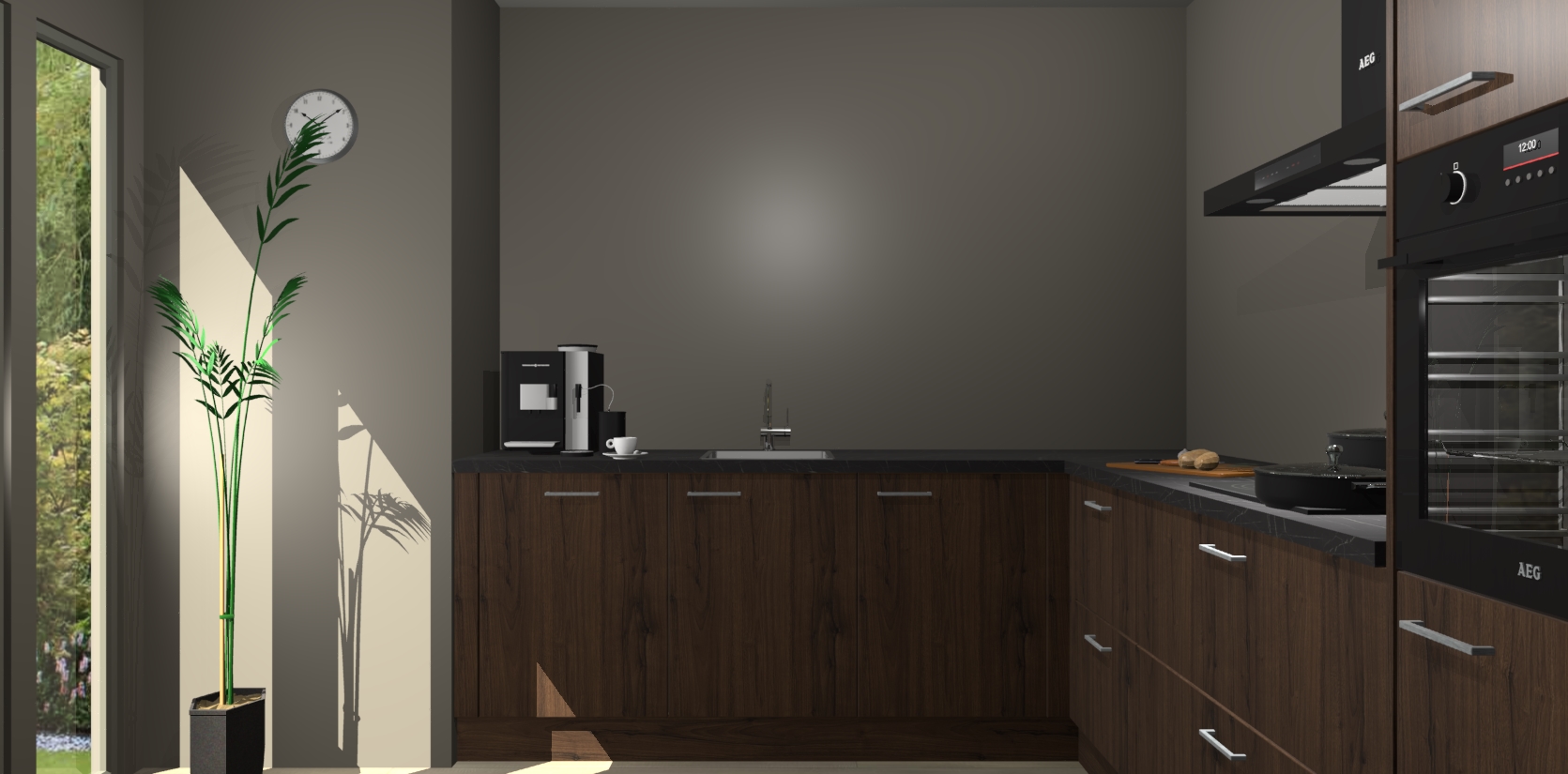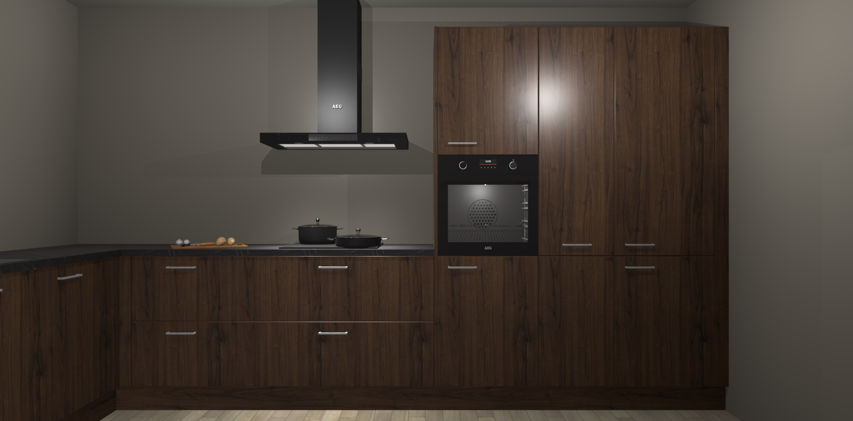 Welkom bij de noten keuken Nuuk. Deze prachtige keuken zal de komende jaren het middelpunt van de belangstelling in uw huis zijn. Uitgerust met vijf inbouwapparaten komt u nooit kookgereedschap tekort.