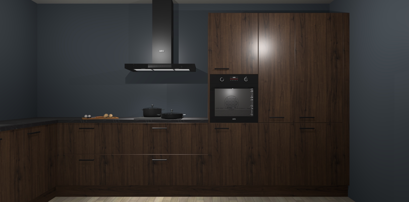 Welkom bij de noten keuken Nuuk. Deze prachtige keuken zal de komende jaren het middelpunt van de belangstelling in uw huis zijn. Uitgerust met vijf inbouwapparaten komt u nooit kookgereedschap tekort.