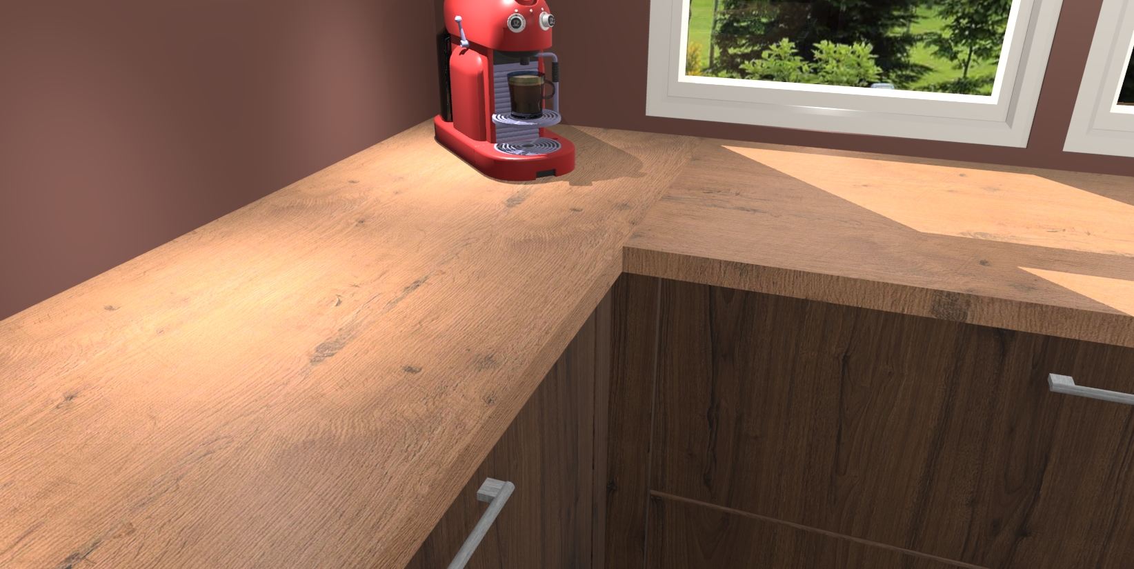 - Bij een hoekwerkblad zijn de hoeken in gevreesd en op maat gemaakt