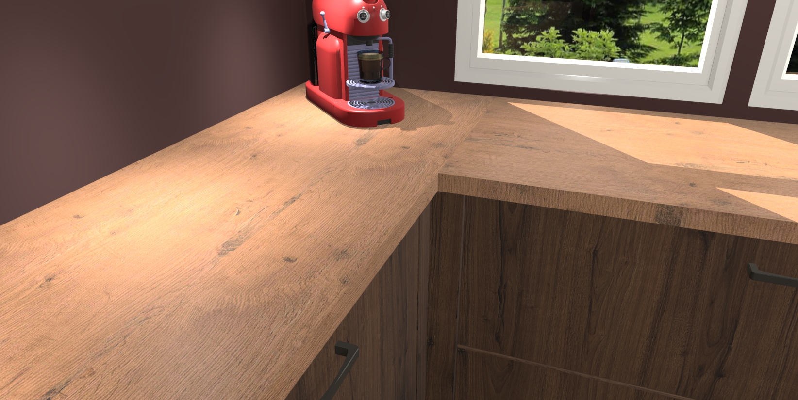 - Bij een hoekwerkblad zijn de hoeken in gevreesd en op maat gemaakt