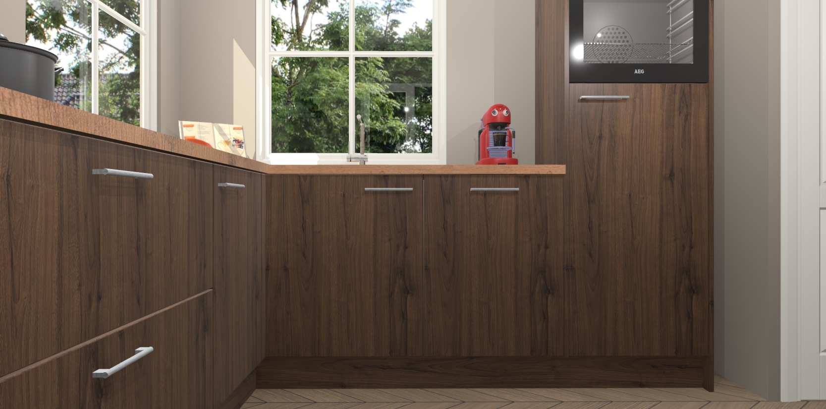 De Noten keuken Pai bevat vijf essentiële inbouwapparaten - een oven, inductiekookplaat, afzuigkap, vaatwasser en koelkast - zodat u er na levering meteen in kunt. Voor de slimme kopers die weten dat apparaten vaak het verschil kunnen maken tussen functioneel en luxueus, bieden we eenvoudige upgradeopties naar AEG, van oven naar combimagnetron na bestelling of naar een kookplaat met geïntrigeerde afzuiging. En met onze vaste lage prijs en snelle levering binnen zeven weken vanaf de orderbevestiging hoeft u zich geen zorgen te maken over verborgen kosten of lange levertijden die uw droomkeuken kunnen vertragen.