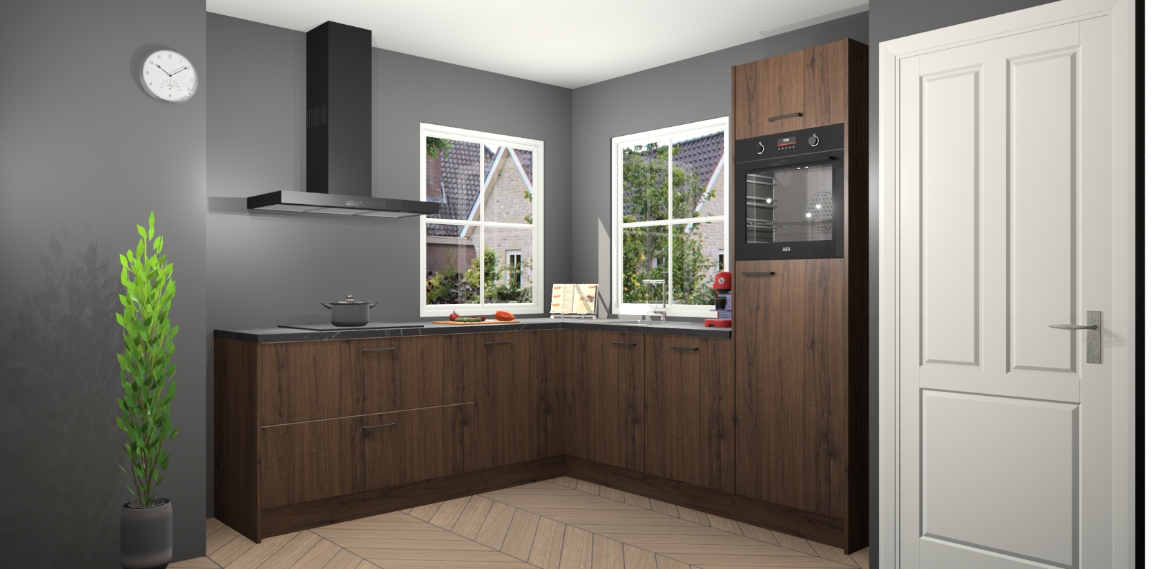 Maak kennis met de Noten keuken Pai: de perfecte keukenoplossing voor stijlzoekers die streven naar zowel schoonheid als een lange levensduur in hun huis. Dit tijdloze ontwerp is modern en verfijnd, waardoor het een prachtige aanvulling is op elke leefruimte.