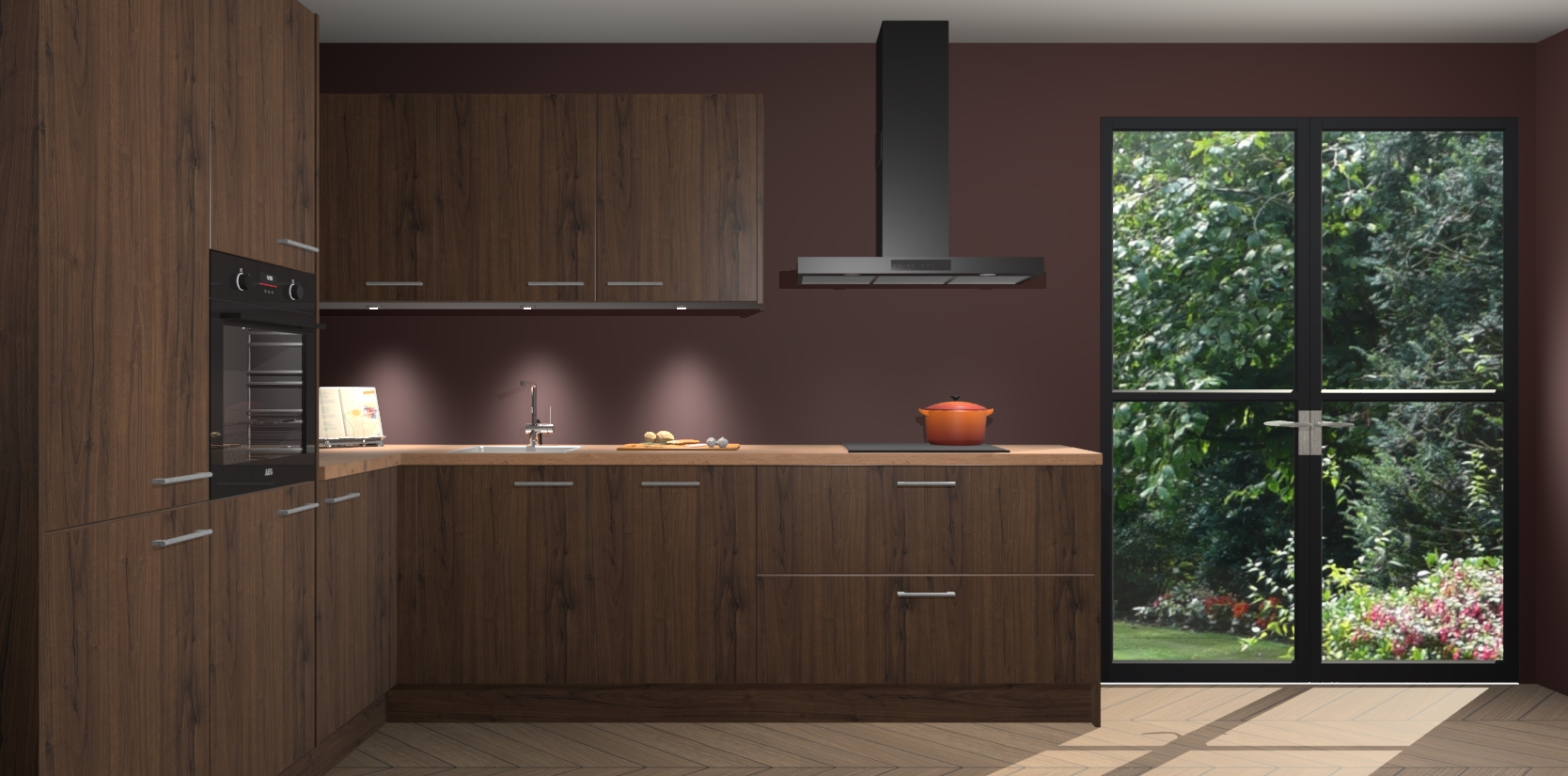 Maak kennis met de noten keuken Parla - de perfecte aanvulling voor uw moderne keuken! Ervaar tijdloos design, elegantie en een chique uitstraling met onze zwarte handgrepen, soft-close deuren en veel opbergruimte. Dit alles wordt aangeboden tegen een vaste lage prijs voor ongeëvenaarde Duitse keukenkwaliteit!