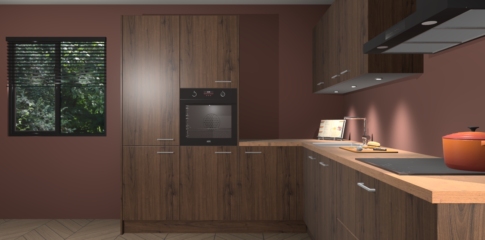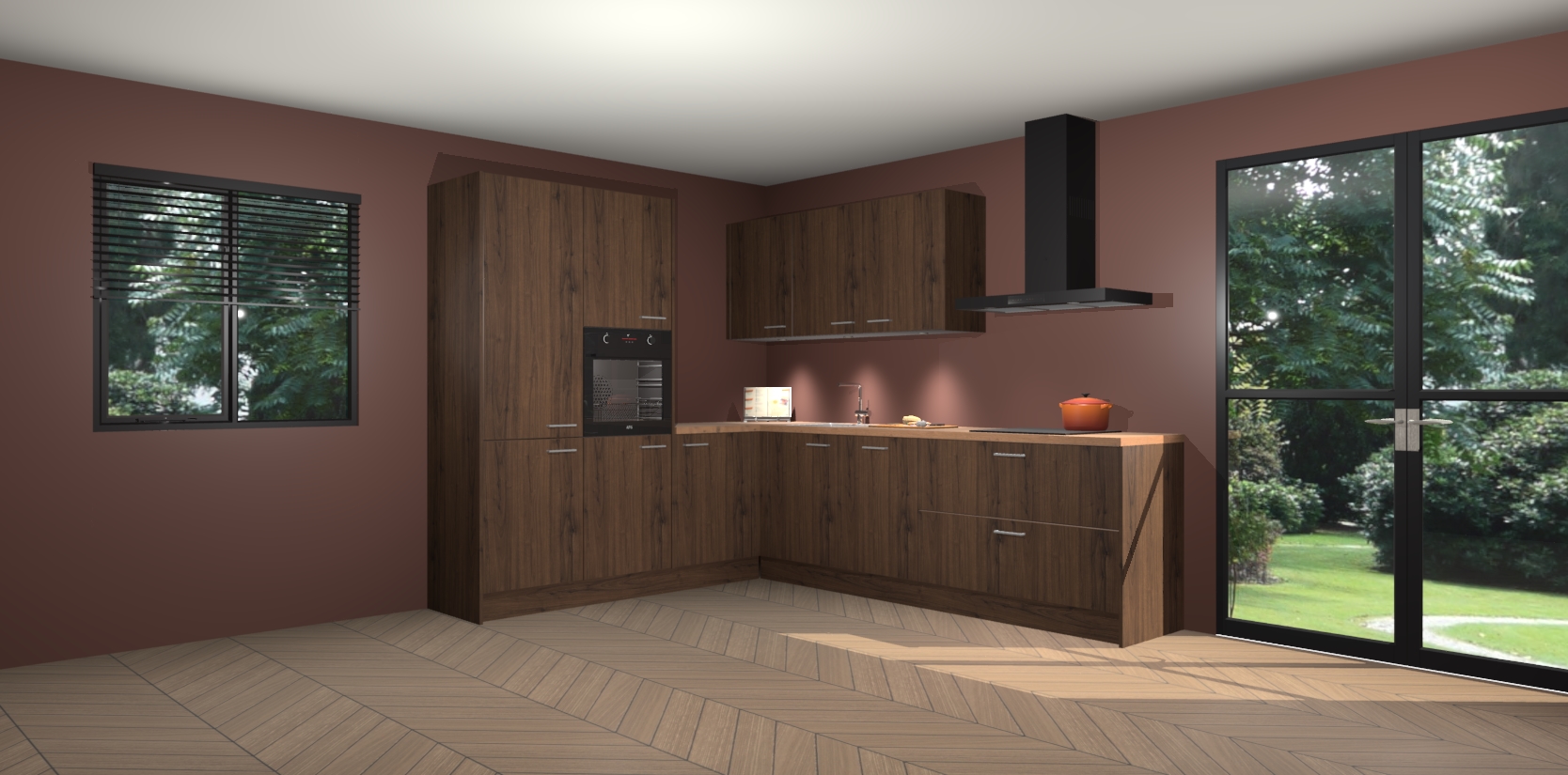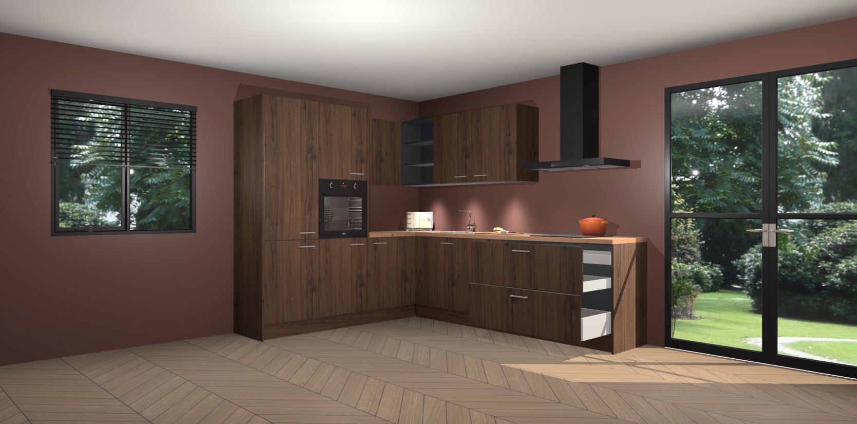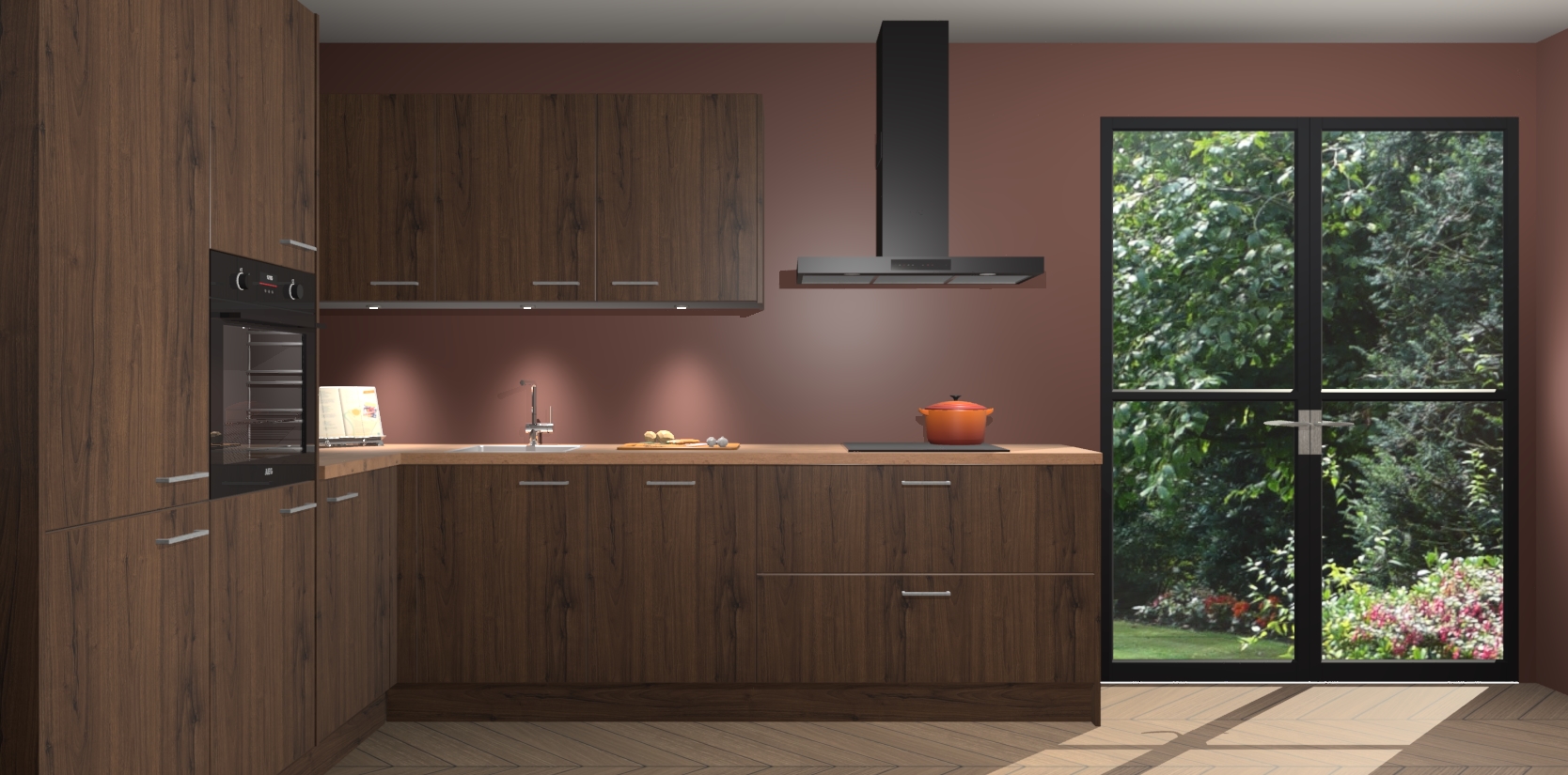 Maak kennis met de noten keuken Parla - de perfecte aanvulling voor uw moderne keuken! Ervaar tijdloos design, elegantie en een chique uitstraling met onze zwarte handgrepen, soft-close deuren en veel opbergruimte. Dit alles wordt aangeboden tegen een vaste lage prijs voor ongeëvenaarde Duitse keukenkwaliteit!