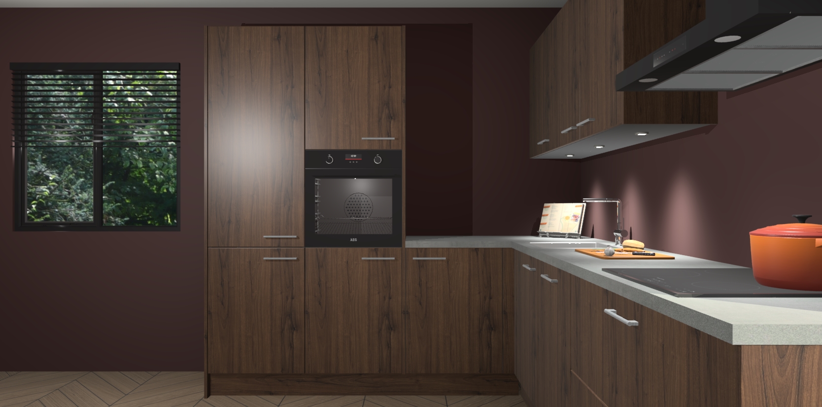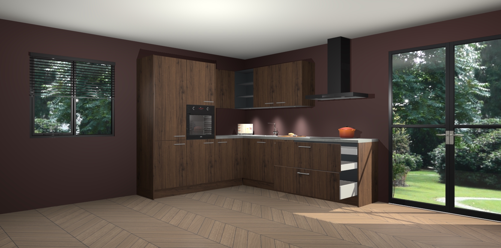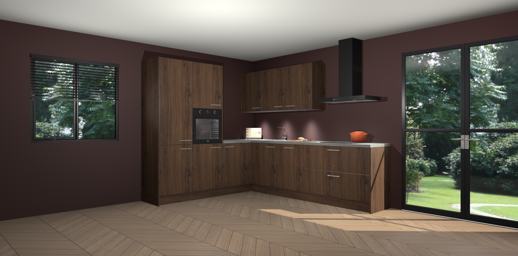 Maak kennis met de noten keuken Parla - de perfecte aanvulling voor uw moderne keuken! Ervaar tijdloos design, elegantie en een chique uitstraling met onze zwarte handgrepen, soft-close deuren en veel opbergruimte. Dit alles wordt aangeboden tegen een vaste lage prijs voor ongeëvenaarde Duitse keukenkwaliteit!