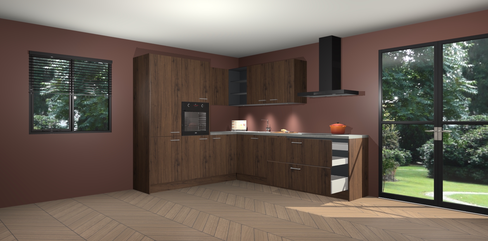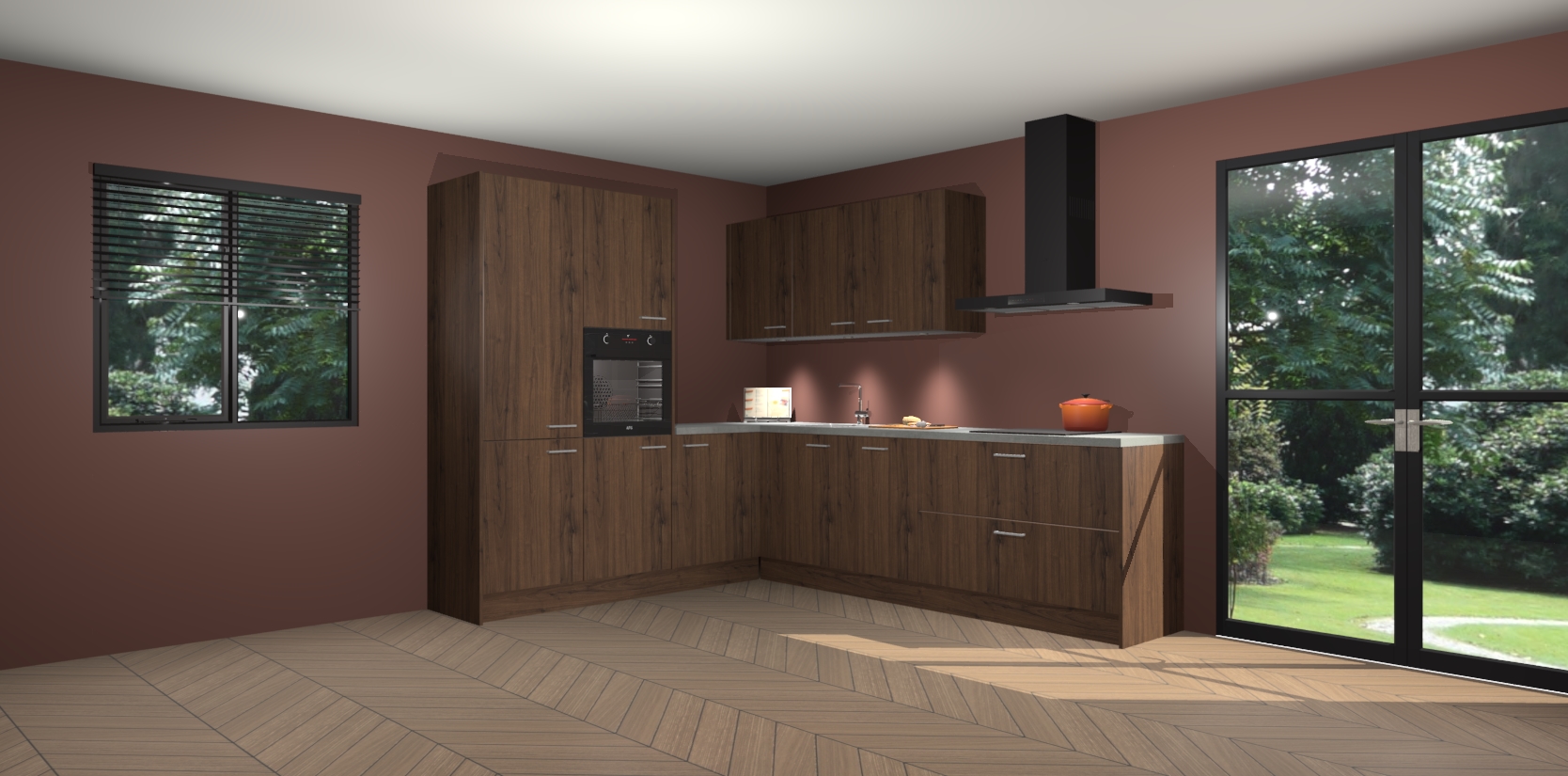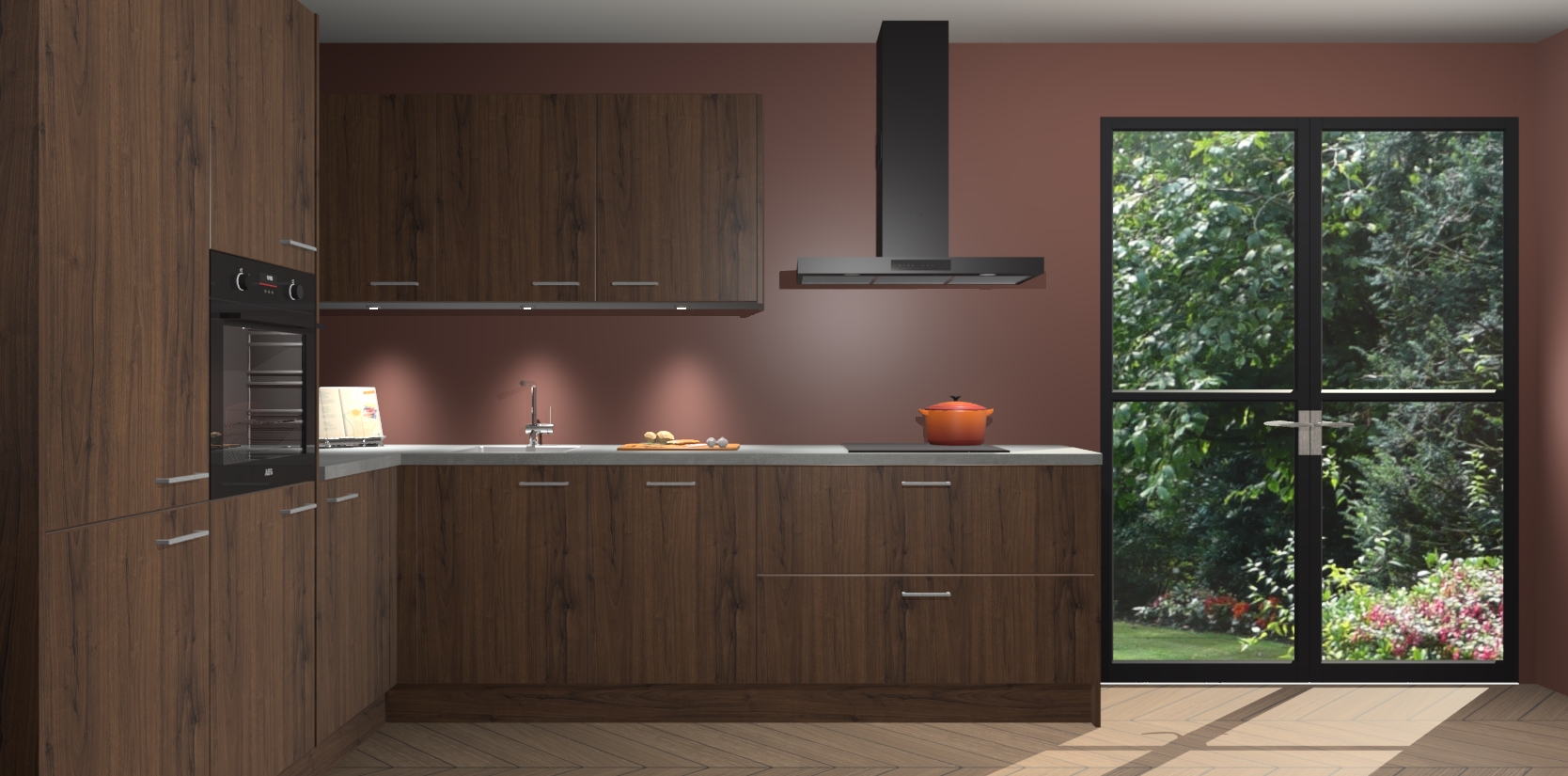 Maak kennis met de noten keuken Parla - de perfecte aanvulling voor uw moderne keuken! Ervaar tijdloos design, elegantie en een chique uitstraling met onze zwarte handgrepen, soft-close deuren en veel opbergruimte. Dit alles wordt aangeboden tegen een vaste lage prijs voor ongeëvenaarde Duitse keukenkwaliteit!