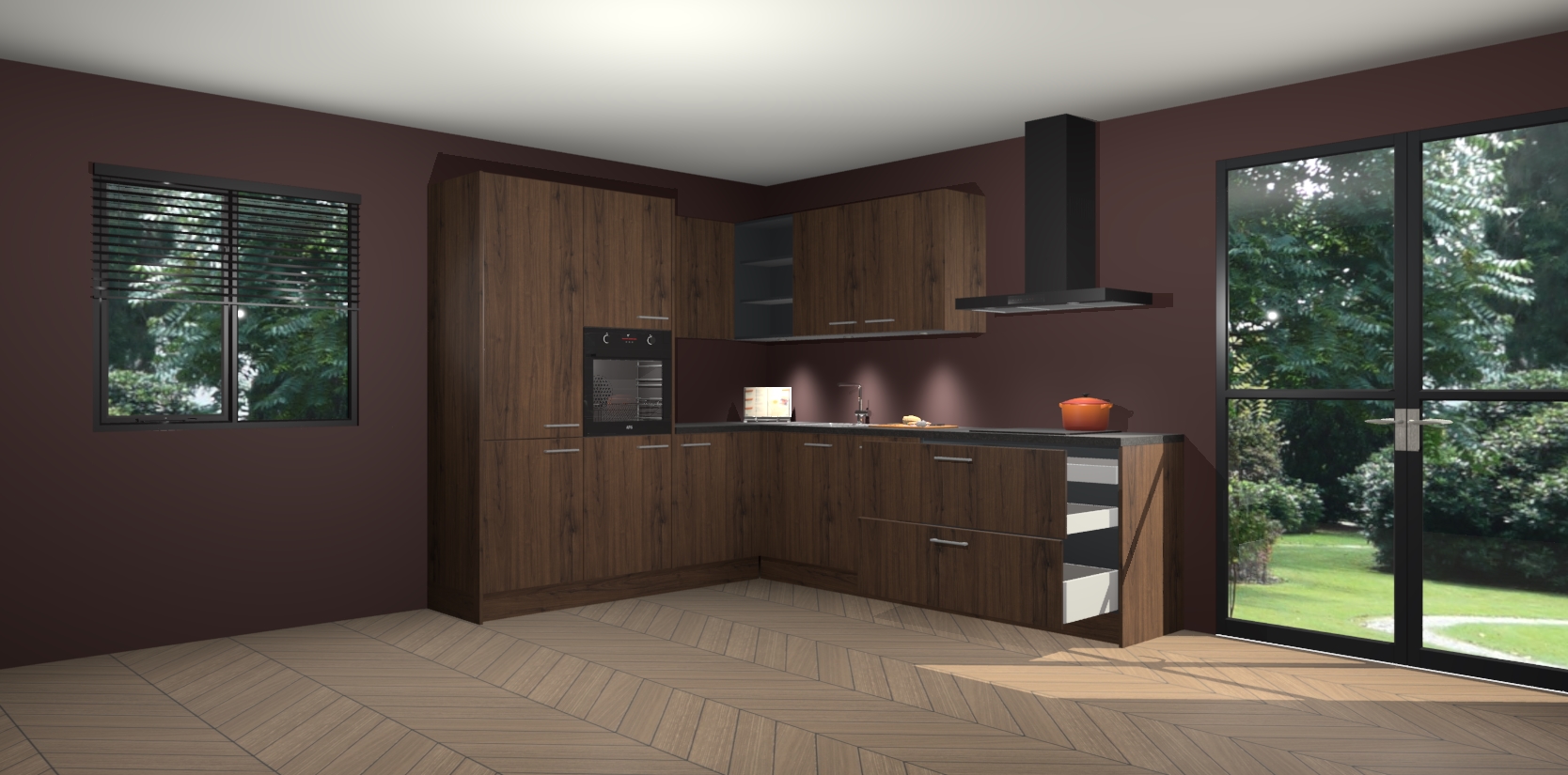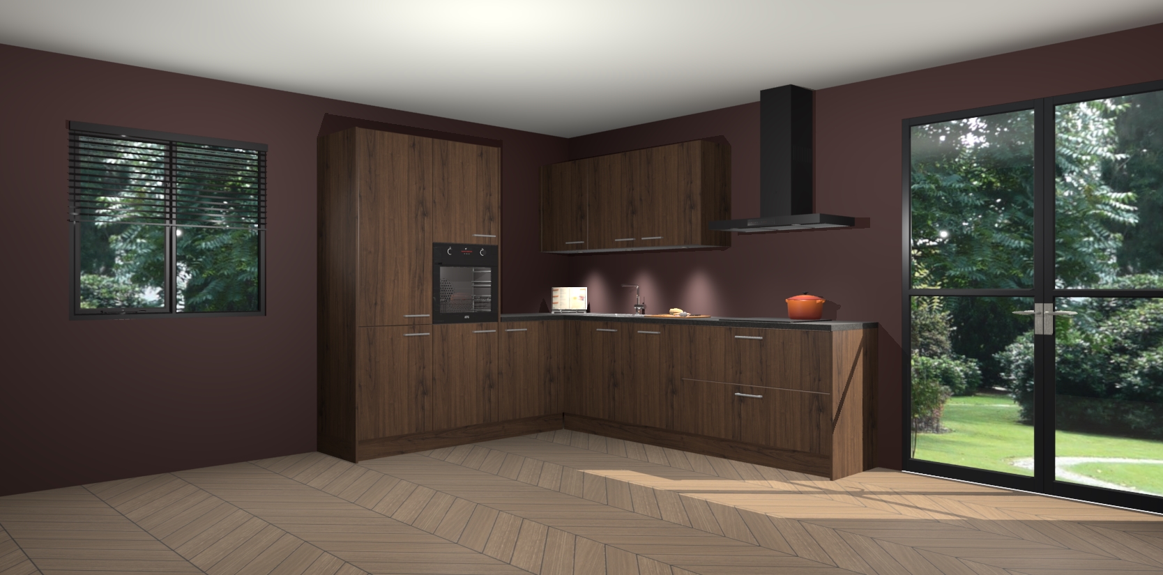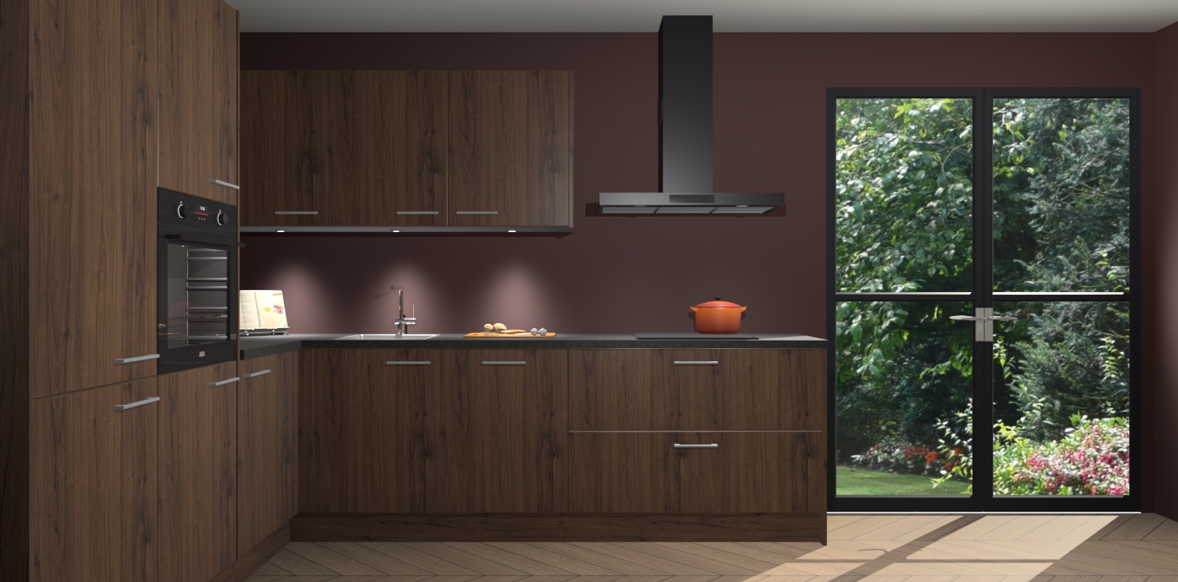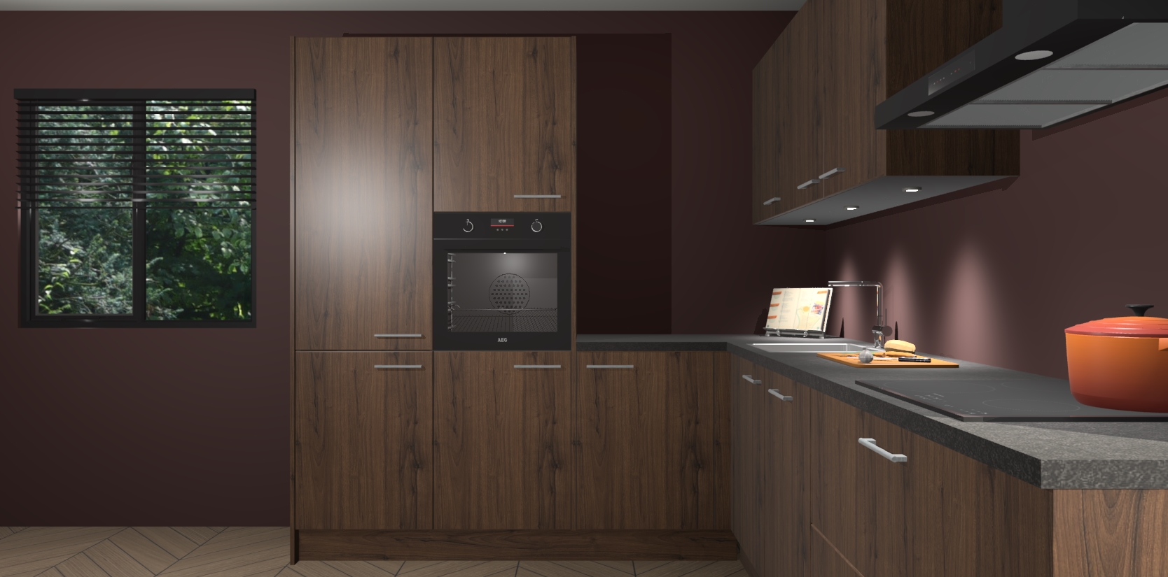 Maak kennis met de noten keuken Parla - de perfecte aanvulling voor uw moderne keuken! Ervaar tijdloos design, elegantie en een chique uitstraling met onze zwarte handgrepen, soft-close deuren en veel opbergruimte. Dit alles wordt aangeboden tegen een vaste lage prijs voor ongeëvenaarde Duitse keukenkwaliteit!