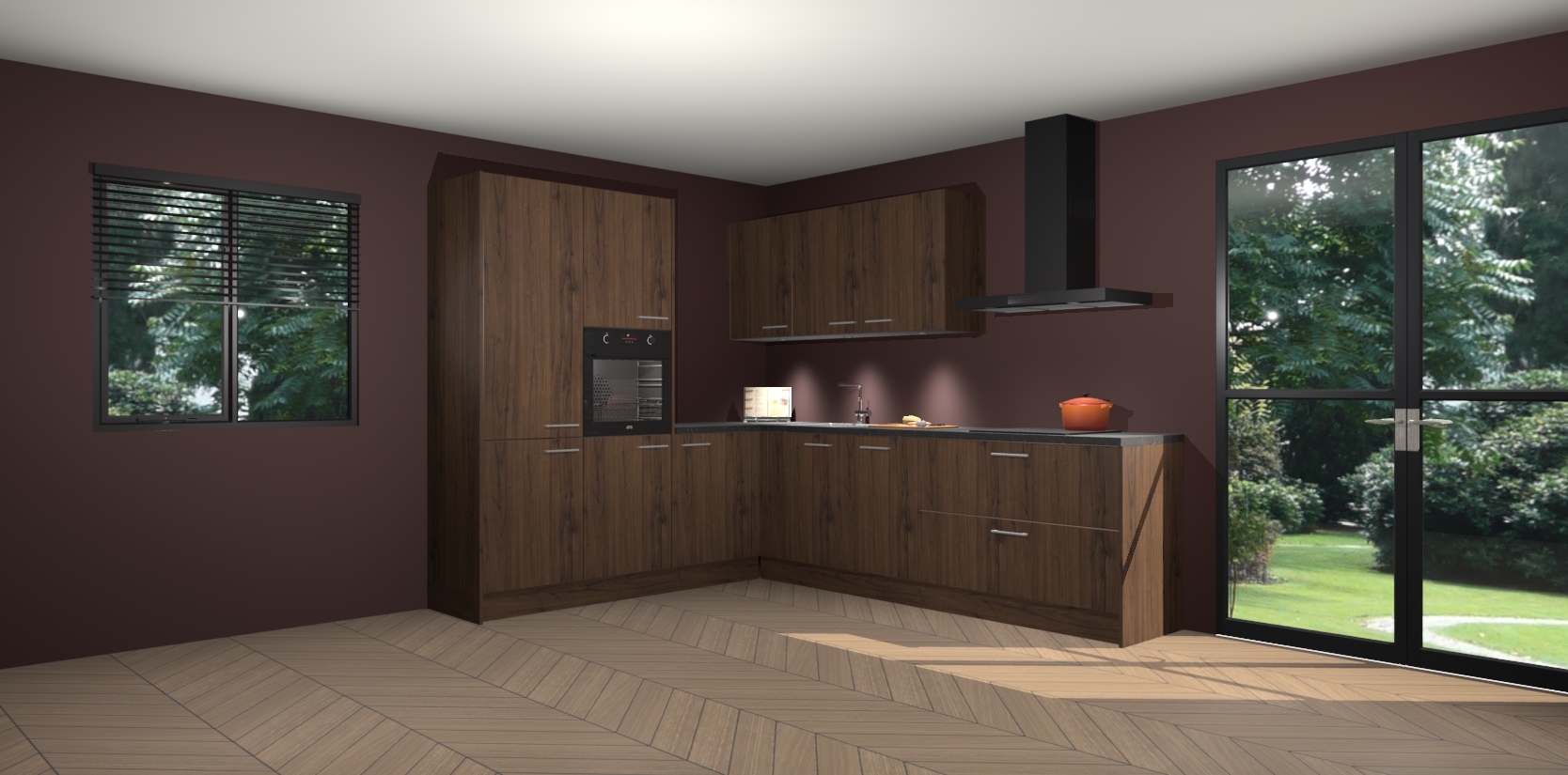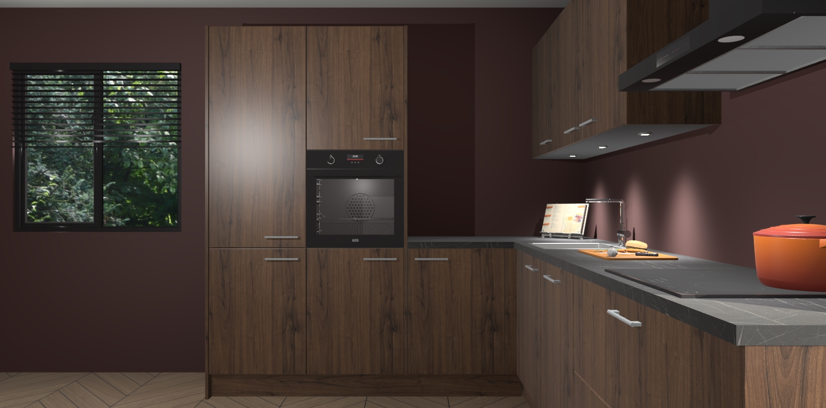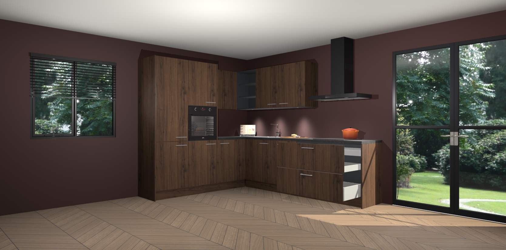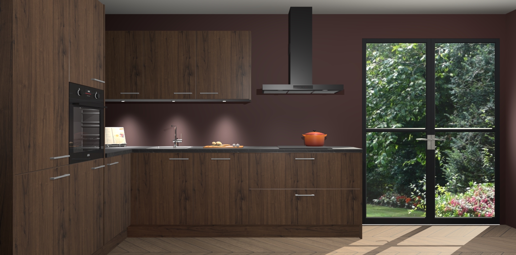 Maak kennis met de noten keuken Parla - de perfecte aanvulling voor uw moderne keuken! Ervaar tijdloos design, elegantie en een chique uitstraling met onze zwarte handgrepen, soft-close deuren en veel opbergruimte. Dit alles wordt aangeboden tegen een vaste lage prijs voor ongeëvenaarde Duitse keukenkwaliteit!