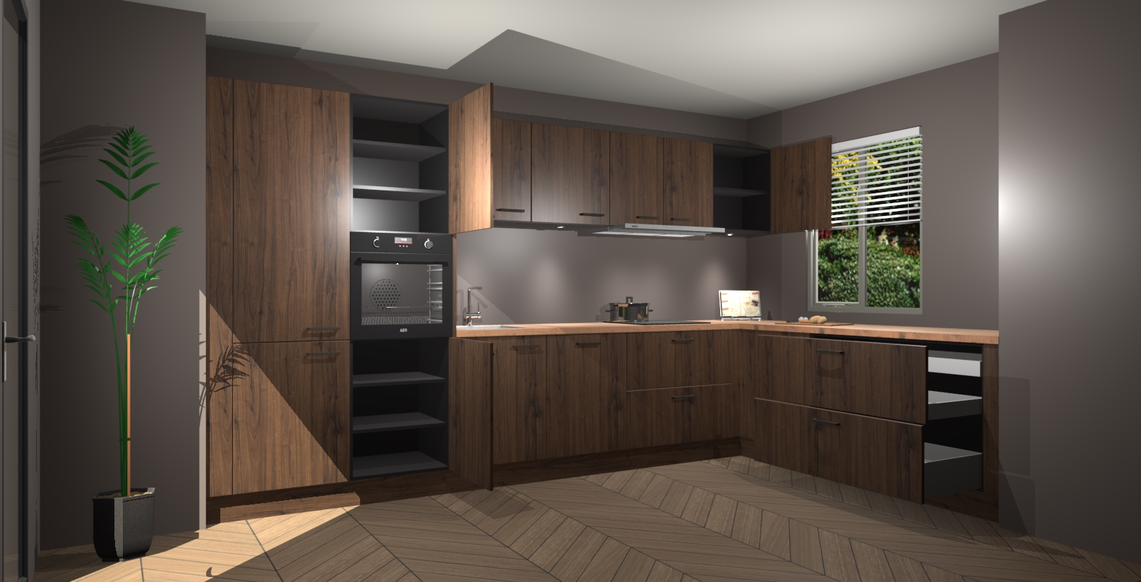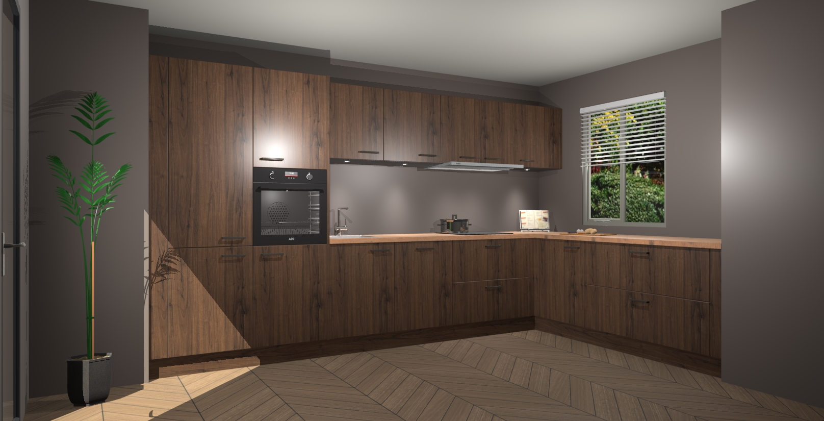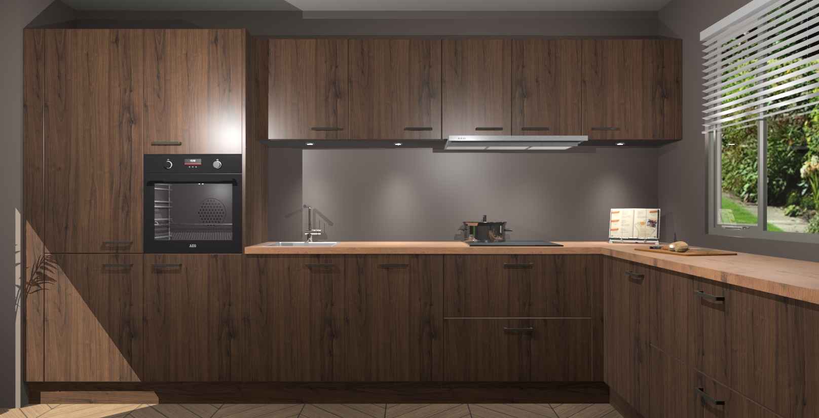 Verwelkom de natuurlijke warmte van de Noten keuken Petten in uw huis. Deze prachtige hoekkeuken met zijn moderne design en warme houten look geeft u meer dan genoeg opbergruimte om uw comfortabel te voelen in uw keuken. Geniet van soft-close deuren die al uw gasten het gevoel zullen geven dat ze zich in een luxueuze ruimte bevinden.