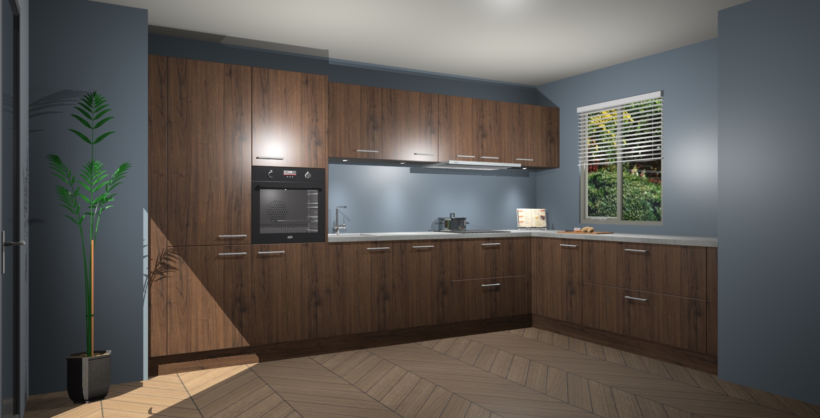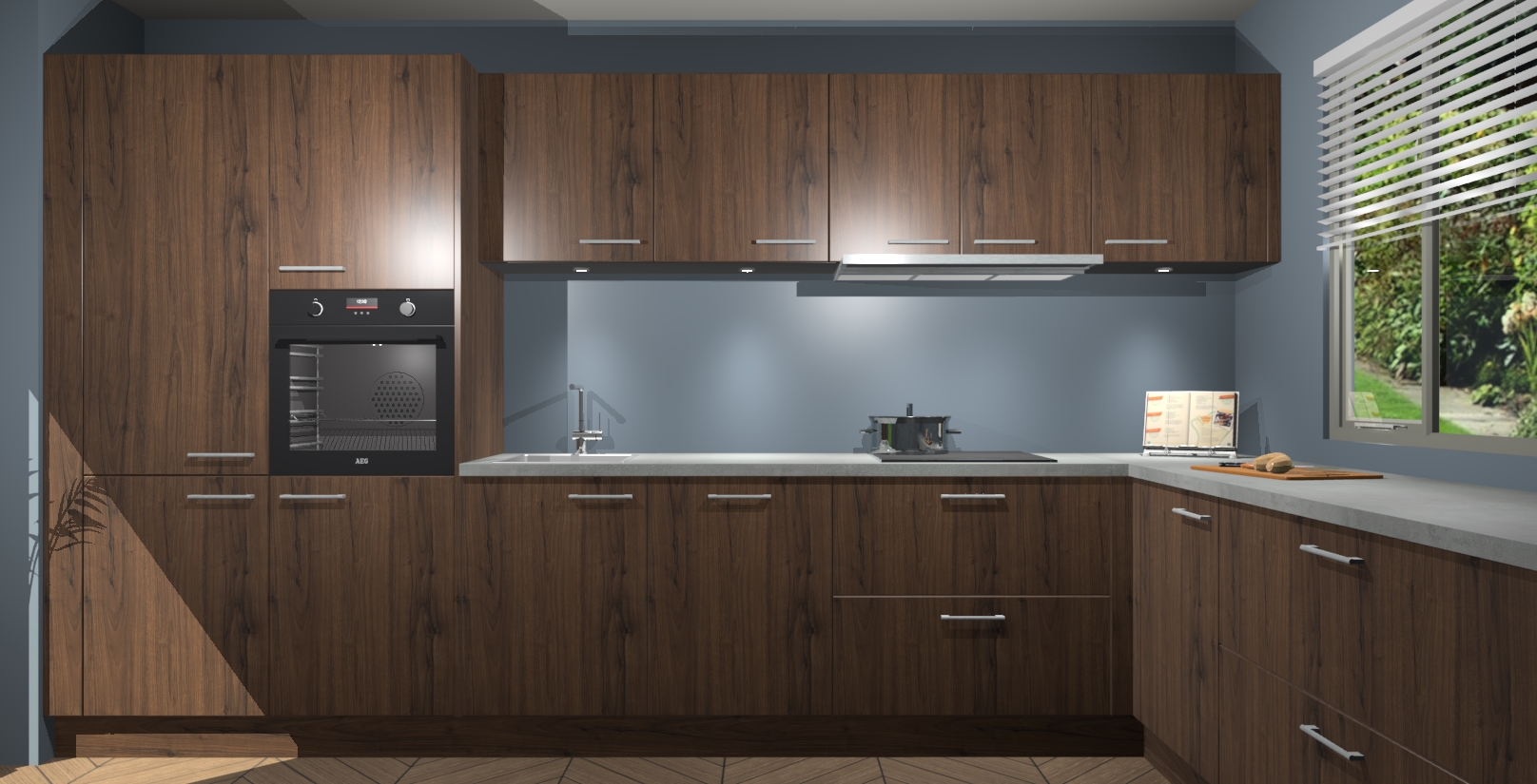 Verwelkom de natuurlijke warmte van de Noten keuken Petten in uw huis. Deze prachtige hoekkeuken met zijn moderne design en warme houten look geeft u meer dan genoeg opbergruimte om uw comfortabel te voelen in uw keuken. Geniet van soft-close deuren die al uw gasten het gevoel zullen geven dat ze zich in een luxueuze ruimte bevinden.