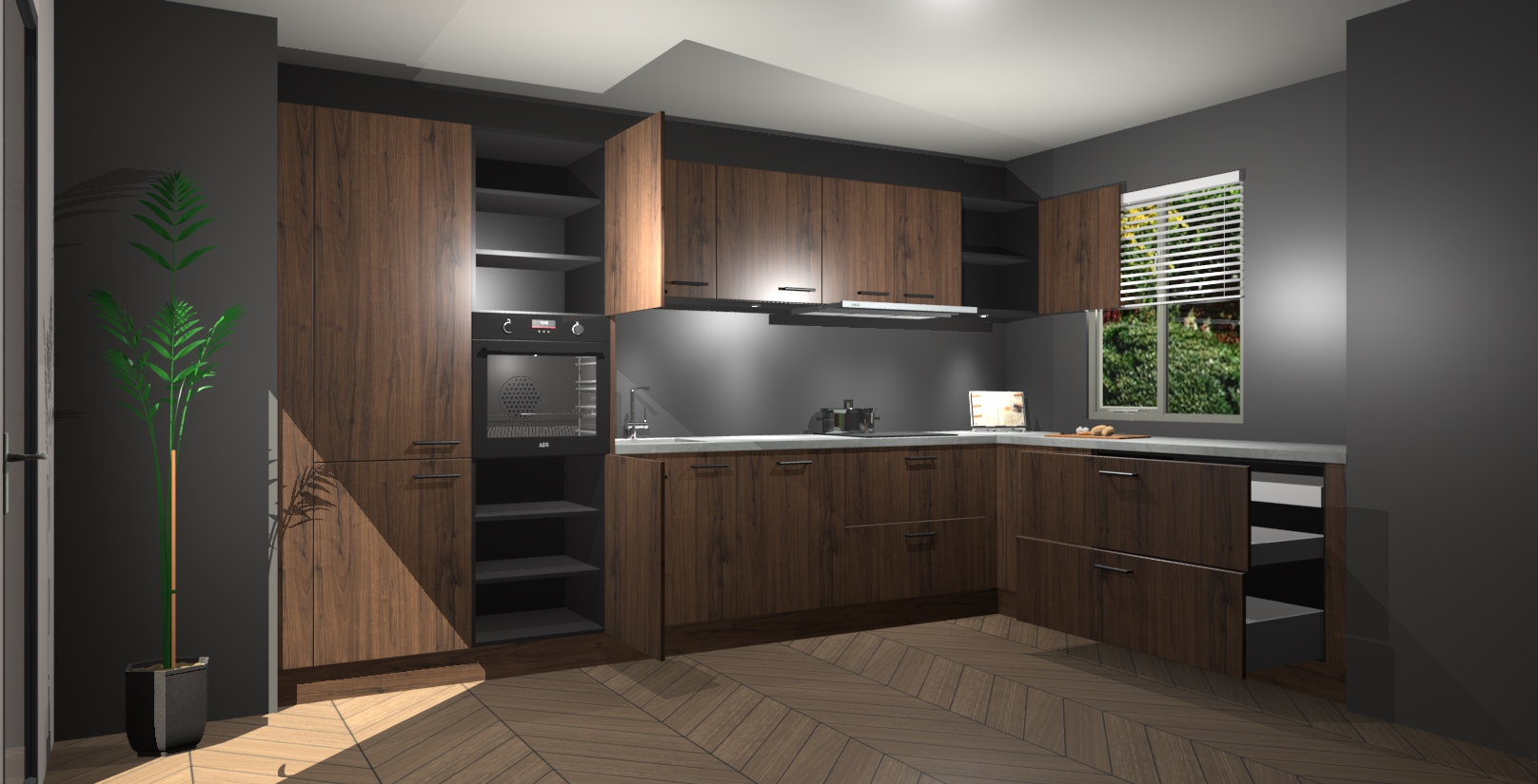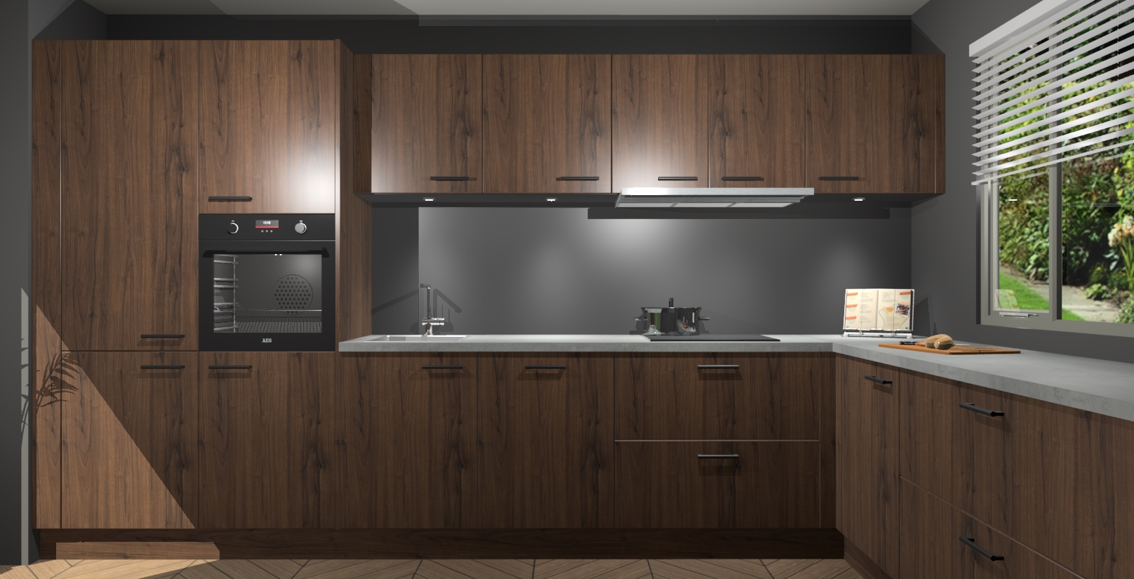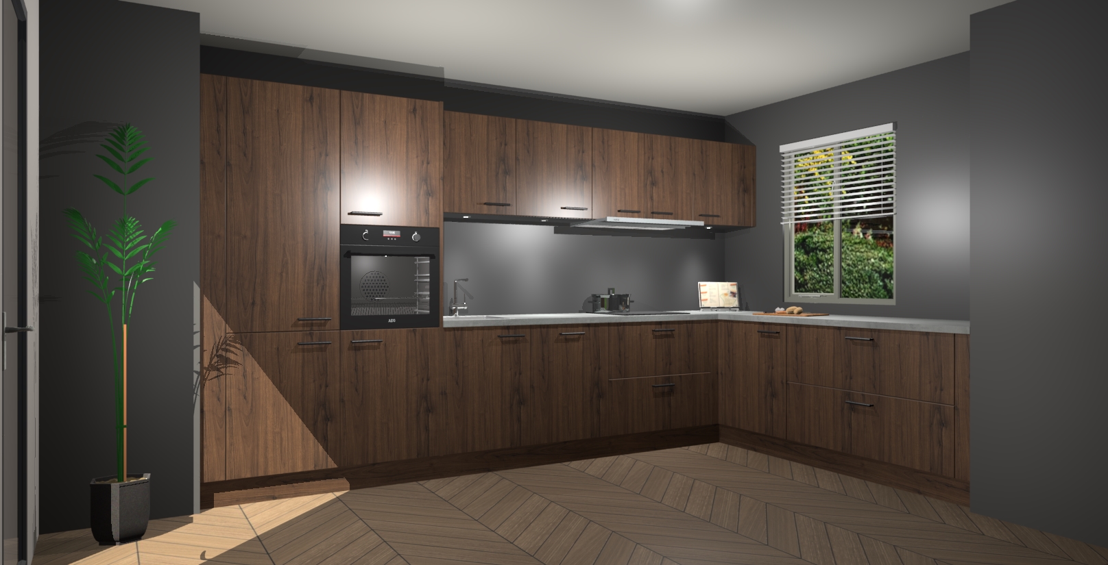 Verwelkom de natuurlijke warmte van de Noten keuken Petten in uw huis. Deze prachtige hoekkeuken met zijn moderne design en warme houten look geeft u meer dan genoeg opbergruimte om uw comfortabel te voelen in uw keuken. Geniet van soft-close deuren die al uw gasten het gevoel zullen geven dat ze zich in een luxueuze ruimte bevinden.