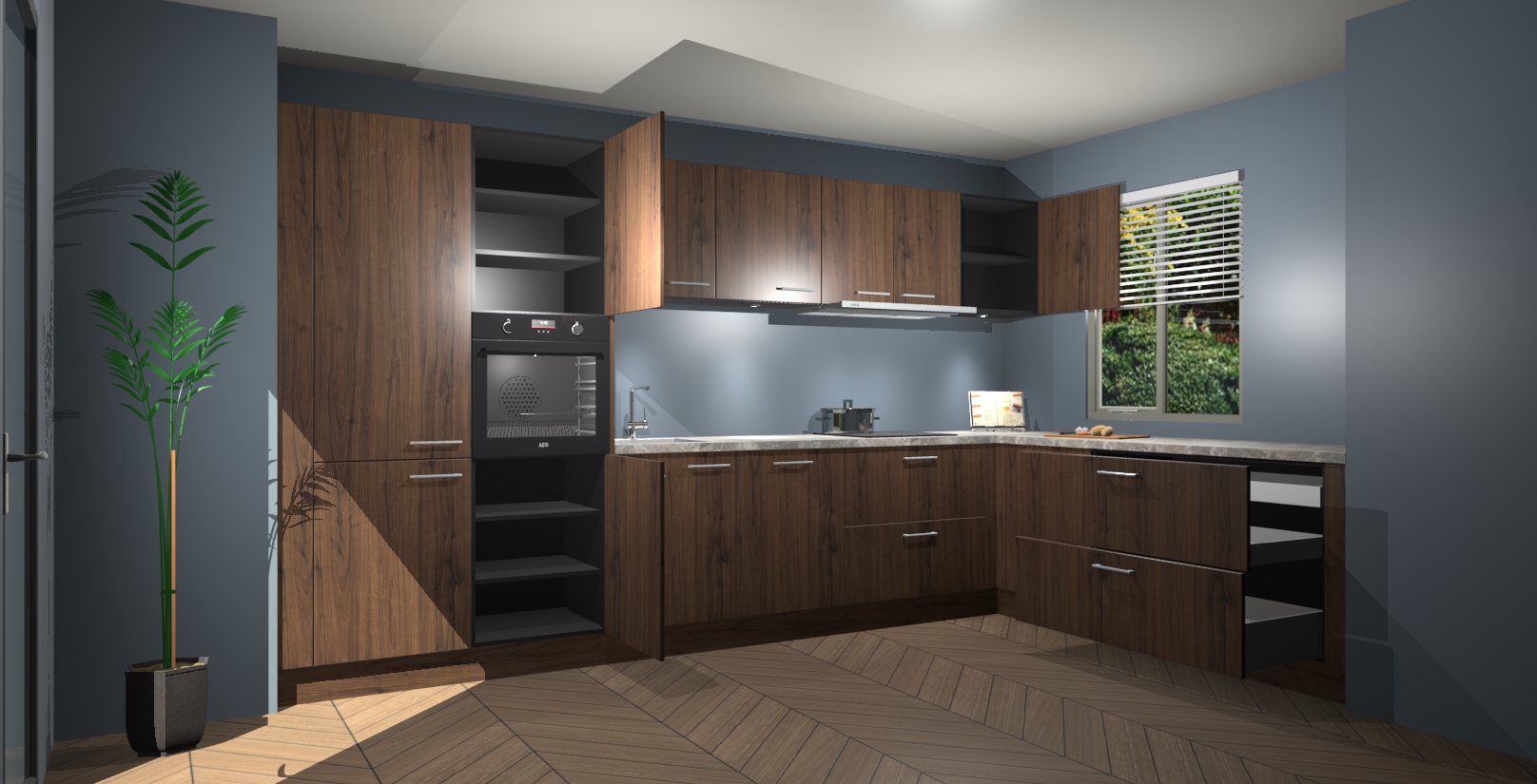 Verwelkom de natuurlijke warmte van de Noten keuken Petten in uw huis. Deze prachtige hoekkeuken met zijn moderne design en warme houten look geeft u meer dan genoeg opbergruimte om uw comfortabel te voelen in uw keuken. Geniet van soft-close deuren die al uw gasten het gevoel zullen geven dat ze zich in een luxueuze ruimte bevinden.