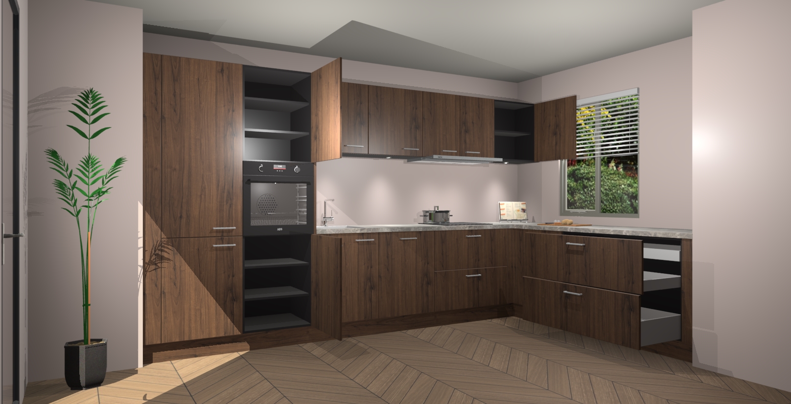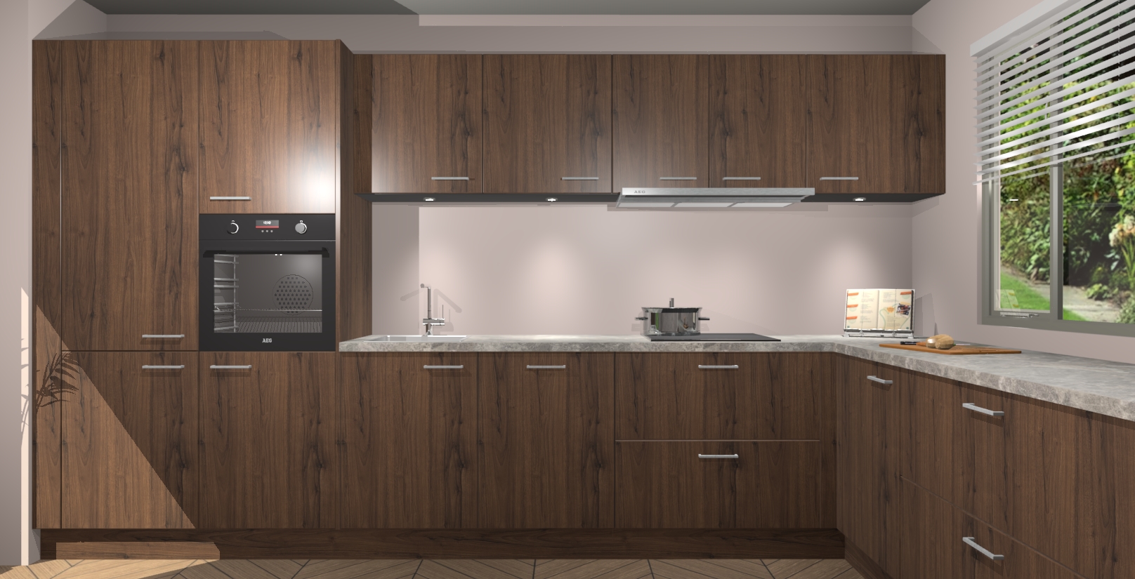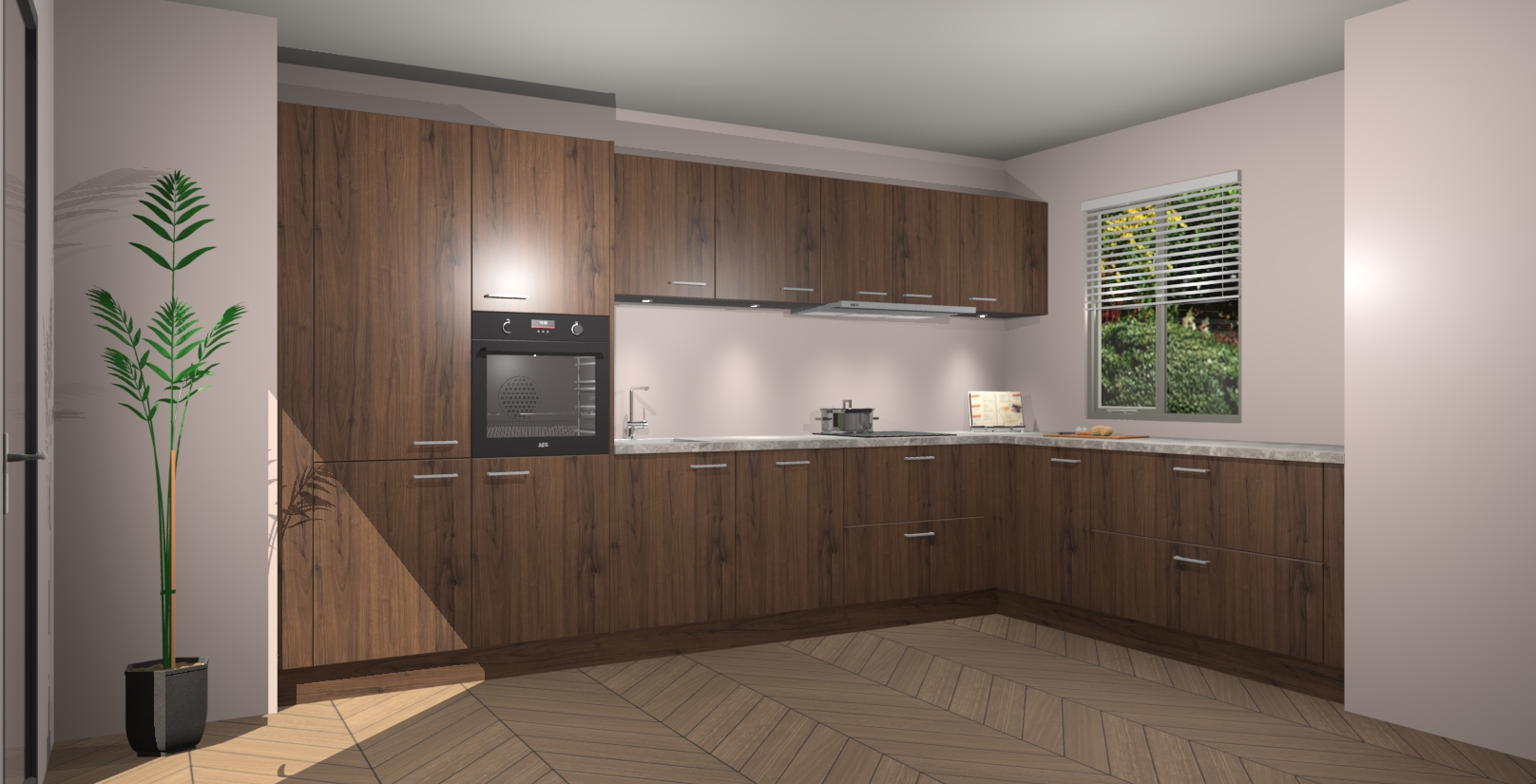 Verwelkom de natuurlijke warmte van de Noten keuken Petten in uw huis. Deze prachtige hoekkeuken met zijn moderne design en warme houten look geeft u meer dan genoeg opbergruimte om uw comfortabel te voelen in uw keuken. Geniet van soft-close deuren die al uw gasten het gevoel zullen geven dat ze zich in een luxueuze ruimte bevinden.