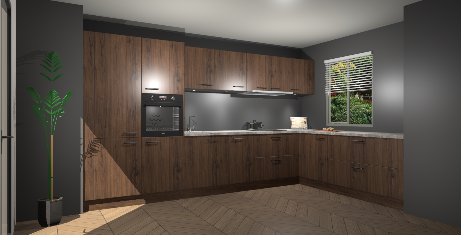 Verwelkom de natuurlijke warmte van de Noten keuken Petten in uw huis. Deze prachtige hoekkeuken met zijn moderne design en warme houten look geeft u meer dan genoeg opbergruimte om uw comfortabel te voelen in uw keuken. Geniet van soft-close deuren die al uw gasten het gevoel zullen geven dat ze zich in een luxueuze ruimte bevinden.