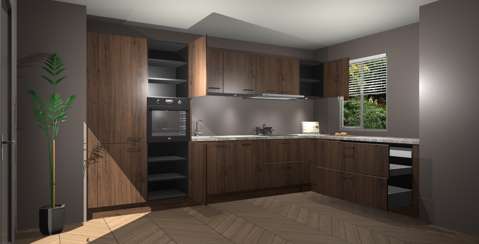 Inclusief plinten, stelpoten en werkblad