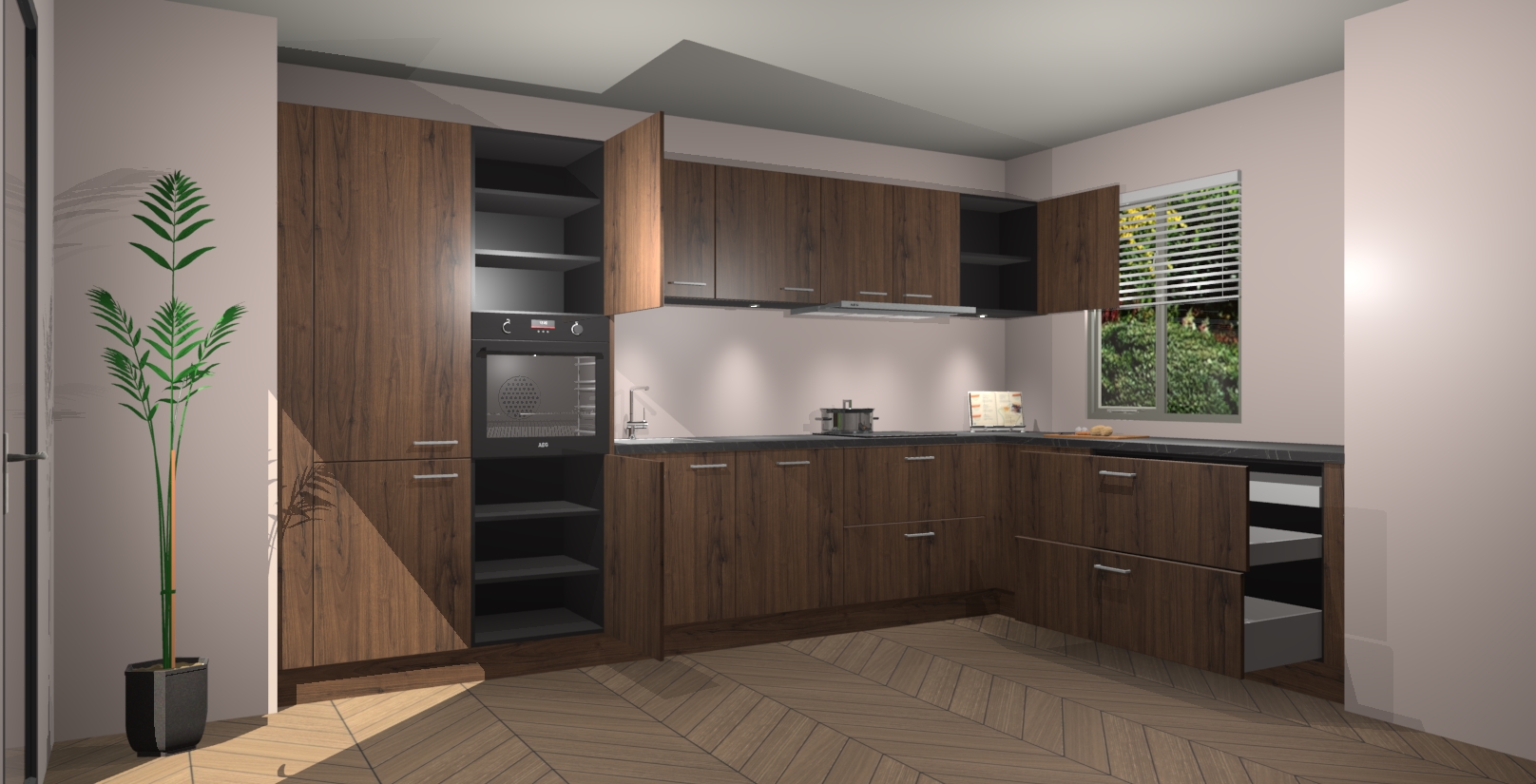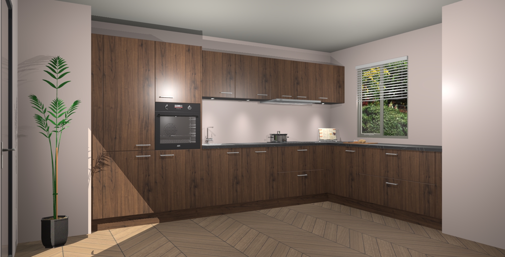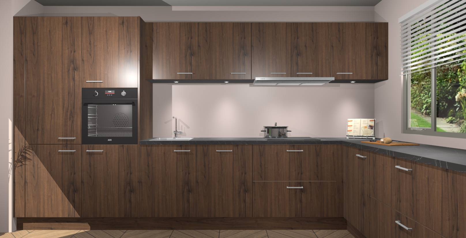 Verwelkom de natuurlijke warmte van de Noten keuken Petten in uw huis. Deze prachtige hoekkeuken met zijn moderne design en warme houten look geeft u meer dan genoeg opbergruimte om uw comfortabel te voelen in uw keuken. Geniet van soft-close deuren die al uw gasten het gevoel zullen geven dat ze zich in een luxueuze ruimte bevinden.