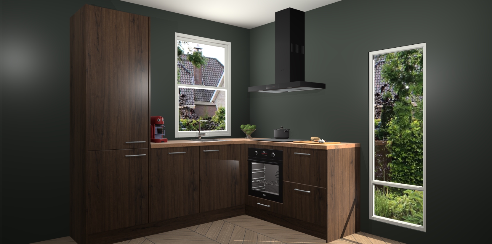 De prachtige Noten keuken Phuket is de perfecte keuze als u op zoek bent naar een moderne hoekkeuken met alle luxe en comfort die u kunt verwachten! De uitstraling in het houtlook-design draagt bij aan de warme sfeer die u nu al voelt wanneer u er naar kijkt. Heeft u genoeg van ouderwetse keukens? Probeer dan direct deze moderne, mooie hoekkeukens en laat iedereen verbluft achter!