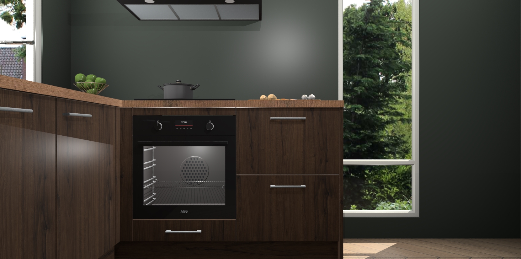 De Noten keuken Phuket heeft alles wat u maar kunt wensen. Niet alleen zijn er softclose deuren, maar ook 5 ingebouwde apparaten: een oven, inductiekookplaat, afzuigkap, vaatwasser en koelkast - waarbij u later gemakkelijk naar het AEG merk, van inductiekookplaat naar kookplaat met geïntegreerde afzuiging of van oven naar combimagnetron kunt upgraden. Dat alles tegen een vast laag tarief! Bovendien geeft de Noten keuken Phuket supersnelle levering van 7 weken. Echt iets voor u als u er niet op wilt wachten om het resultaat te zien in eigen keuken!