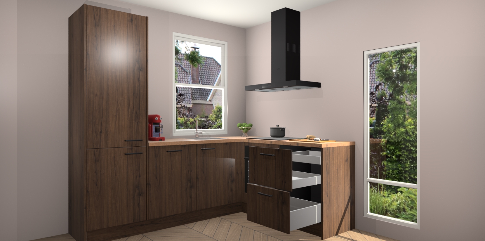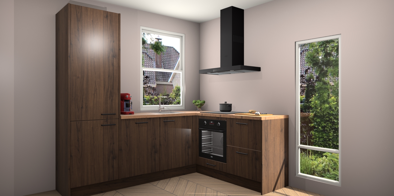 De prachtige Noten keuken Phuket is de perfecte keuze als u op zoek bent naar een moderne hoekkeuken met alle luxe en comfort die u kunt verwachten! De uitstraling in het houtlook-design draagt bij aan de warme sfeer die u nu al voelt wanneer u er naar kijkt. Heeft u genoeg van ouderwetse keukens? Probeer dan direct deze moderne, mooie hoekkeukens en laat iedereen verbluft achter!