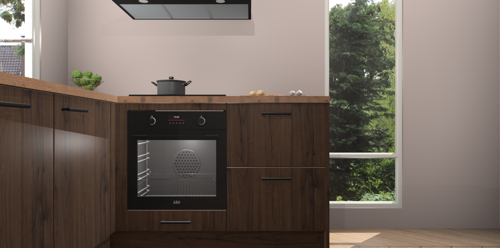 De Noten keuken Phuket heeft alles wat u maar kunt wensen. Niet alleen zijn er softclose deuren, maar ook 5 ingebouwde apparaten: een oven, inductiekookplaat, afzuigkap, vaatwasser en koelkast - waarbij u later gemakkelijk naar het AEG merk, van inductiekookplaat naar kookplaat met geïntegreerde afzuiging of van oven naar combimagnetron kunt upgraden. Dat alles tegen een vast laag tarief! Bovendien geeft de Noten keuken Phuket supersnelle levering van 7 weken. Echt iets voor u als u er niet op wilt wachten om het resultaat te zien in eigen keuken!