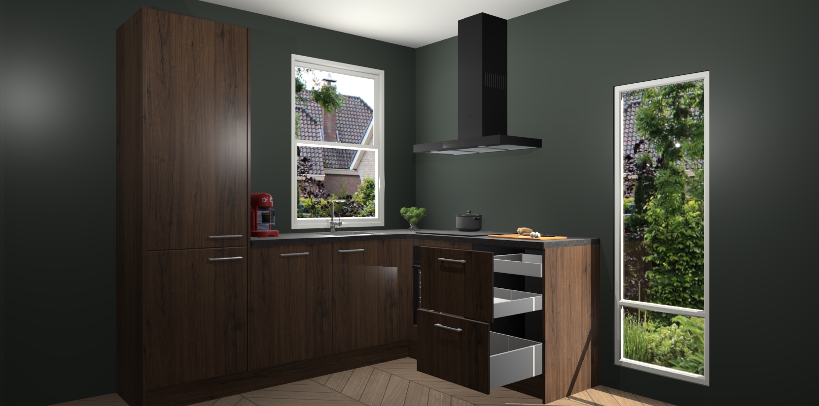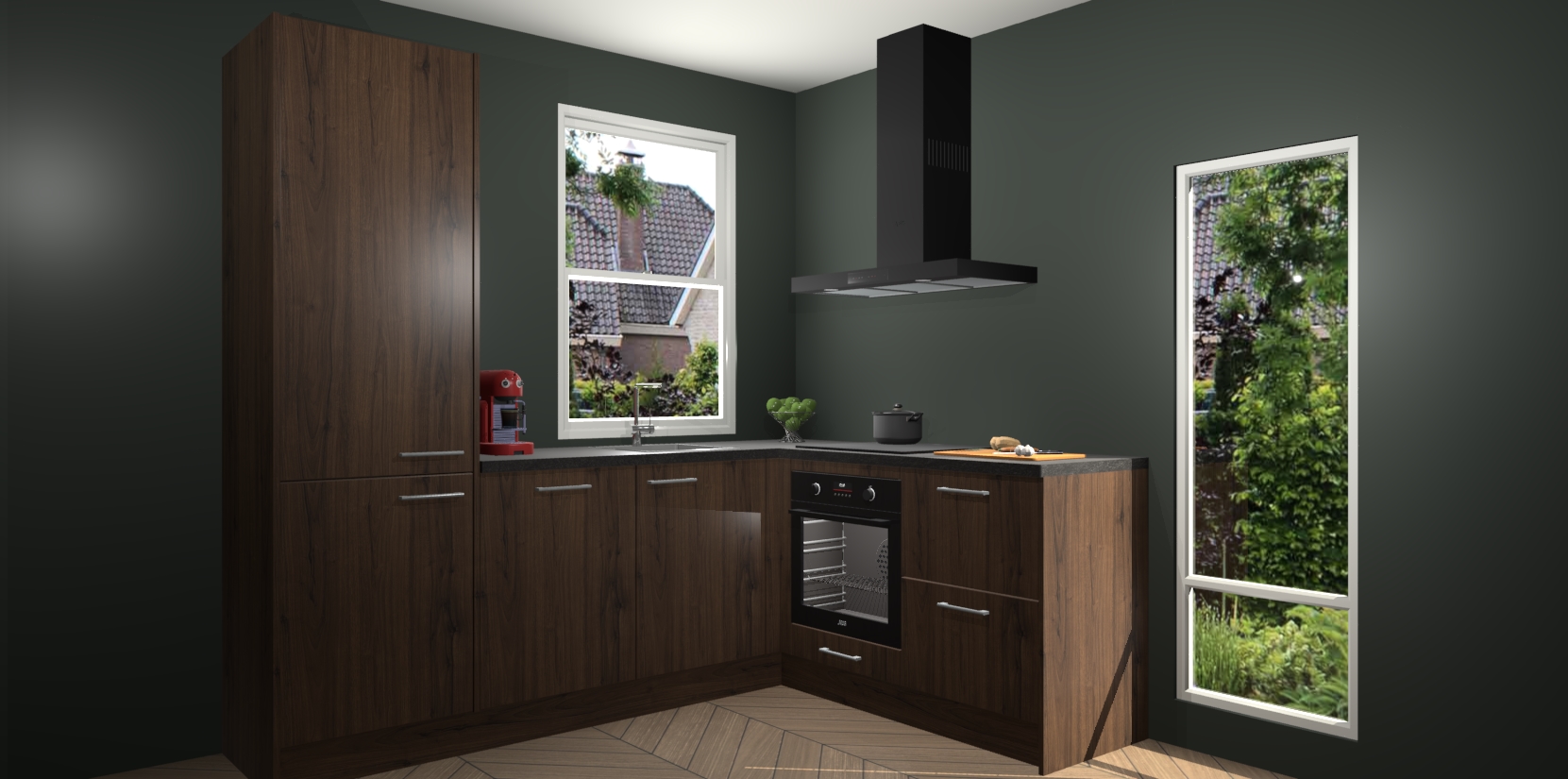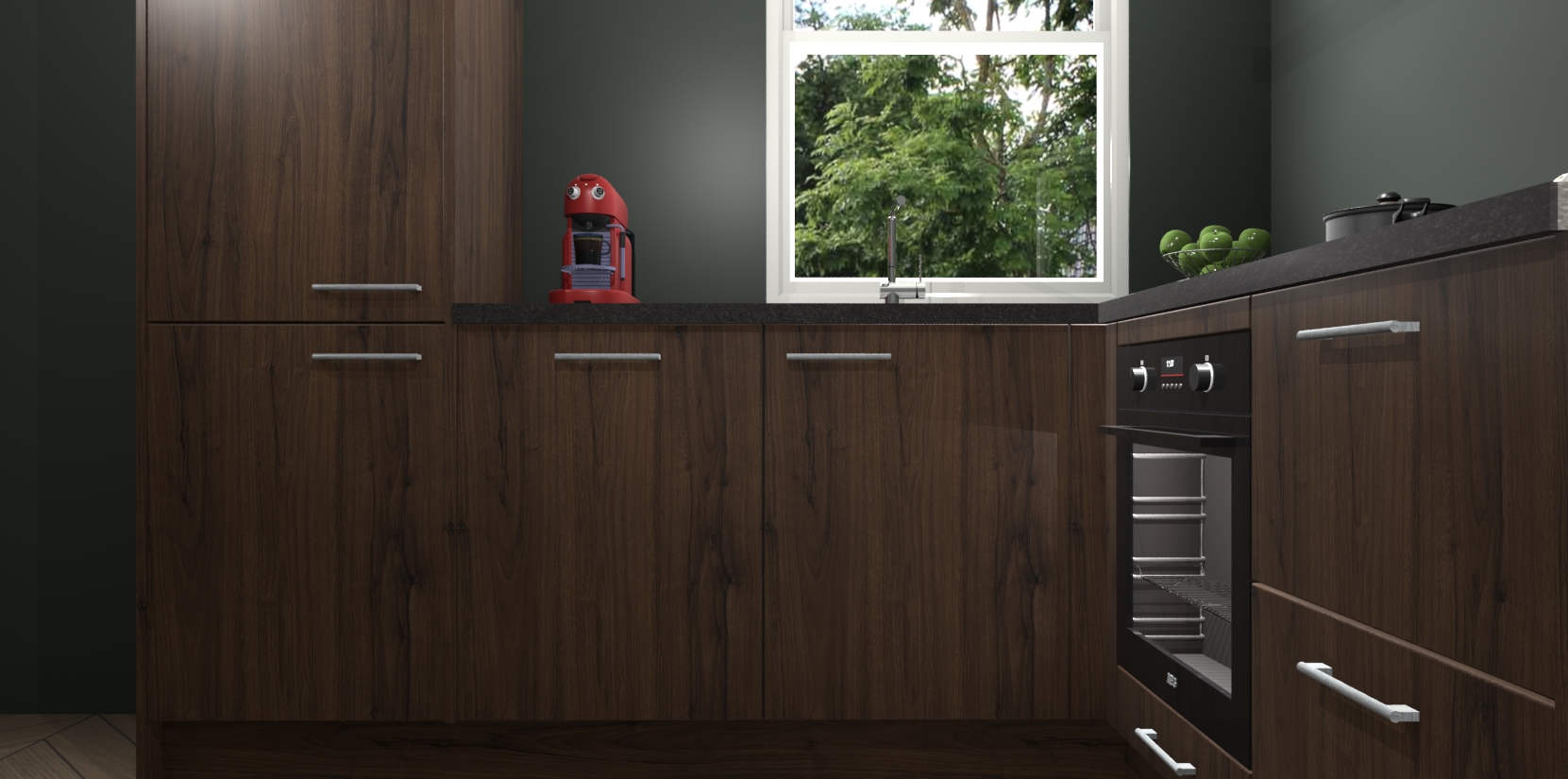 De prachtige Noten keuken Phuket is de perfecte keuze als u op zoek bent naar een moderne hoekkeuken met alle luxe en comfort die u kunt verwachten! De uitstraling in het houtlook-design draagt bij aan de warme sfeer die u nu al voelt wanneer u er naar kijkt. Heeft u genoeg van ouderwetse keukens? Probeer dan direct deze moderne, mooie hoekkeukens en laat iedereen verbluft achter!