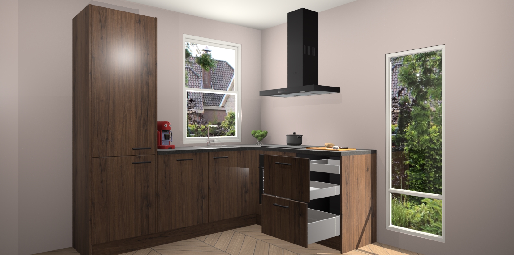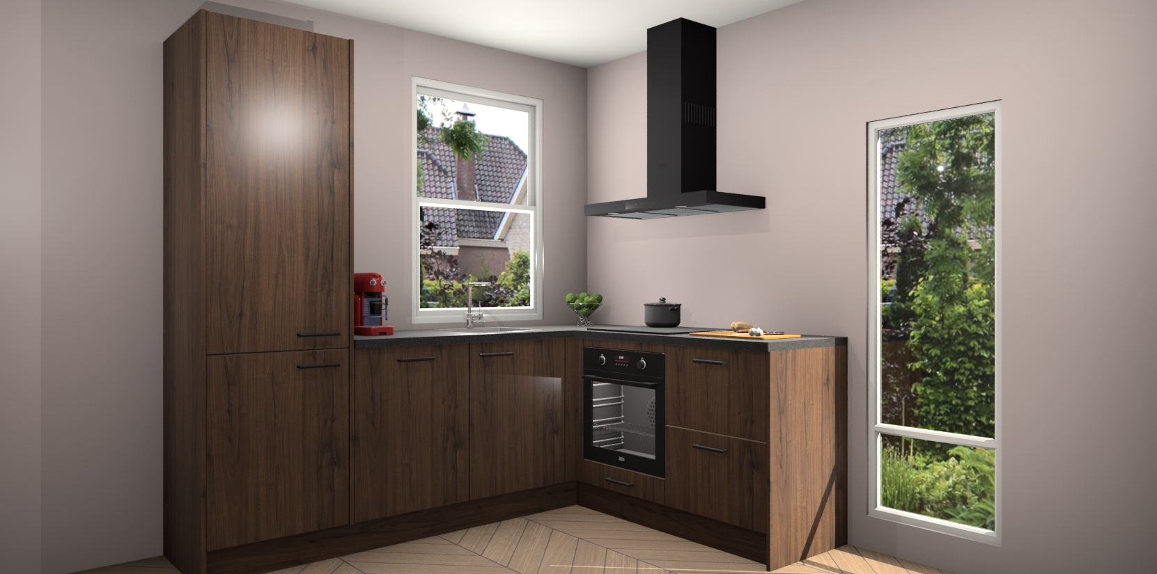 De prachtige Noten keuken Phuket is de perfecte keuze als u op zoek bent naar een moderne hoekkeuken met alle luxe en comfort die u kunt verwachten! De uitstraling in het houtlook-design draagt bij aan de warme sfeer die u nu al voelt wanneer u er naar kijkt. Heeft u genoeg van ouderwetse keukens? Probeer dan direct deze moderne, mooie hoekkeukens en laat iedereen verbluft achter!