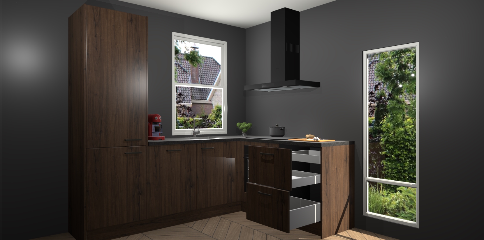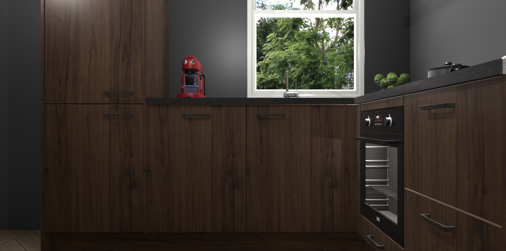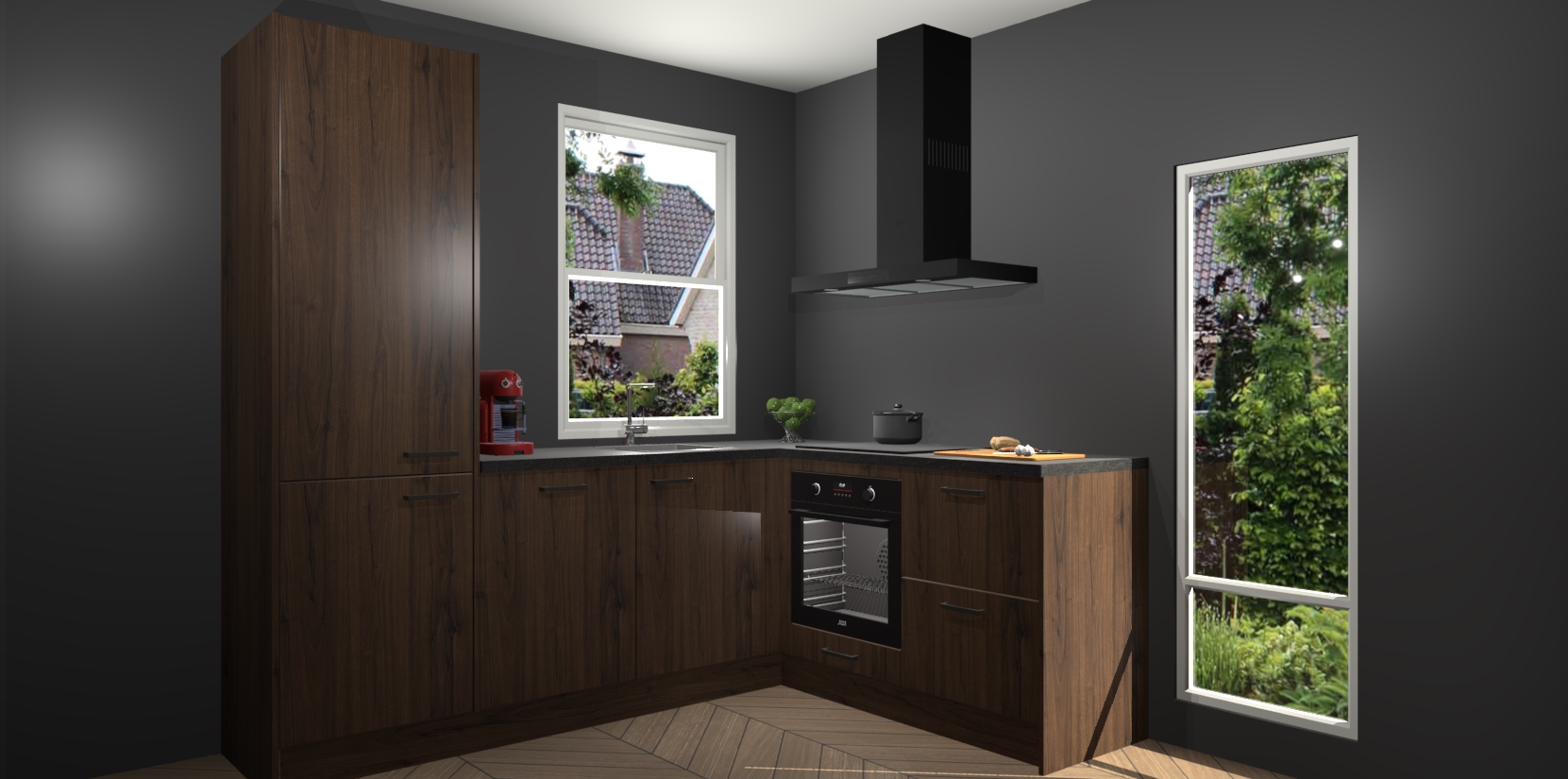 De prachtige Noten keuken Phuket is de perfecte keuze als u op zoek bent naar een moderne hoekkeuken met alle luxe en comfort die u kunt verwachten! De uitstraling in het houtlook-design draagt bij aan de warme sfeer die u nu al voelt wanneer u er naar kijkt. Heeft u genoeg van ouderwetse keukens? Probeer dan direct deze moderne, mooie hoekkeukens en laat iedereen verbluft achter!