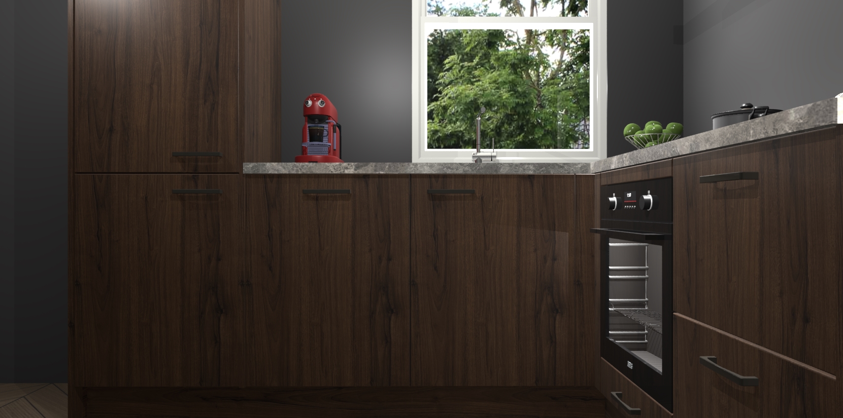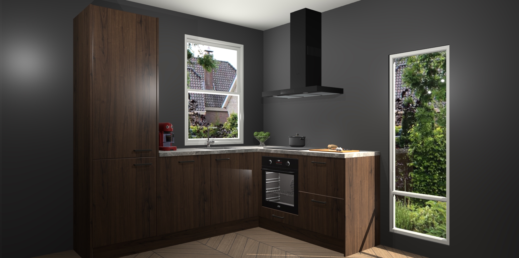 De prachtige Noten keuken Phuket is de perfecte keuze als u op zoek bent naar een moderne hoekkeuken met alle luxe en comfort die u kunt verwachten! De uitstraling in het houtlook-design draagt bij aan de warme sfeer die u nu al voelt wanneer u er naar kijkt. Heeft u genoeg van ouderwetse keukens? Probeer dan direct deze moderne, mooie hoekkeukens en laat iedereen verbluft achter!
