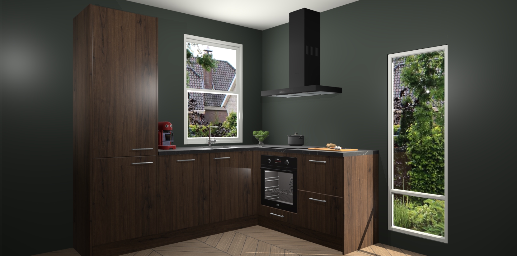 De prachtige Noten keuken Phuket is de perfecte keuze als u op zoek bent naar een moderne hoekkeuken met alle luxe en comfort die u kunt verwachten! De uitstraling in het houtlook-design draagt bij aan de warme sfeer die u nu al voelt wanneer u er naar kijkt. Heeft u genoeg van ouderwetse keukens? Probeer dan direct deze moderne, mooie hoekkeukens en laat iedereen verbluft achter!