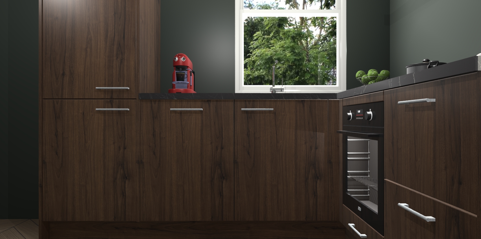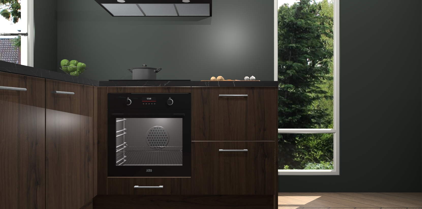 De Noten keuken Phuket heeft alles wat u maar kunt wensen. Niet alleen zijn er softclose deuren, maar ook 5 ingebouwde apparaten: een oven, inductiekookplaat, afzuigkap, vaatwasser en koelkast - waarbij u later gemakkelijk naar het AEG merk, van inductiekookplaat naar kookplaat met geïntegreerde afzuiging of van oven naar combimagnetron kunt upgraden. Dat alles tegen een vast laag tarief! Bovendien geeft de Noten keuken Phuket supersnelle levering van 7 weken. Echt iets voor u als u er niet op wilt wachten om het resultaat te zien in eigen keuken!