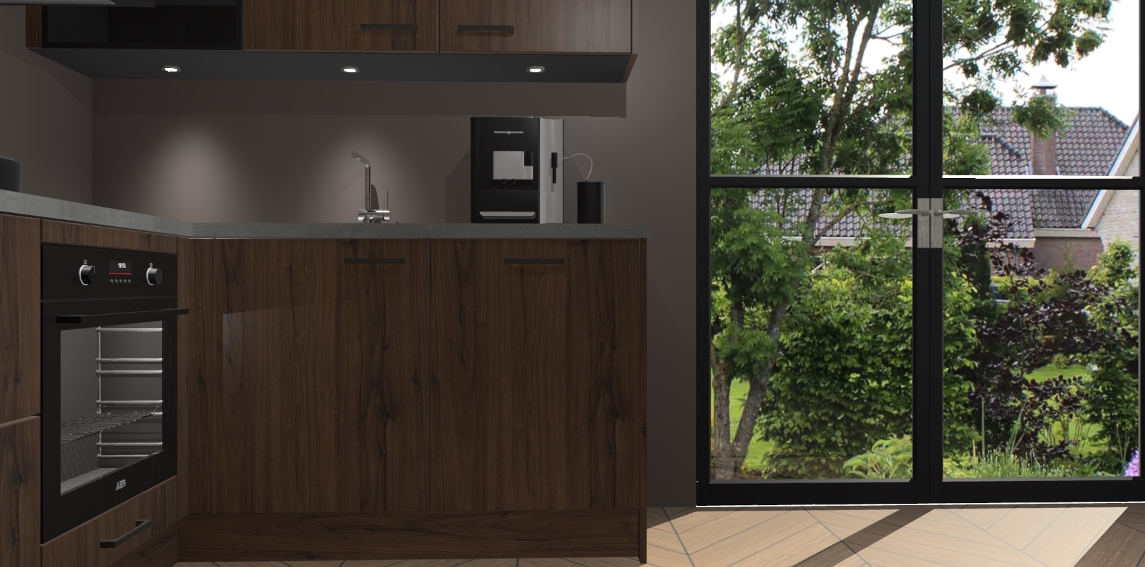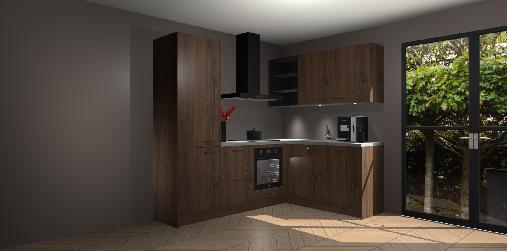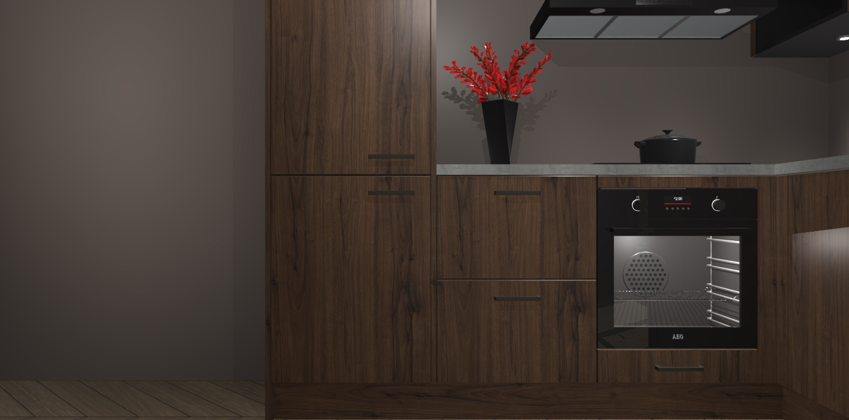 Wauw, dit is de Noten keuken Pilsen! U kunt gerust zeggen dat u elegantie combineert met functionaliteit met deze keuken. Met een modern en chique ontwerp is de keuken precies wat u nodig heeft om uw ruimte te verfraaien. De binnenzijde van de kasten is in dezelfde donkere kleur als de buitenzijde voor een uniforme look, compleet met softclose-kasten die stil sluiten.