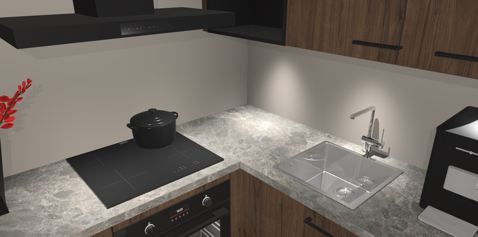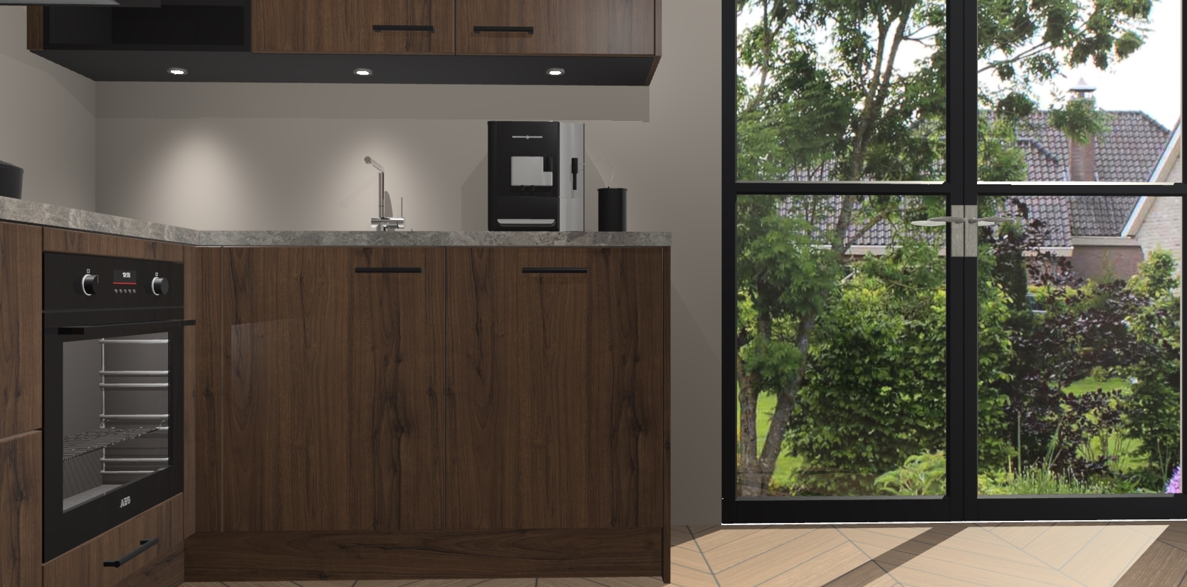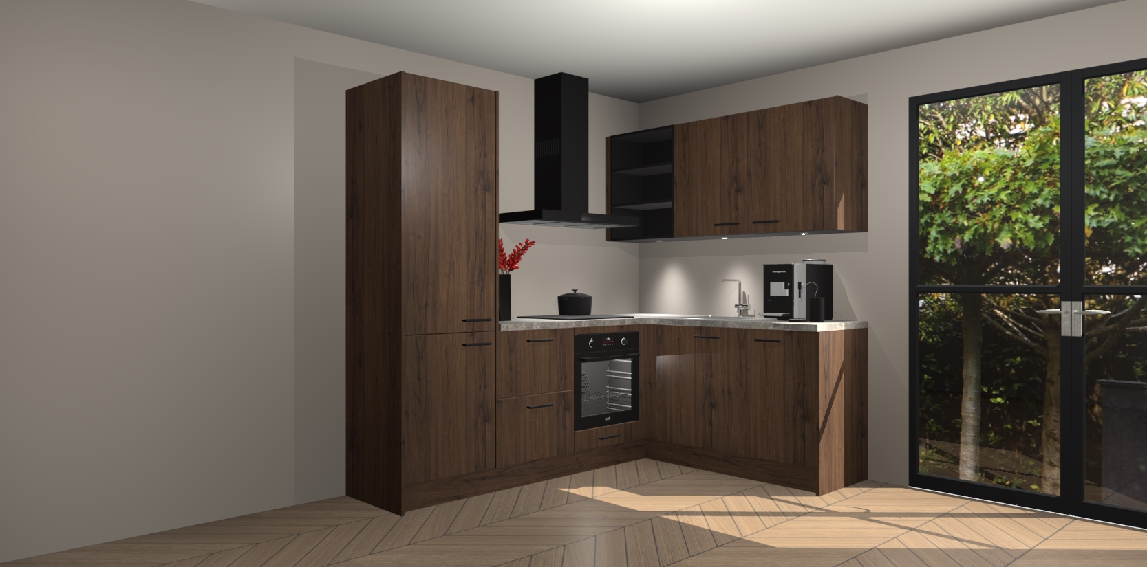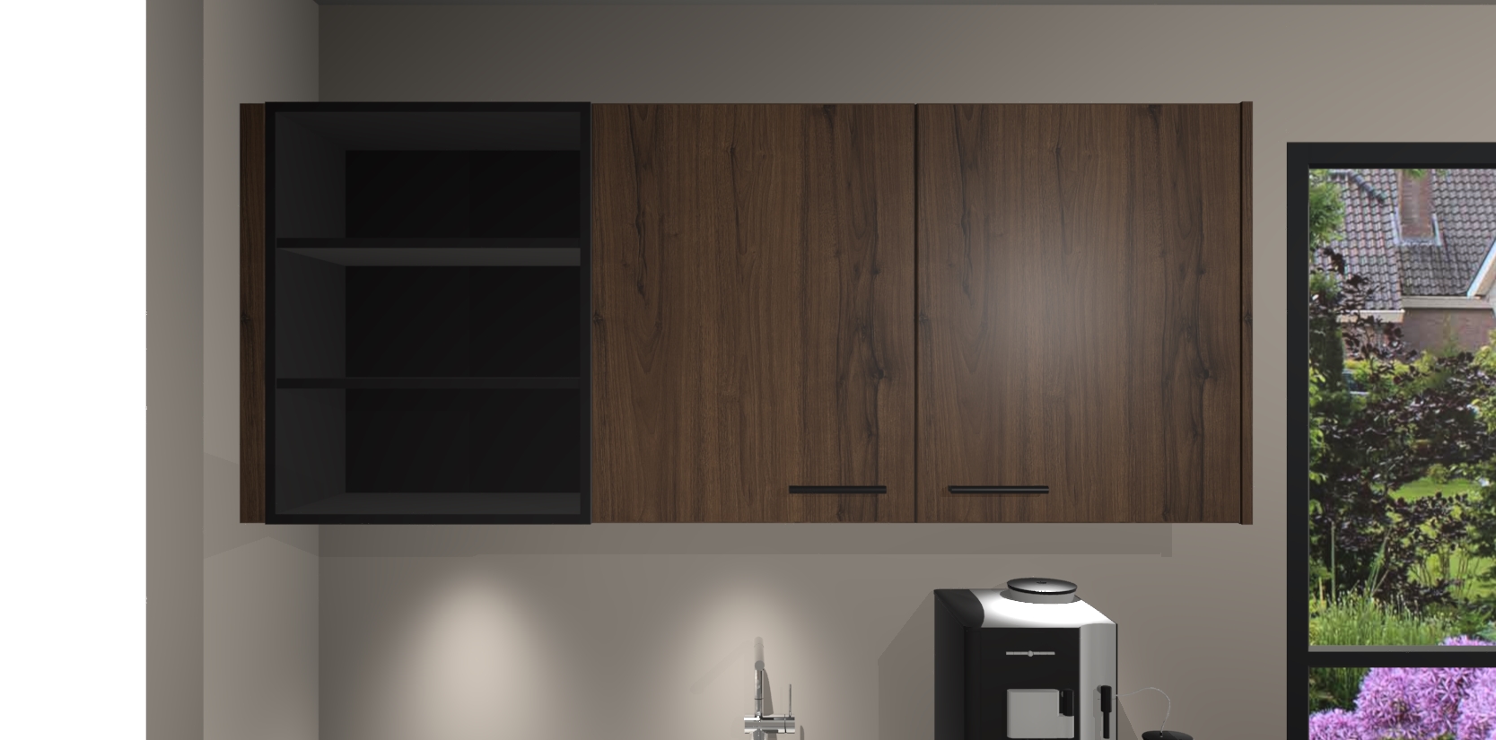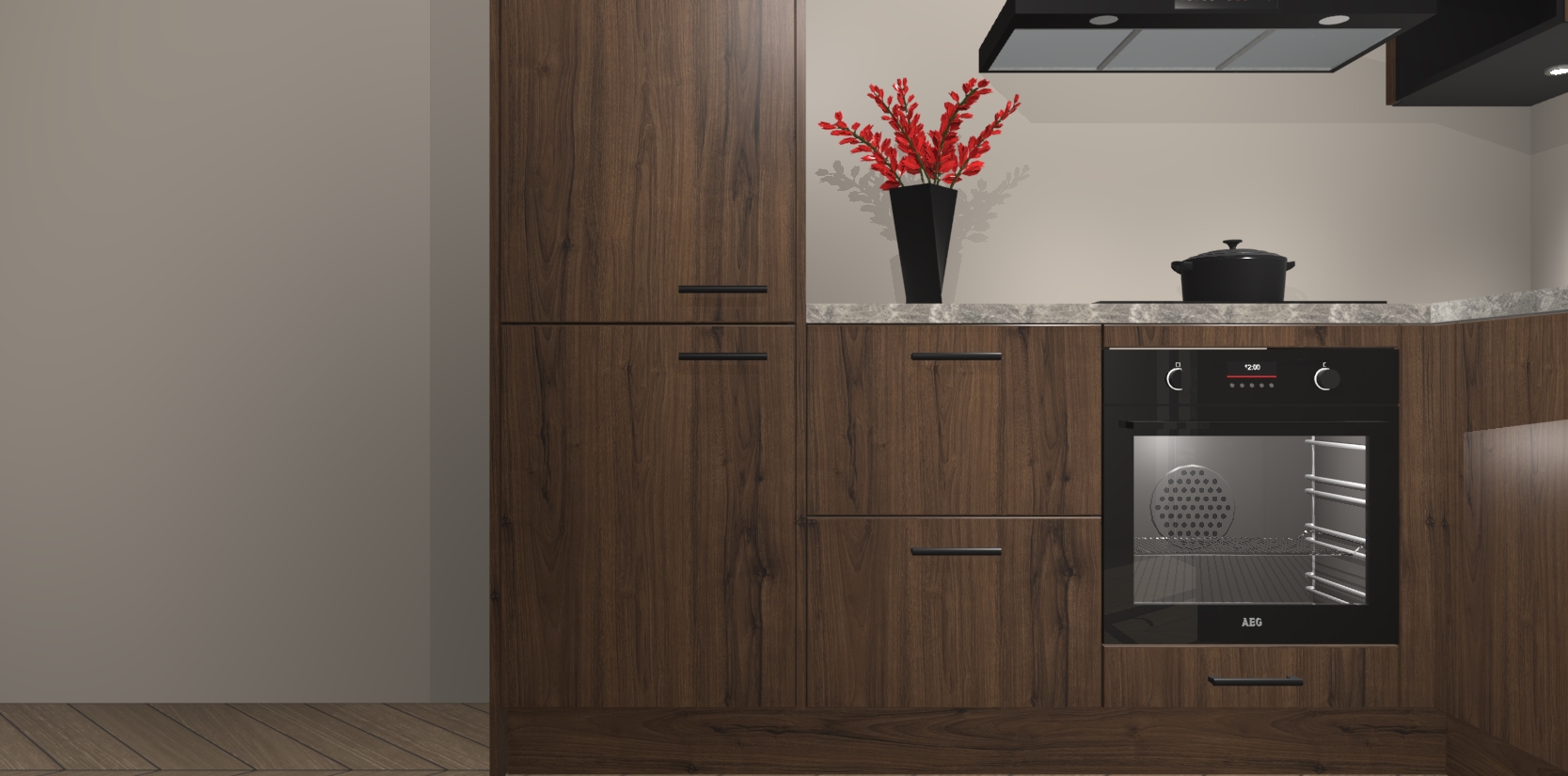 Wauw, dit is de Noten keuken Pilsen! U kunt gerust zeggen dat u elegantie combineert met functionaliteit met deze keuken. Met een modern en chique ontwerp is de keuken precies wat u nodig heeft om uw ruimte te verfraaien. De binnenzijde van de kasten is in dezelfde donkere kleur als de buitenzijde voor een uniforme look, compleet met softclose-kasten die stil sluiten.