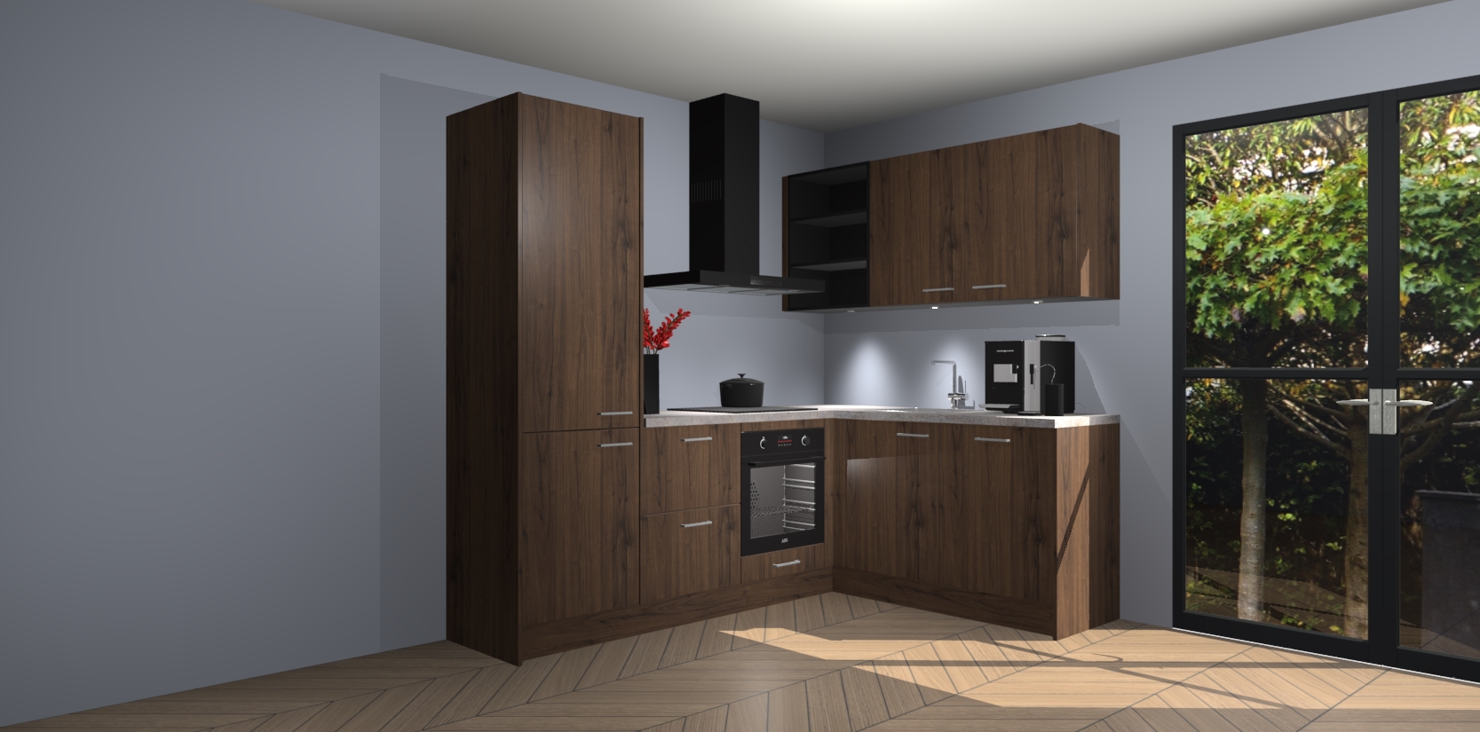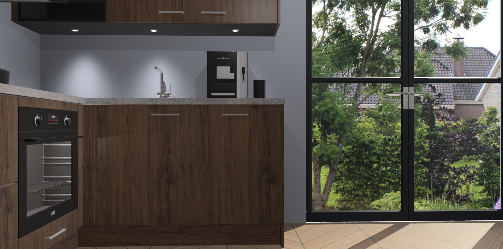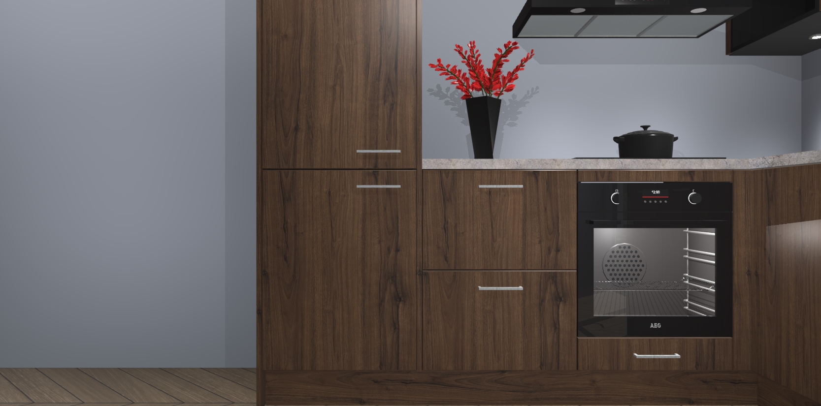 Wauw, dit is de Noten keuken Pilsen! U kunt gerust zeggen dat u elegantie combineert met functionaliteit met deze keuken. Met een modern en chique ontwerp is de keuken precies wat u nodig heeft om uw ruimte te verfraaien. De binnenzijde van de kasten is in dezelfde donkere kleur als de buitenzijde voor een uniforme look, compleet met softclose-kasten die stil sluiten.