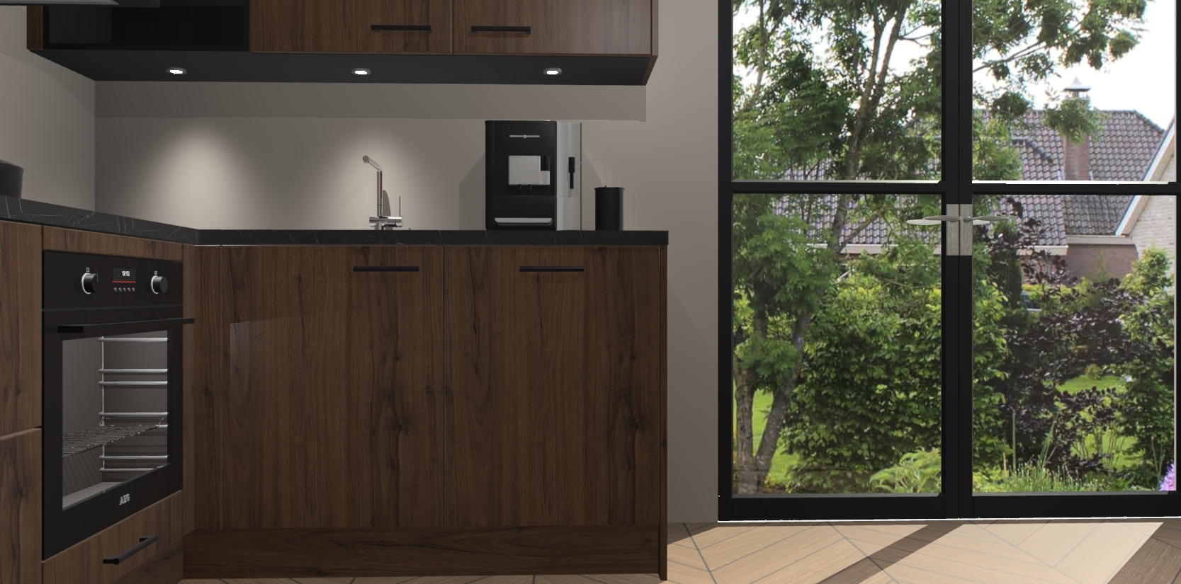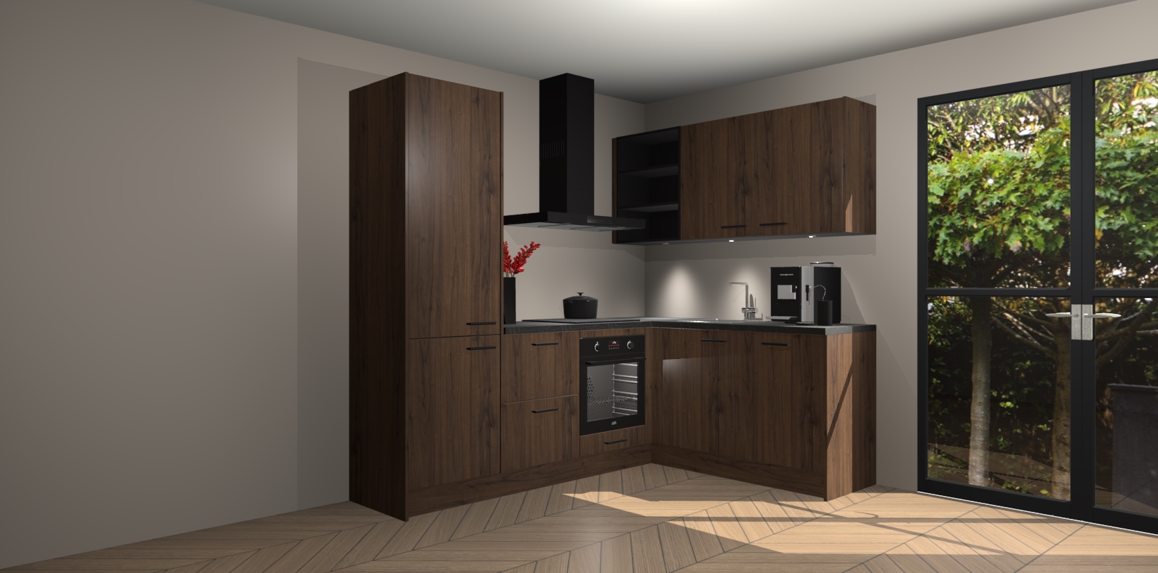 Wauw, dit is de Noten keuken Pilsen! U kunt gerust zeggen dat u elegantie combineert met functionaliteit met deze keuken. Met een modern en chique ontwerp is de keuken precies wat u nodig heeft om uw ruimte te verfraaien. De binnenzijde van de kasten is in dezelfde donkere kleur als de buitenzijde voor een uniforme look, compleet met softclose-kasten die stil sluiten.