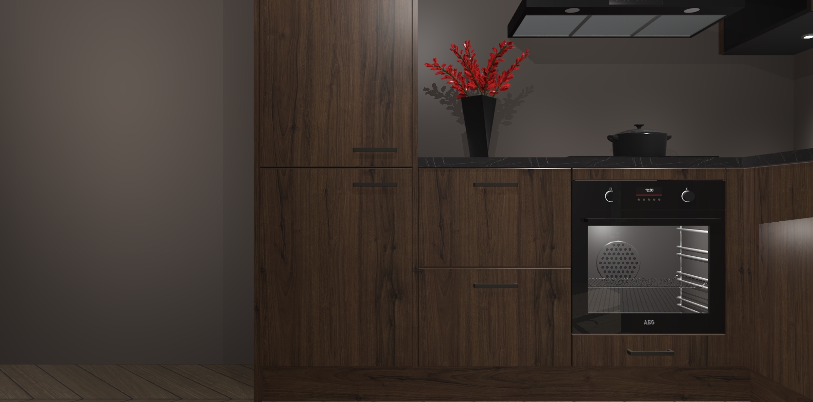 Wauw, dit is de Noten keuken Pilsen! U kunt gerust zeggen dat u elegantie combineert met functionaliteit met deze keuken. Met een modern en chique ontwerp is de keuken precies wat u nodig heeft om uw ruimte te verfraaien. De binnenzijde van de kasten is in dezelfde donkere kleur als de buitenzijde voor een uniforme look, compleet met softclose-kasten die stil sluiten.