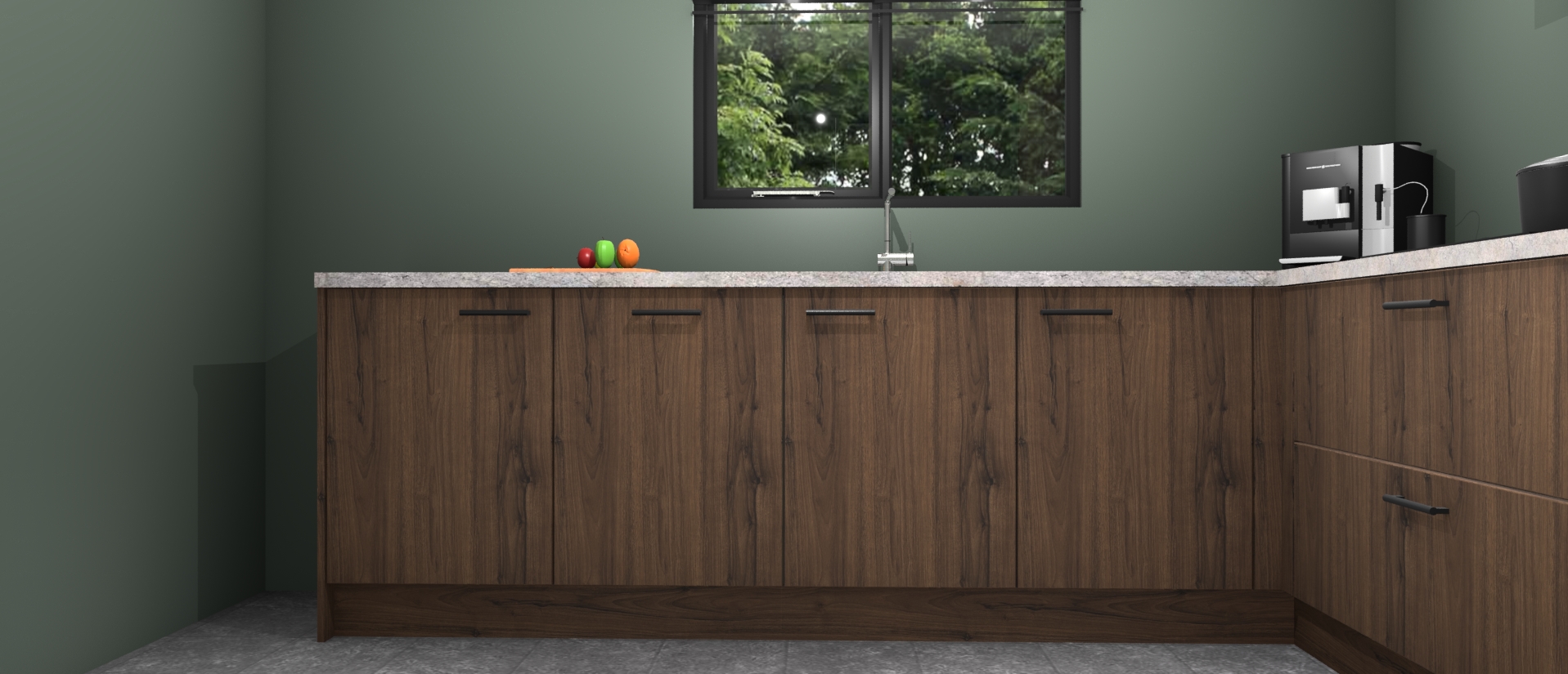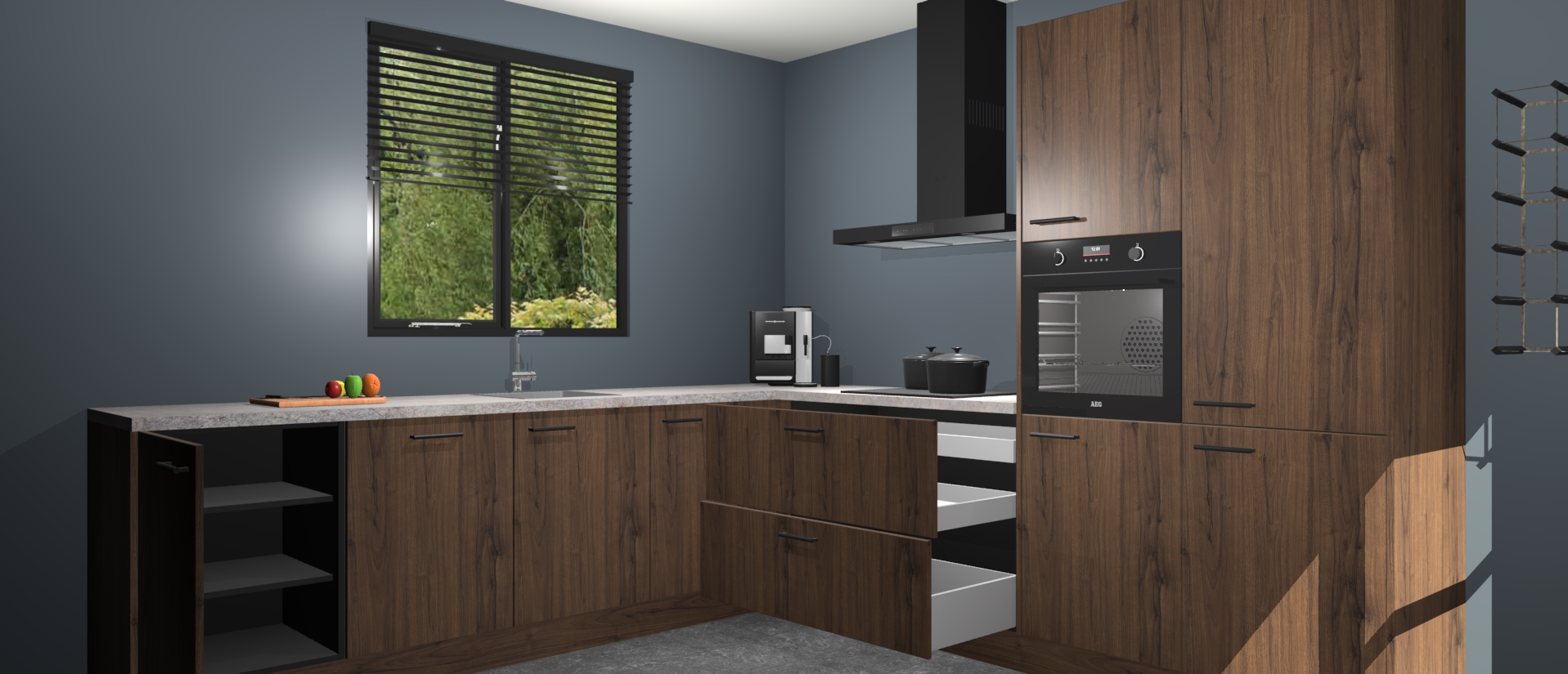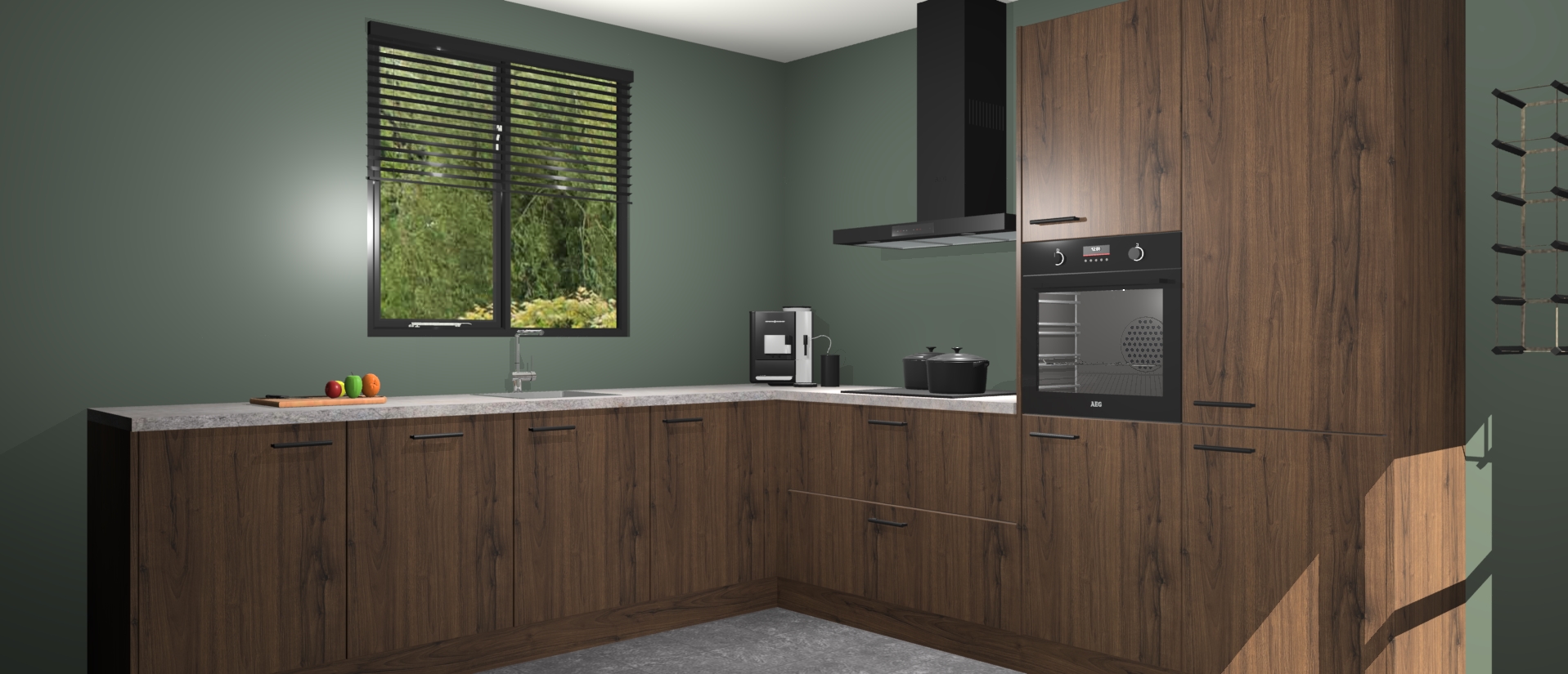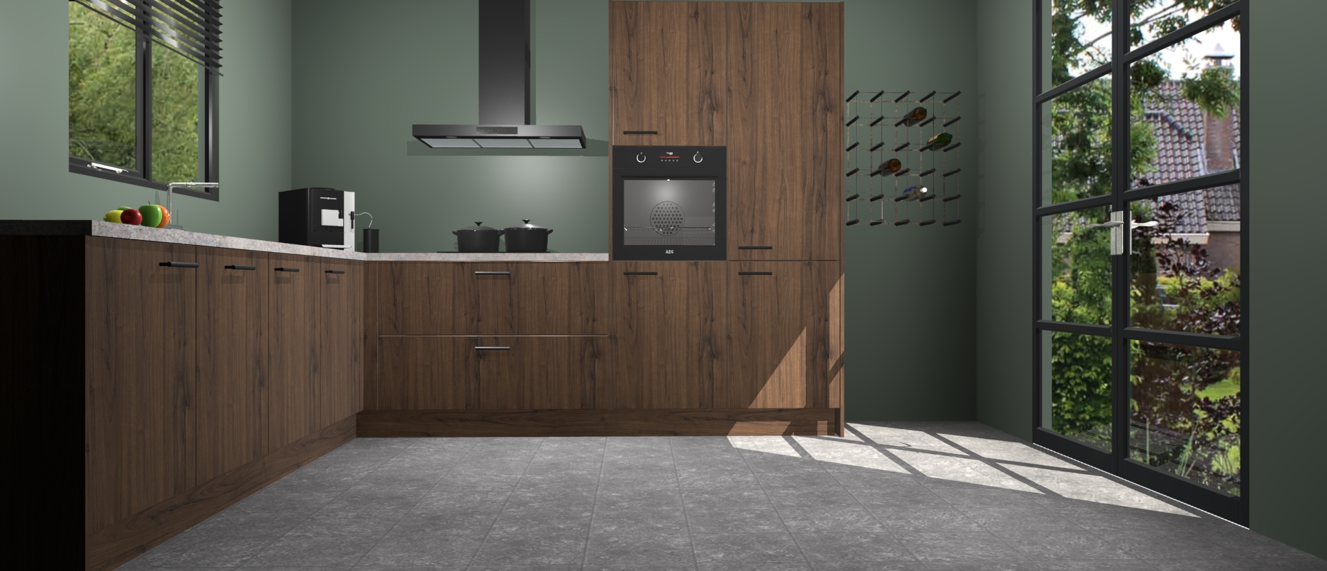 De Noten keuken Porto heeft 5 ingebouwde apparaten - een oven, inductiekookplaat, afzuigkap, vaatwasser en koelkast - waarmee u in een handomdraai heerlijke gerechten bereidt. Soft-close deuren zorgen voor nog meer functionaliteit en gemak. En dit alles voor een onverslaanbaar vaste prijs. En als u nu bestelt, duurt de levering maar 7 weken! Wat nog ongelooflijker is, is dat onze kasten voor gemonteerd worden geleverd.