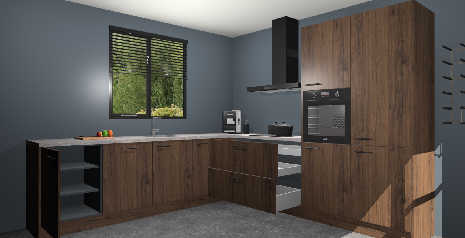 De Noten keuken Porto heeft 5 ingebouwde apparaten - een oven, inductiekookplaat, afzuigkap, vaatwasser en koelkast - waarmee u in een handomdraai heerlijke gerechten bereidt. Soft-close deuren zorgen voor nog meer functionaliteit en gemak. En dit alles voor een onverslaanbaar vaste prijs. En als u nu bestelt, duurt de levering maar 7 weken! Wat nog ongelooflijker is, is dat onze kasten voor gemonteerd worden geleverd.