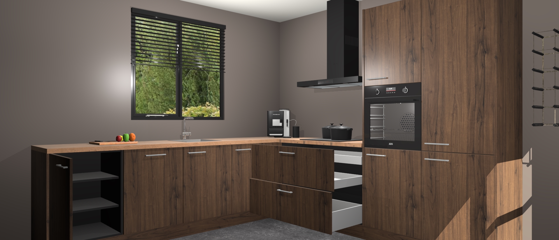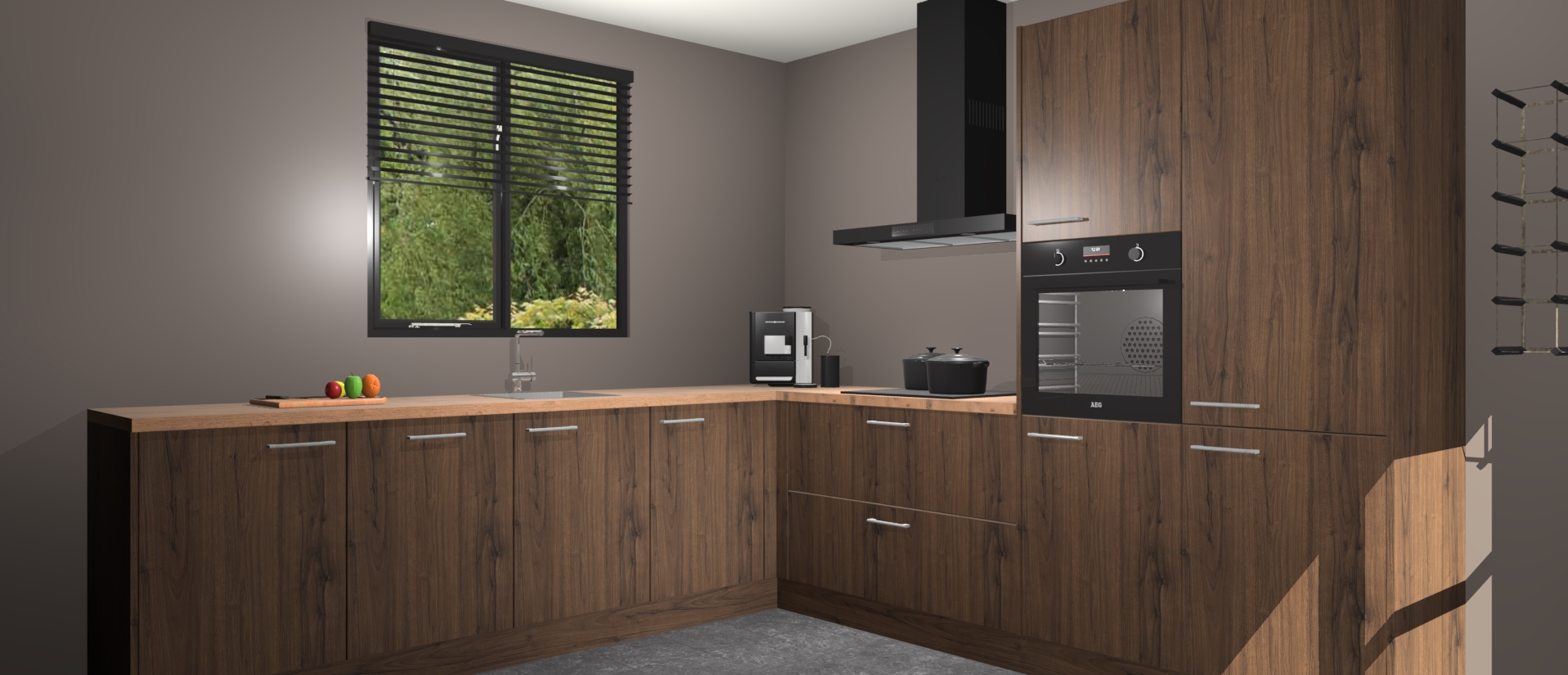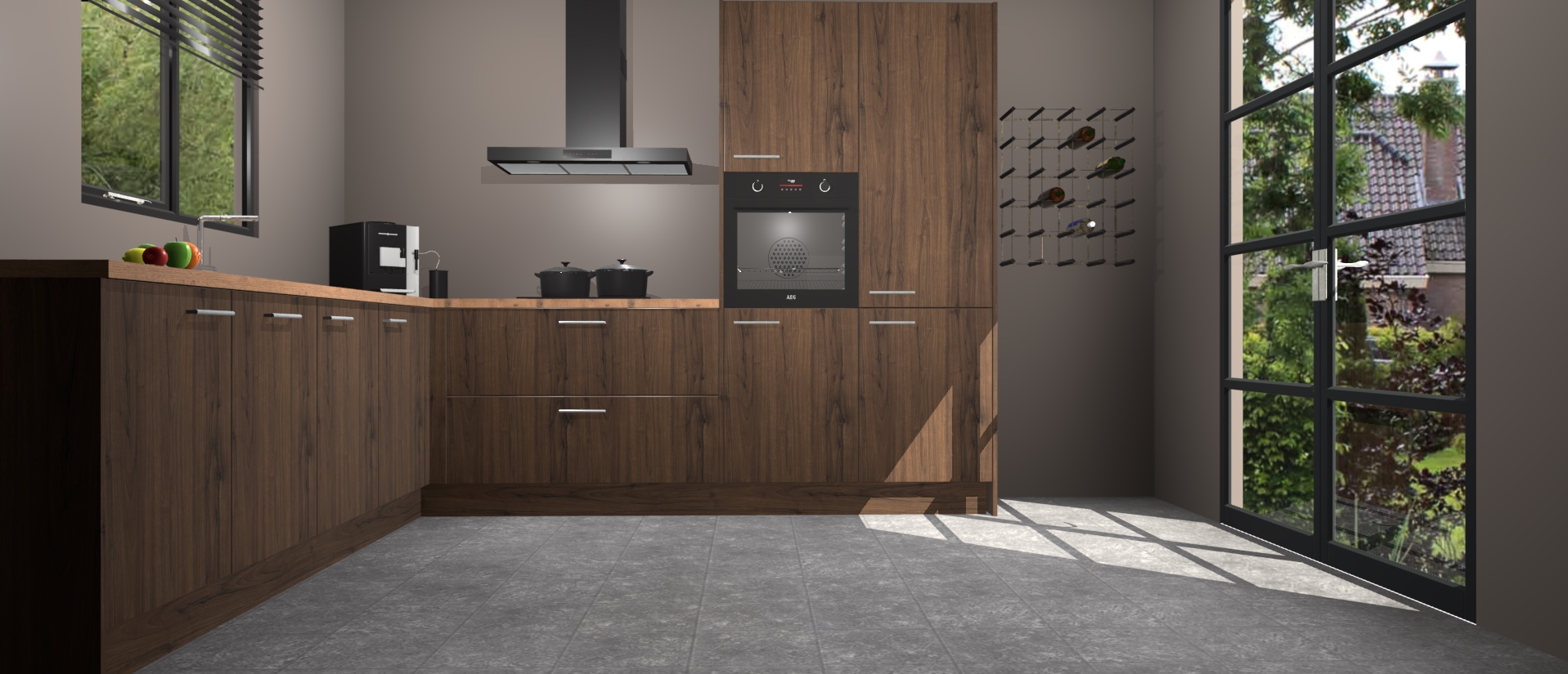 De Noten keuken Porto heeft 5 ingebouwde apparaten - een oven, inductiekookplaat, afzuigkap, vaatwasser en koelkast - waarmee u in een handomdraai heerlijke gerechten bereidt. Soft-close deuren zorgen voor nog meer functionaliteit en gemak. En dit alles voor een onverslaanbaar vaste prijs. En als u nu bestelt, duurt de levering maar 7 weken! Wat nog ongelooflijker is, is dat onze kasten voor gemonteerd worden geleverd.
